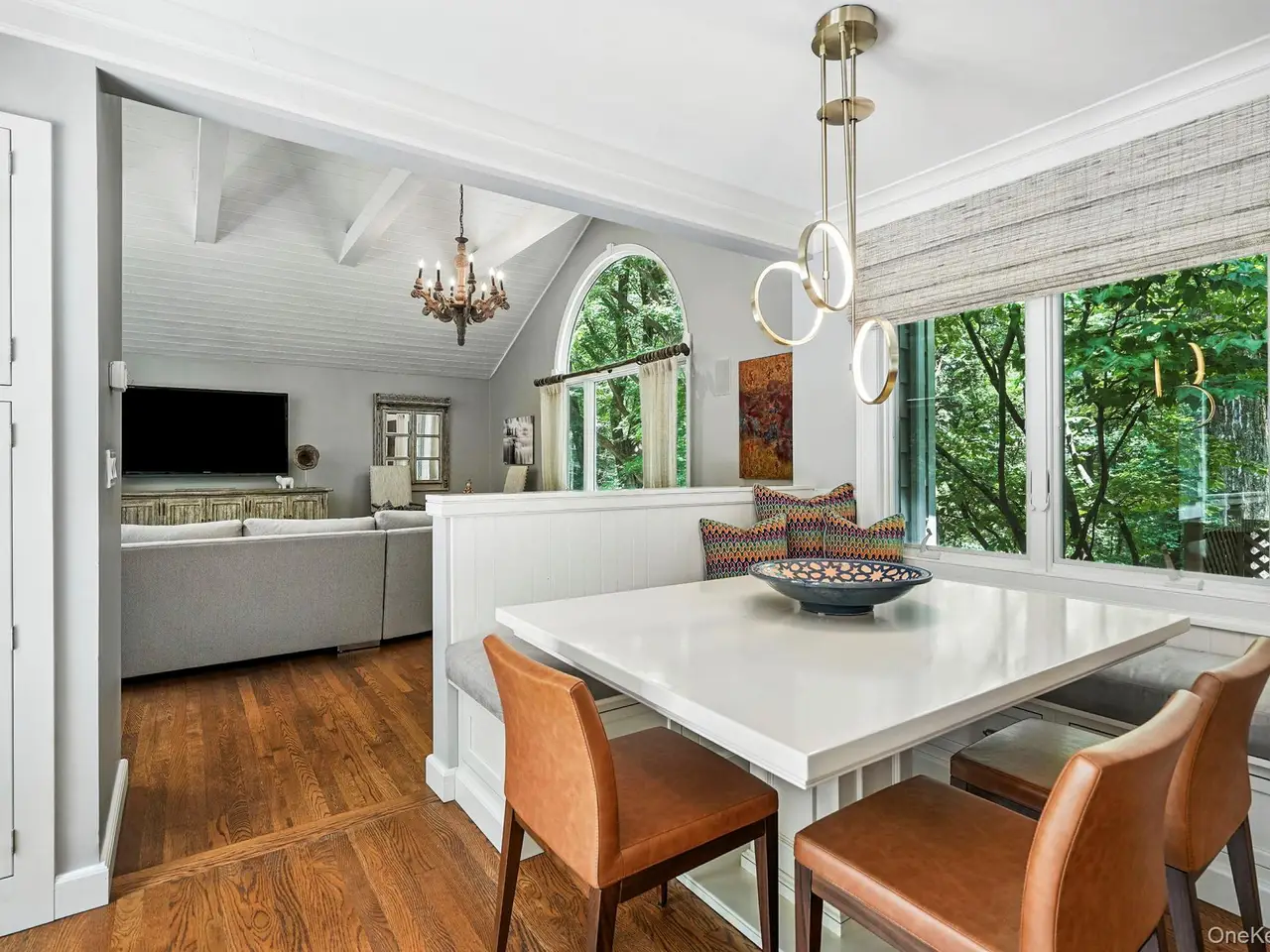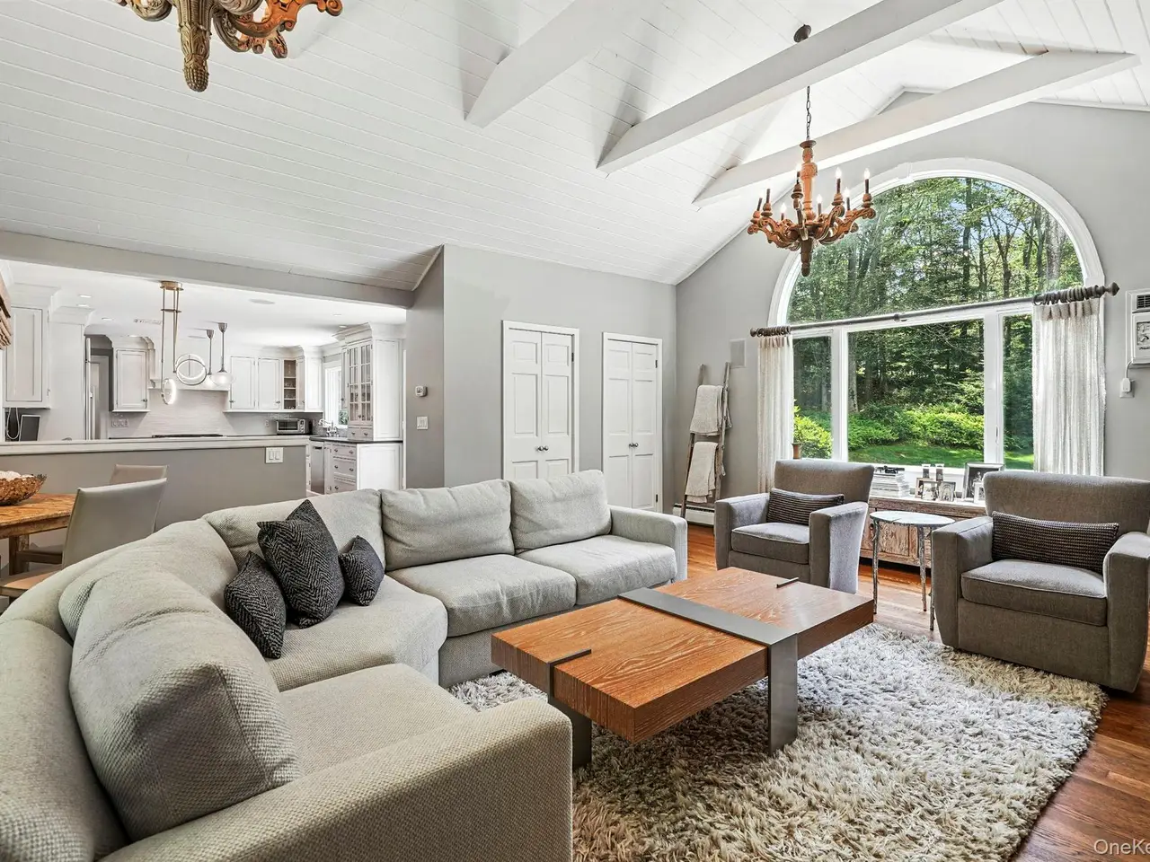 Sun-drenched family room with cathedral ceilings