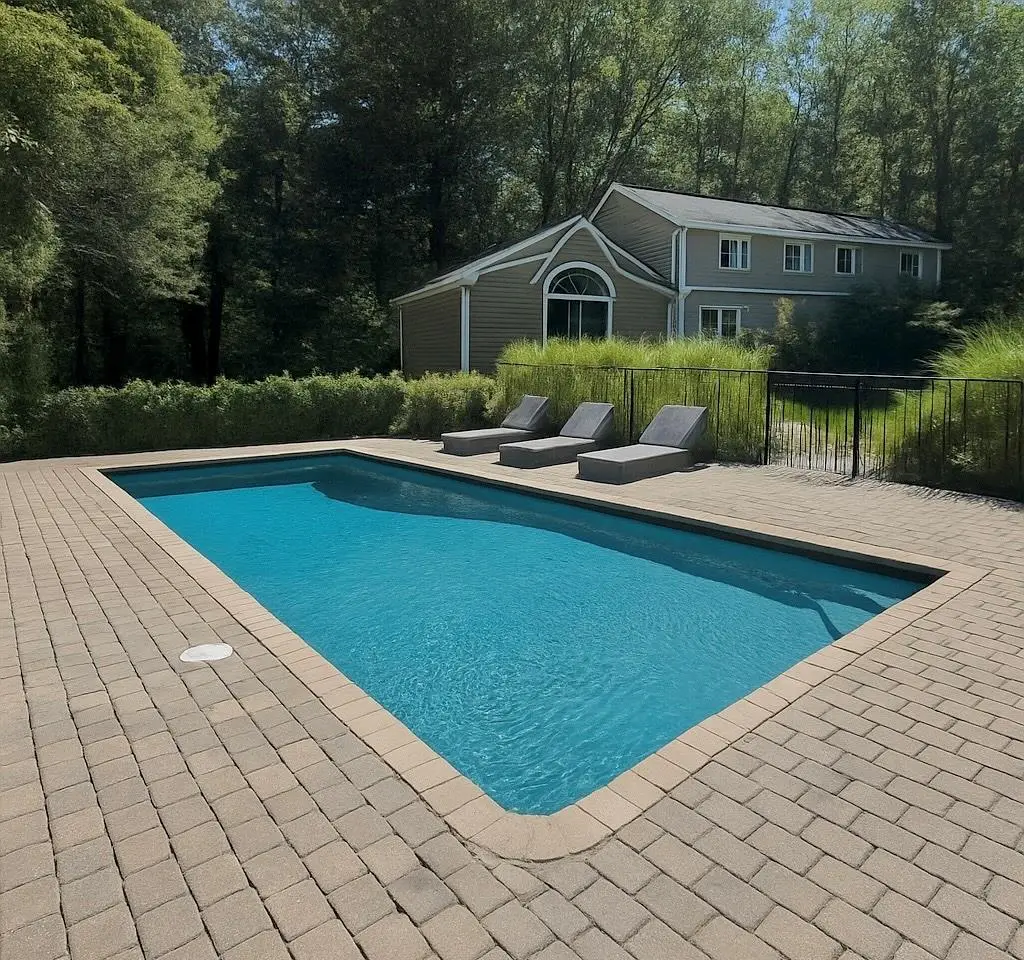 Expansive backyard with large deck and in-ground pool