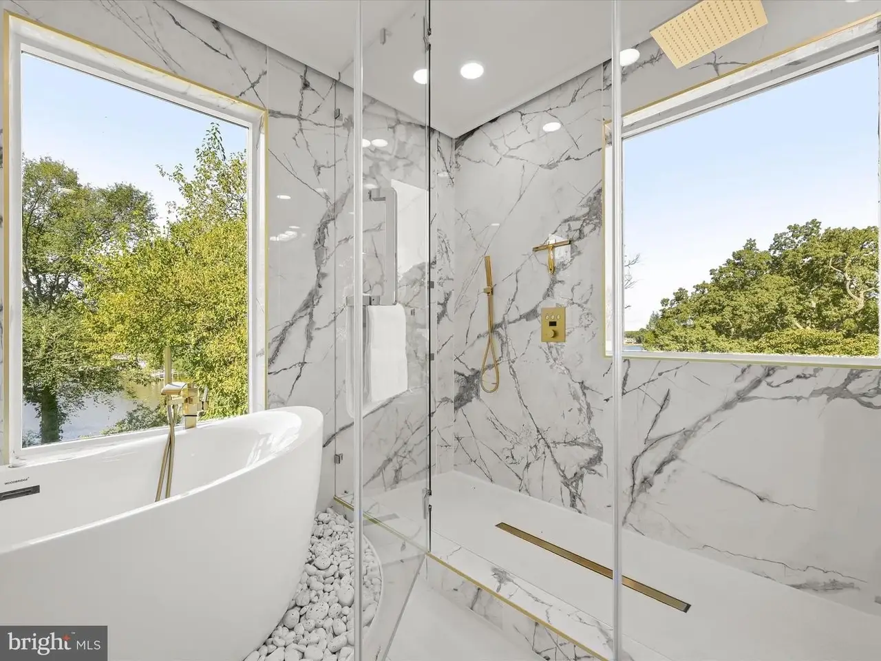 Perched along the serene shores of Mill Creek in the prestigious Magothy Shores community of Arnold, this one-of-a-kind newly built home redefines luxury waterfront living. Offering six bedrooms with four and a half bathrooms spread across three exquisite levels of impeccably designed spaces. This contemporary showpiece has a blend of elegance, innovative features, and breathtaking natural beauty, with two waterfront bedroom suites and versatile living spaces. As you arrive, a dramatic front makes a bold first impression, hinting at the sophistication within. Step through the front door and into an expansive open-concept layout, where floor-to-ceiling windows have views of the water and blur the lines between indoor and outdoor living. Soaring ceilings, an abundance of natural light, and extraordinary finishes, wide-plank flooring, porcelain and marble tile, and designer lighting elevate modern living with an inviting atmosphere. The show-stopping kitchen is nothing short of spectacular, equipped with high-end Thermador appliances and an eight-burner FORNO gas range with double ovens, along with a convenient pot-filler. Custom soft-close cabinetry with slide-out shelves, gorgeous countertops and backsplash, and a massive statement waterfall-edge island make this kitchen a chef's dream. Relax and unwind in the spacious living room with folding glass doors that invite you to step onto the expansive deck, ideal for sunset dining, starlit gatherings, and daytime activities. Entertain guests in the two-story dining room that can accommodate any size gathering with a glass-enclosed wine room. Completing the main level is a dramatic half bathroom and access to the two-car garage. Ascend upstairs where a waterfront bedroom suite boasts a wet bar with a beverage fridge, walk-in closet and private balcony. The ensuite bathroom highlights a free-standing slipper tub, dual vanity, and a frameless walk-in shower with a rainfall shower head and jetted body sprayers. A loft on this level provides a versatile space as a sitting room, lounge space, office, playroom and more. Down the hall are two bedrooms with a shared bathroom complete with a walk-in shower, along with a convenient laundry closet for this level. Up the stairs, the top level has even more space for everyone. The waterfront primary bedroom suite is a retreat in itself, featuring a walk-in closet with motion-sensing lights, a wet bar with a beverage fridge that is perfect for morning coffee or evening drinks, and a balcony with stunning views. The spa-like ensuite bathroom is adorned with a jetted tub, dual vanity, and an opulent walk-in shower with a rainfall shower head and body sprayers. A large family room on this level adds more living space, with a kitchenette and balcony that make everyday living and entertaining a delight. Another two bedrooms and a shared full bathroom finish the top level, along with a second laundry closet for convenience. Enjoy the best of waterfront living in this remarkable new home, whether lounging or hosting parties, you will love spending time outside in the fenced backyard with beautiful views. Steps lead down to the water where a newly built pier provides access to Mill Creek, which leads to the Magothy River and the Chesapeake Bay. Every detail has been thoughtfully curated with dimmable and color-changing LED lighting, accent walls, zoned HVAC with Nest thermostats, two tankless water heaters, an electric vehicle charger in the two-car garage, and energy-efficient features throughout. This home offers a lifestyle that is both refined and relaxed. Just around the corner from everyday essentials, this location has an array of shopping, dining, and entertainment, plus waterfront amenities for enjoying life by the water. Explore nearby Annapolis and everything this wonderful area has to offer. Some images have been virtually staged.
