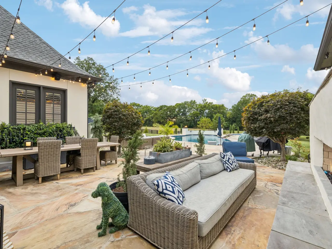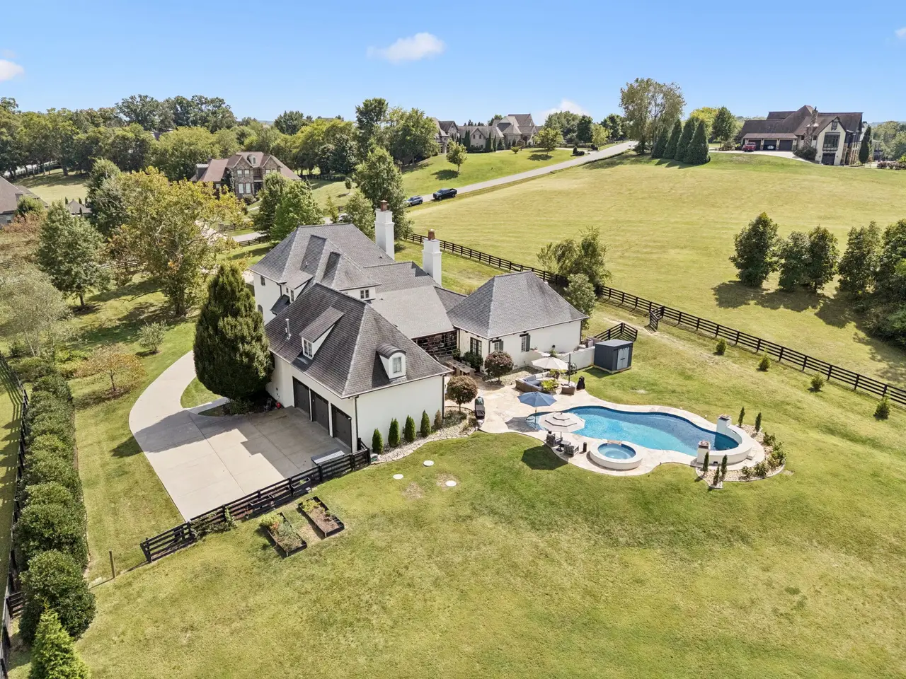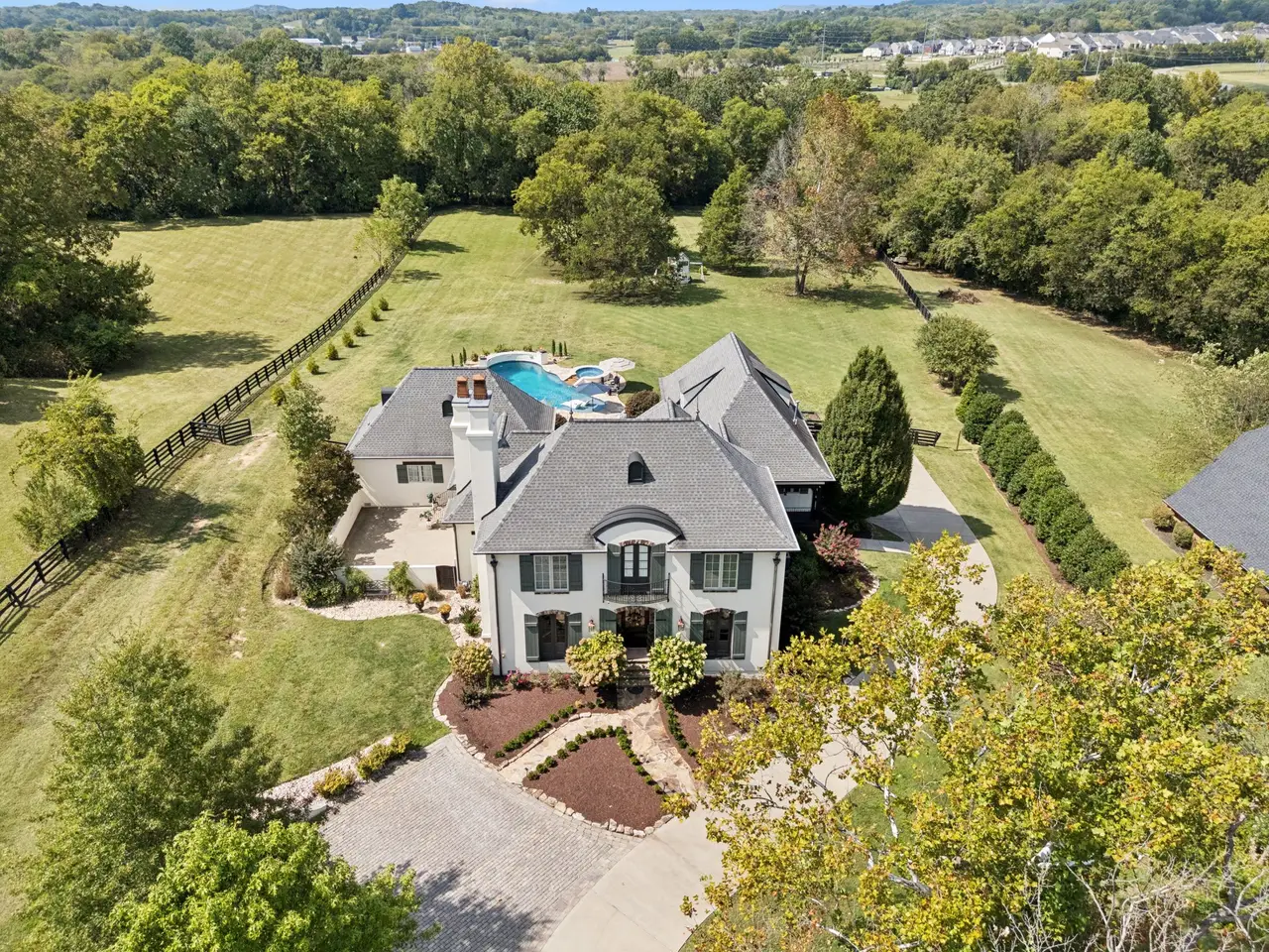 Experience refined country living on 3.39 acres with a private creek, gated entry, and incredible outdoor amenities that create a true resort-style retreat. Extensively renovated, this property pairs timeless architecture with thoughtful modern updates. Inside, the home welcomes you with a dramatic foyer showcasing checkered tile and wainscoting. The main level offers elegant spaces for gatherings, including formal living and dining rooms with gleaming hardwood floors. Arched openings, custom trim, and statement lighting carry throughout, while the coffered-ceiling family room features built-ins and a stone fireplace, flowing seamlessly into a chef's kitchen. The kitchen is designed for serious cooks and entertainers alike. An oversized island, wet bar, dual sinks, and a full suite of luxury appliances anchor the space--Fisher & Paykel refrigerator/freezer columns, an ILVE Italian dual-fuel range with gold accents, stainless vent hood, dual dishwashers, walk-in pantry, and a fluted glass buffet add both function and style. The primary suite on the main floor provides a private haven, complete with two walk-in closets, a marble shower, soaking tub, and dual vanities. A future bar area can be customized to your taste. Upstairs, one wing hosts a state-of-the-art media room with 11.2 surround sound and flexible storage, while the other offers three bedrooms, two baths, and a versatile bonus area. The grounds are exceptional, offering spaces for both quiet enjoyment and grand entertaining. A covered porch and fireplace patio overlook a sprawling fenced yard with raised garden beds. The pool complex features a sun shelf, integrated spa, and dramatic fire features. A separate creekside firepit provides an intimate escape. Additional highlights include a three-car garage, extended parking, and mature trees lining the private drive. Just minutes from Arrington Vineyards and Franklin, and within easy reach of Nashville.