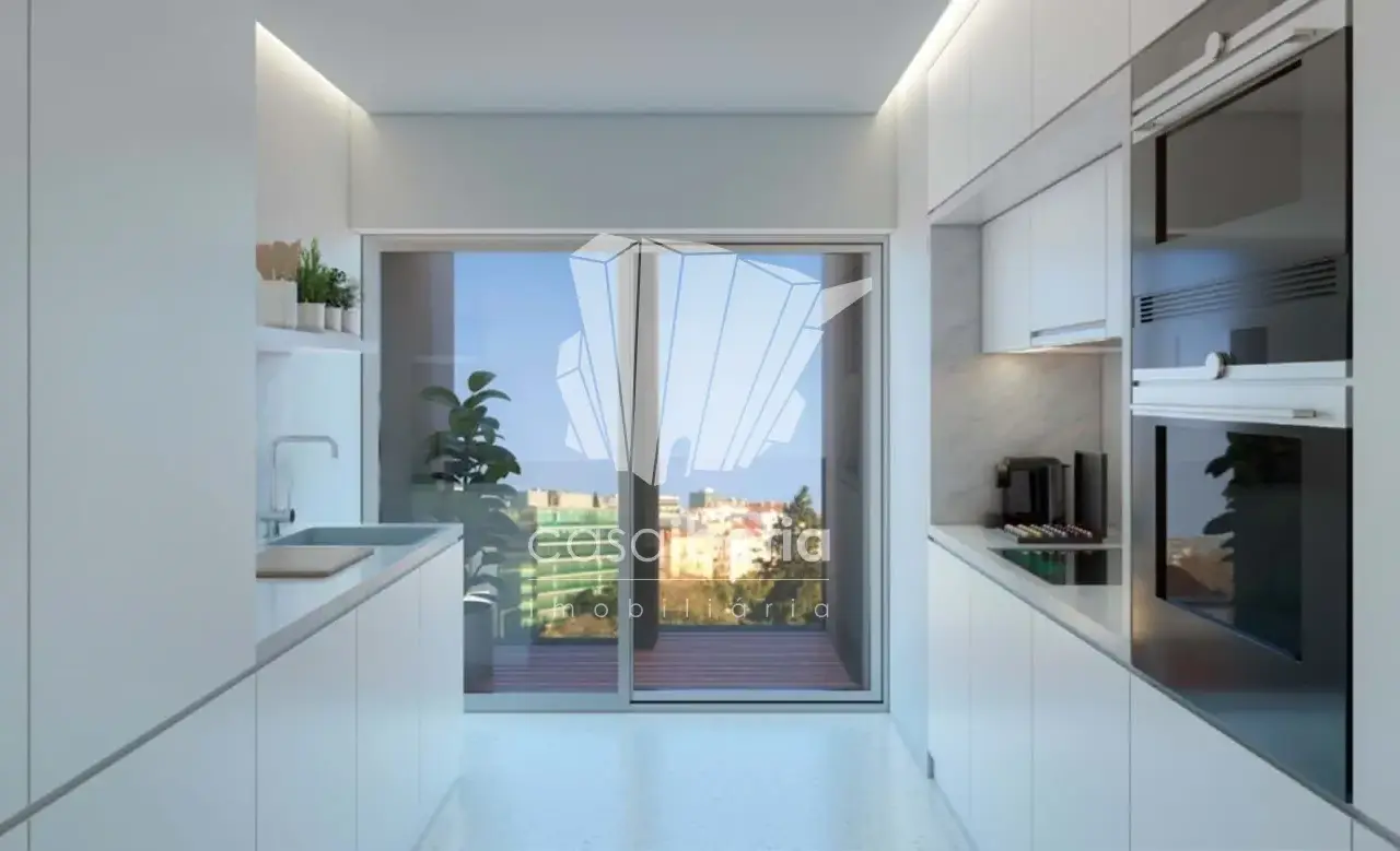The property comprises hall, two suites with balconies, bathroom, kitchen, dining room, living room, balcony, one parking place in garage and a spectacular terrace with 112 square meters. Well situated, it is 120 meters from the Market 31 de Janeiro, 170 meters from Picoas Metro Station, 350 meters from Atrium Saldanha, 400 meters from Saldanha Residence Shopping Centre, and surrounded by commerce, services, transport and access. Ideal for those who want to invest or live in a charming and central area of Lisbon.