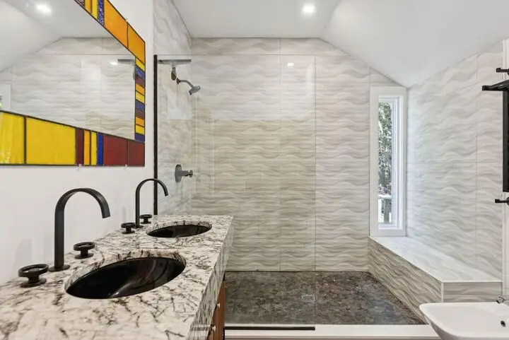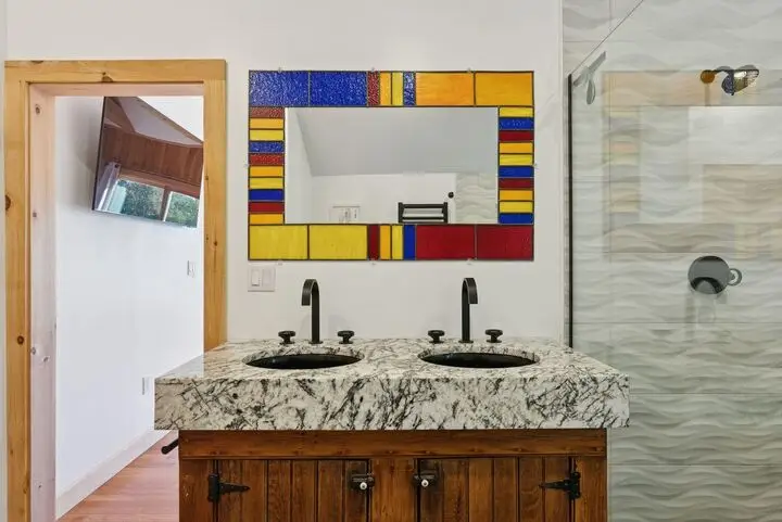 There's a certain feeling that comes with quality, and you'll sense it the moment you arrive at 49 Cottage Road. This stunning riverfront retreat captures the essence of modern coastal living. Every space has been thoughtfully designed for comfort and beauty, creating a home that feels as much like a work of art as it does a place to unwind. Step inside to a light filled living area where stained glass reflections dance across the walls. The reclaimed wood gas fireplace anchors the space while expansive windows frame sweeping views of the lawn and river beyond. The open kitchen and dining area lead to a wraparound deck. A guest bath with distinctive tile connects to the upper level guest bedroom and cozy sitting area. The serene primary suite offers deck access and a spa-like bath with a bidet, towel warmer, and oversized shower. The lower level blends comfort and entertainment with a custom built bar featuring a sink, ice maker, and mini fridge. A stone surrounded gas fireplace with a reclaimed wood mantle adds warmth, and sliding doors open to the patio. This level also includes a guest bedroom with outdoor access, a full bath, laundry room, workshop, and versatile office or bonus room. Set on over four acres with 800 feet of water frontage, this property rests at the very end of a private road surrounded by peace, quiet, and serenity. Manicured grounds framed by rock walls include a private ramp and float, with 2-3 feet at low tide. Rebuilt in 2021, this home captures the best of coastal Maine living with sunrises over the water, passing seals and ships, and the calm beauty of riverfront life, all just minutes from Bath and Brunswick, and 45 minutes to Portland.