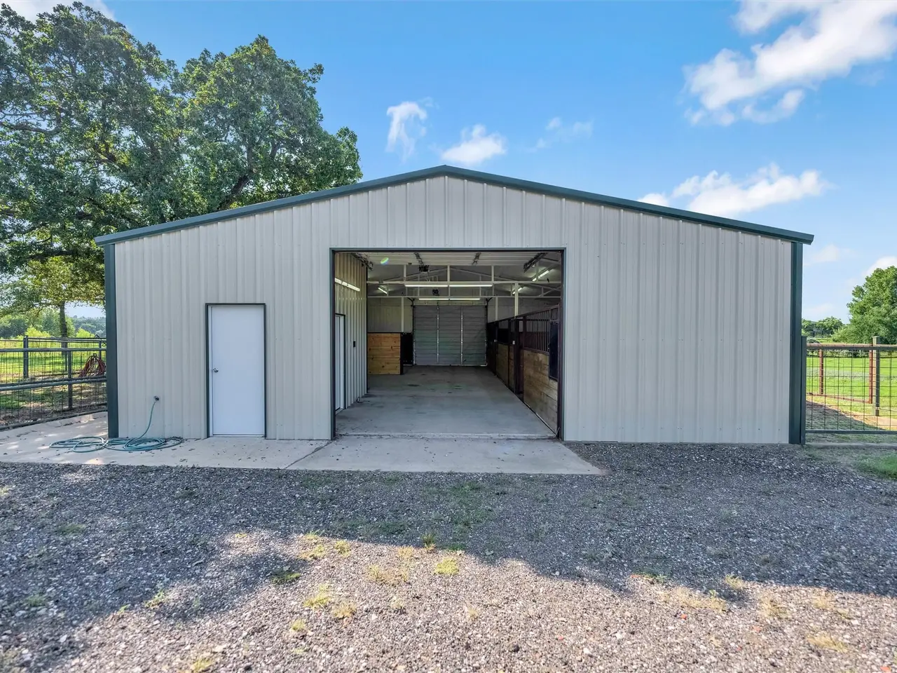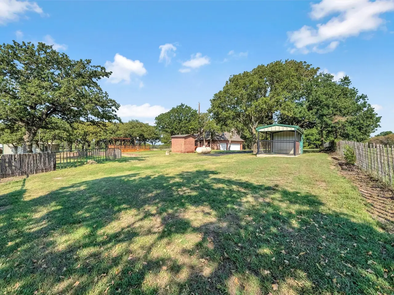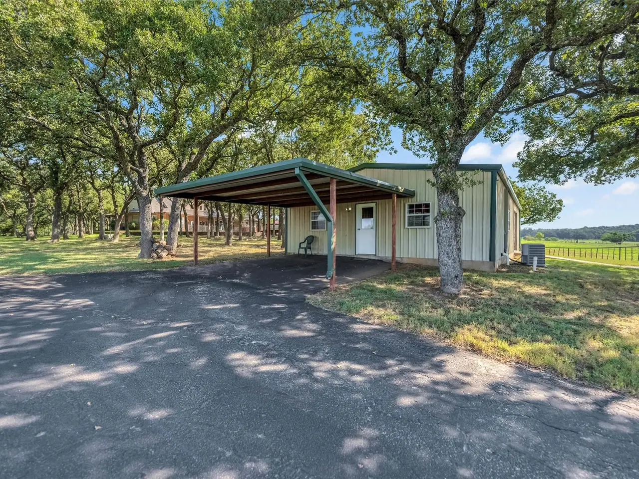 This exceptional Weatherford estate combines elegance, function, and equestrian living - all just 29 miles from Dickies Arena with easy access to I-20. The 18.65 acres are fully fenced with an automatic gate, horse turnouts, and a hay field that produced 54 bales on the second cutting this year. The home offers 3,600 sq. ft. with soaring ceilings and beautifully defined rooms. The chef’s kitchen features top-end appliances and connects to a formal dining room that’s ideal for holiday gatherings. The primary suite offers a spa-inspired steam shower, while three additional bedrooms provide plenty of space for family or guests. Outdoors, the amenities are designed with both comfort and utility in mind. An insulated horse barn includes three stalls, a concrete footer wash rack with hot and cold water, and automatic roll-up doors. The backyard oasis features an in-ground pool with diving board and hot tub. For added convenience, there are concrete dog kennels, a blacktop circle driveway, and a three-car garage with bonus room and half bath above. An insulated metal shop with its own efficiency apartment adds valuable versatility. Bring your horses, bring the family, and simply unpack. This estate is turn-key and ready for you to enjoy in time for the holidays.