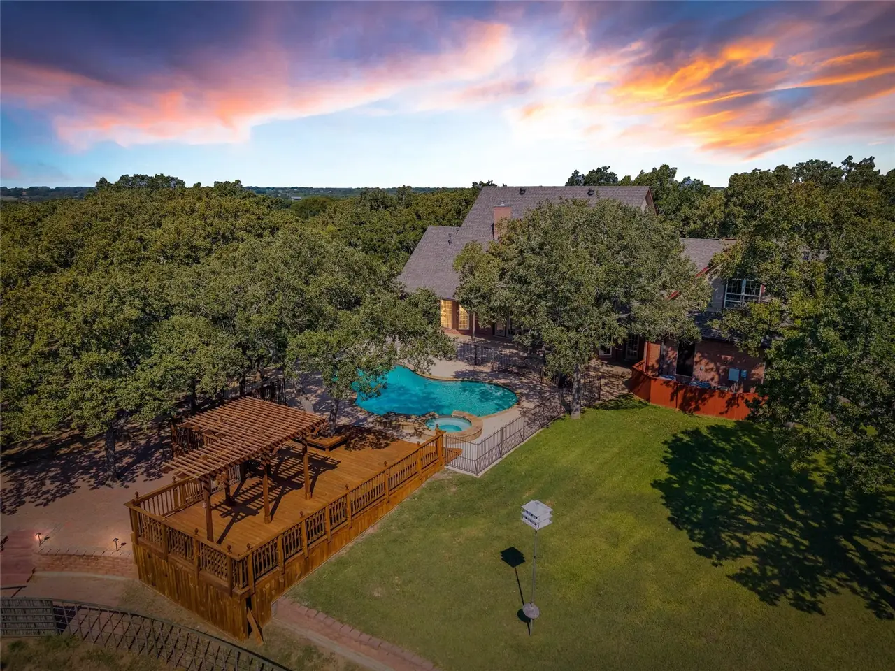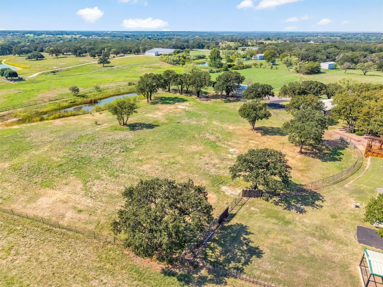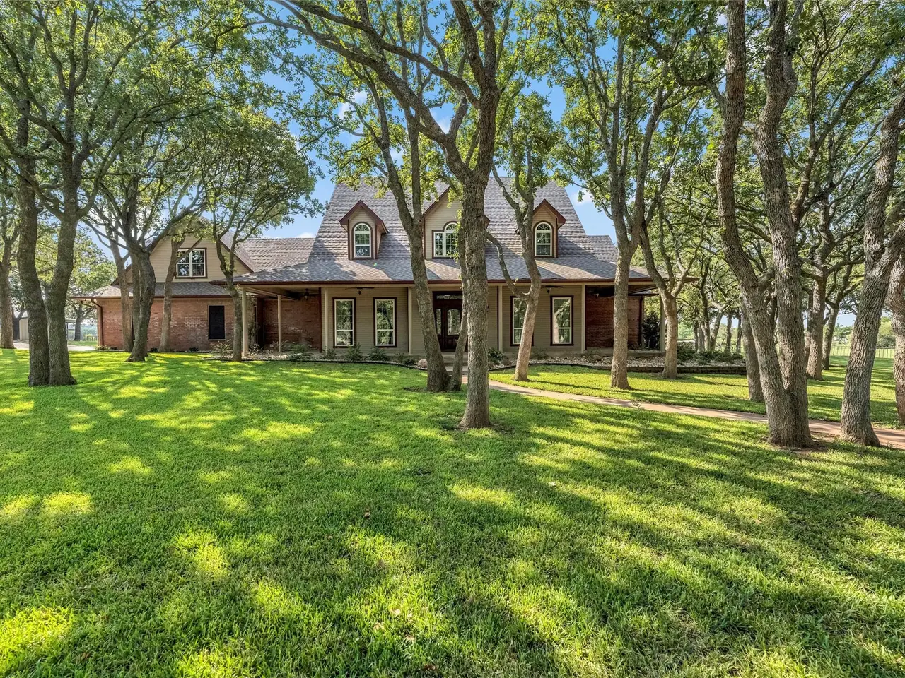 This exceptional Weatherford estate combines elegance, function, and equestrian living - all just 29 miles from Dickies Arena with easy access to I-20. The 18.65 acres are fully fenced with an automatic gate, horse turnouts, and a hay field that produced 54 bales on the second cutting this year. The home offers 3,600 sq. ft. with soaring ceilings and beautifully defined rooms. The chef’s kitchen features top-end appliances and connects to a formal dining room that’s ideal for holiday gatherings. The primary suite offers a spa-inspired steam shower, while three additional bedrooms provide plenty of space for family or guests. Outdoors, the amenities are designed with both comfort and utility in mind. An insulated horse barn includes three stalls, a concrete footer wash rack with hot and cold water, and automatic roll-up doors. The backyard oasis features an in-ground pool with diving board and hot tub. For added convenience, there are concrete dog kennels, a blacktop circle driveway, and a three-car garage with bonus room and half bath above. An insulated metal shop with its own efficiency apartment adds valuable versatility. Bring your horses, bring the family, and simply unpack. This estate is turn-key and ready for you to enjoy in time for the holidays.