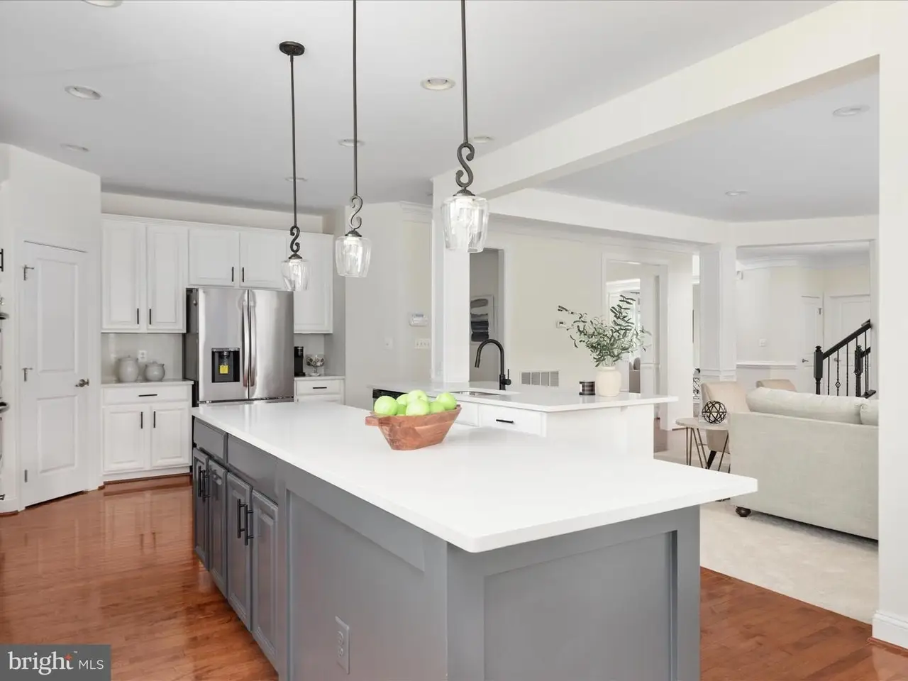 Look no further, this house will truly impress you! With generously sized rooms, 9 ft. ceilings, and an open floor plan featuring hardwood floors on the main level, this home has it all. The newly renovated chef's kitchen boasts double islands, quartz counters, stainless steel appliances that include double ovens and a vented gas cooktop along with two pantries, all adjacent to a sunlit breakfast room. The main level also includes a bedroom or study and a full bath. The two-story foyer is flanked by a formal living room and a large dining room. The family room, with its floor-to-ceiling stone gas fireplace, sets a cozy mood. On the upper level, the spacious owner's suite includes a sitting room, spa bath, and abundant closet space. There are three additional bedrooms, all with walk-in closets, and a shared hall bath. The walk-up basement is fully finished with an impressive recreation room and a media room with stadium seating and a projection TV. The sixth bedroom and full bath provide guests with a private spot, completing the lower level. Outside, you'll enjoy a large private fenced backyard, 3 car side load garage, a Trex deck, and an irrigation system to keep everything green. The Meadows community offers a private lake, sandy beach, 2-acre dog park, and 2-mile walking trails. The location is prime just minutes to Stone Springs Hospital, Brambleton Town center, several wineries, Dulles airport and the Silver Line metro.