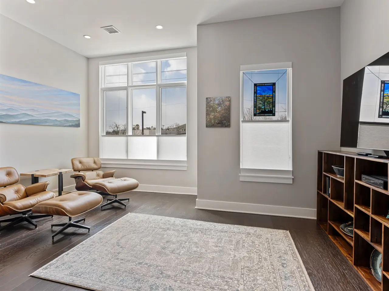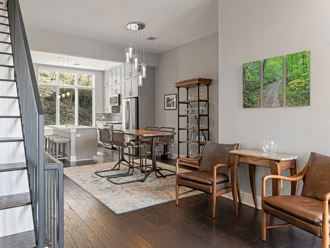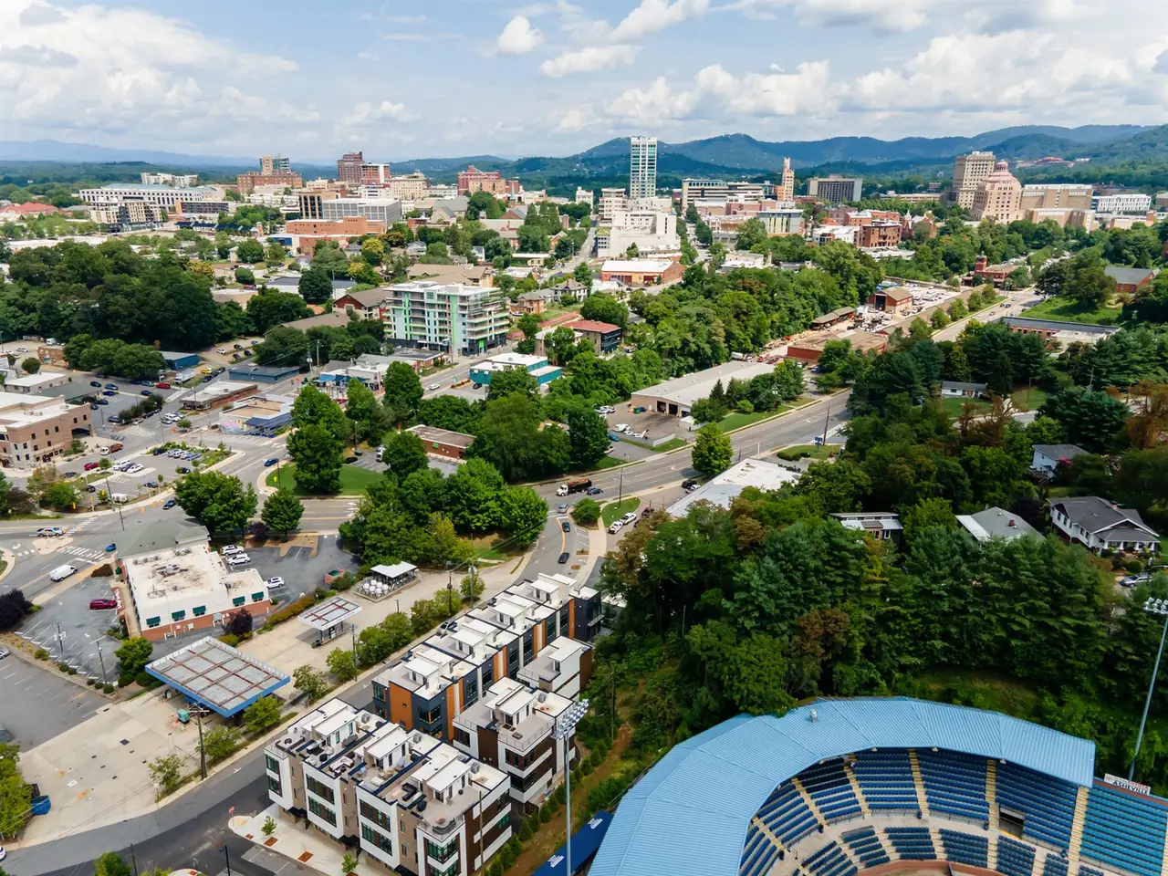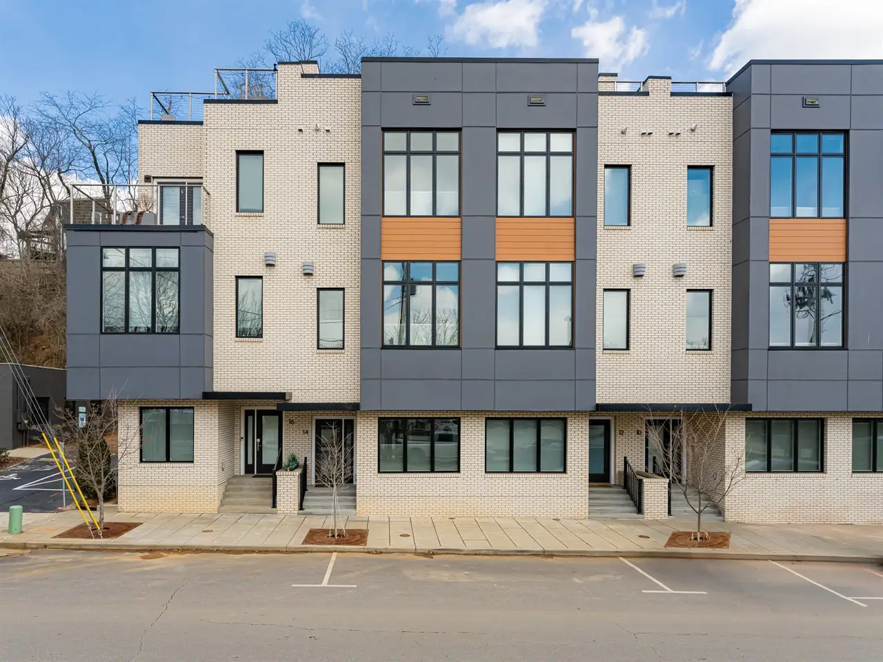 Experience the epitome of modern urban living in this stunning 3-bedroom, 3.5-bathroom townhome in the heart of downtown Asheville. Designed with sleek contemporary architecture, this exquisite residence features expansive windows that flood the space with natural light, soaring 10-foot ceilings, and a thoughtfully designed open-concept main living area. Every bedroom is a private retreat, complete with en-suite bathrooms, offering both luxury and comfort. The three-level interior is complemented by a huge, private rooftop terrace, perfect for entertaining or unwinding under the stars, with gas hookups for grill and firepit. For ultimate convenience, enjoy the attached two-car garage and the option for a private elevator. Nestled in an unbeatable location, just one block from the vibrant Brewery District, McCormick Field, and mere moments away from the charm & culture of downtown Asheville. (not in a flood zone)