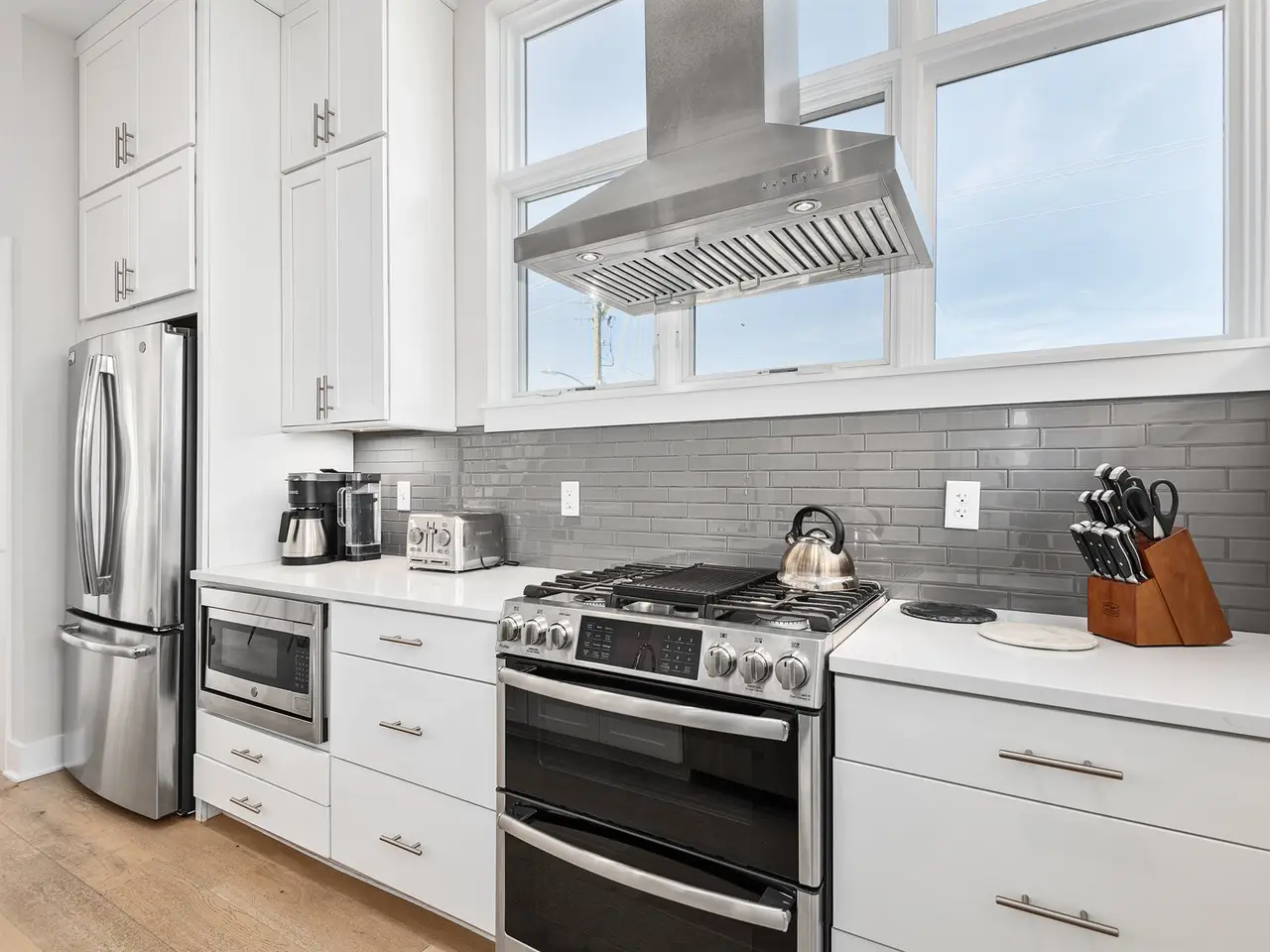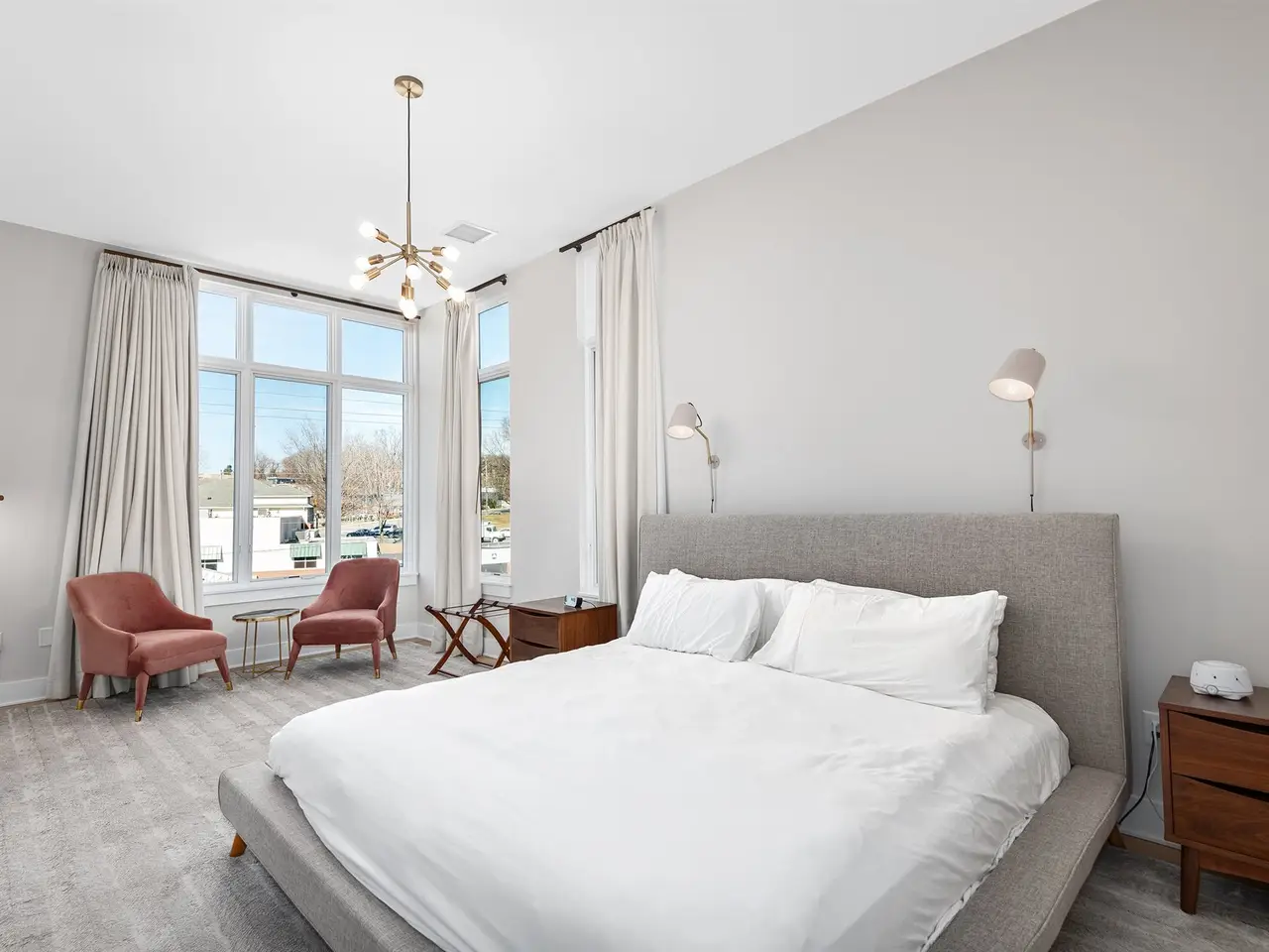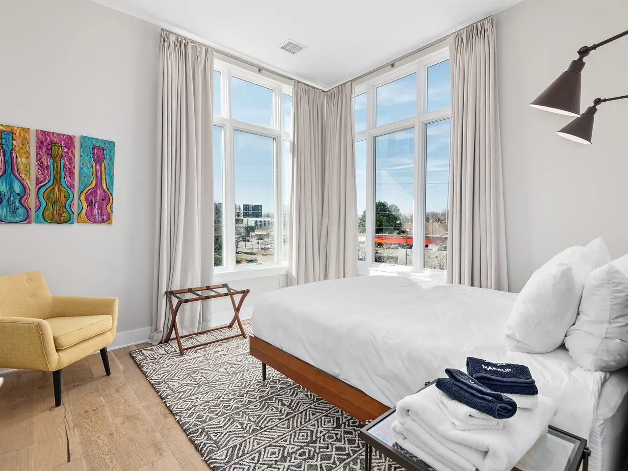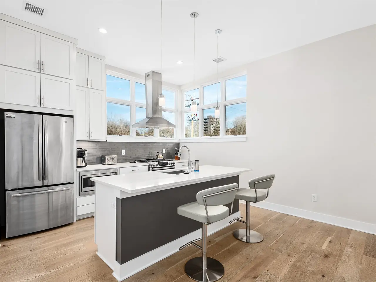 JUST REDUCED! Popular Bauhaus @Historic McCormick Field & downtown. First resale of only a few approved STR's in Bauhaus. Large soaring windows with tall ceilings offer cheerful light from southern exposure as well as views of downtown & western sunsets. Enter from your private 2 car attached garage & take your private elevator to the other two levels. 3 Bedrooms all offer ensuite baths with ceramic tile + half bath on spacious living & dining level. Gorgeous large stainless kitchen w/island. Because of only one common wall with neighbor there are many large corner windows. Wood floors & tile throughout. Need to move in quickly or rent out for the upcoming holidays? No problem, home is offered fully furnished from large furniture items down to dishes & linens. This home is on main street for overflow parking outside of garage.