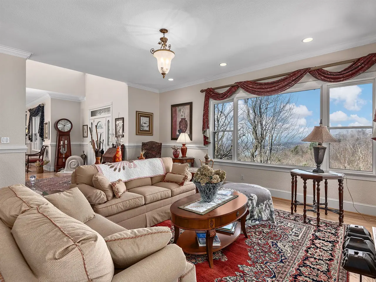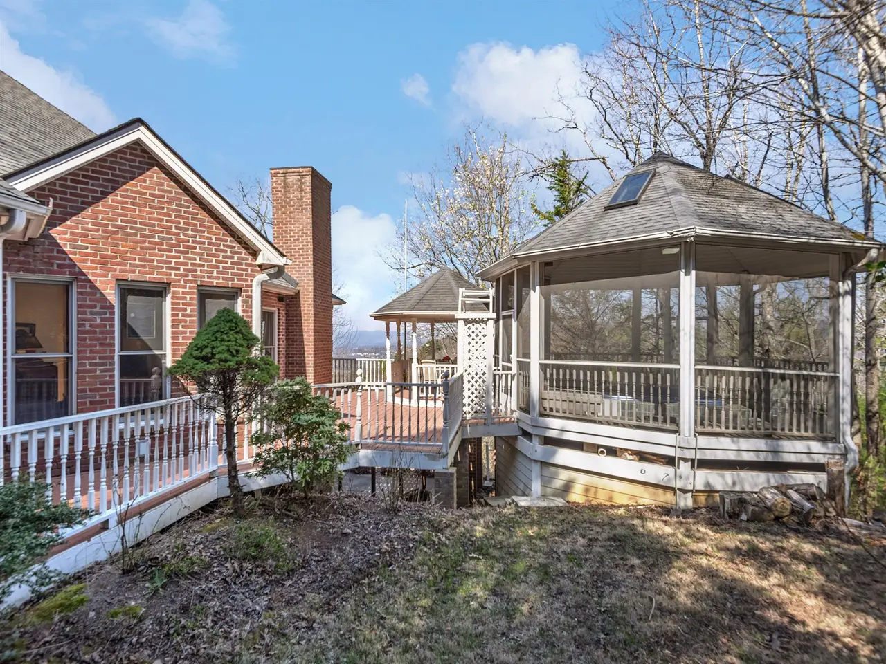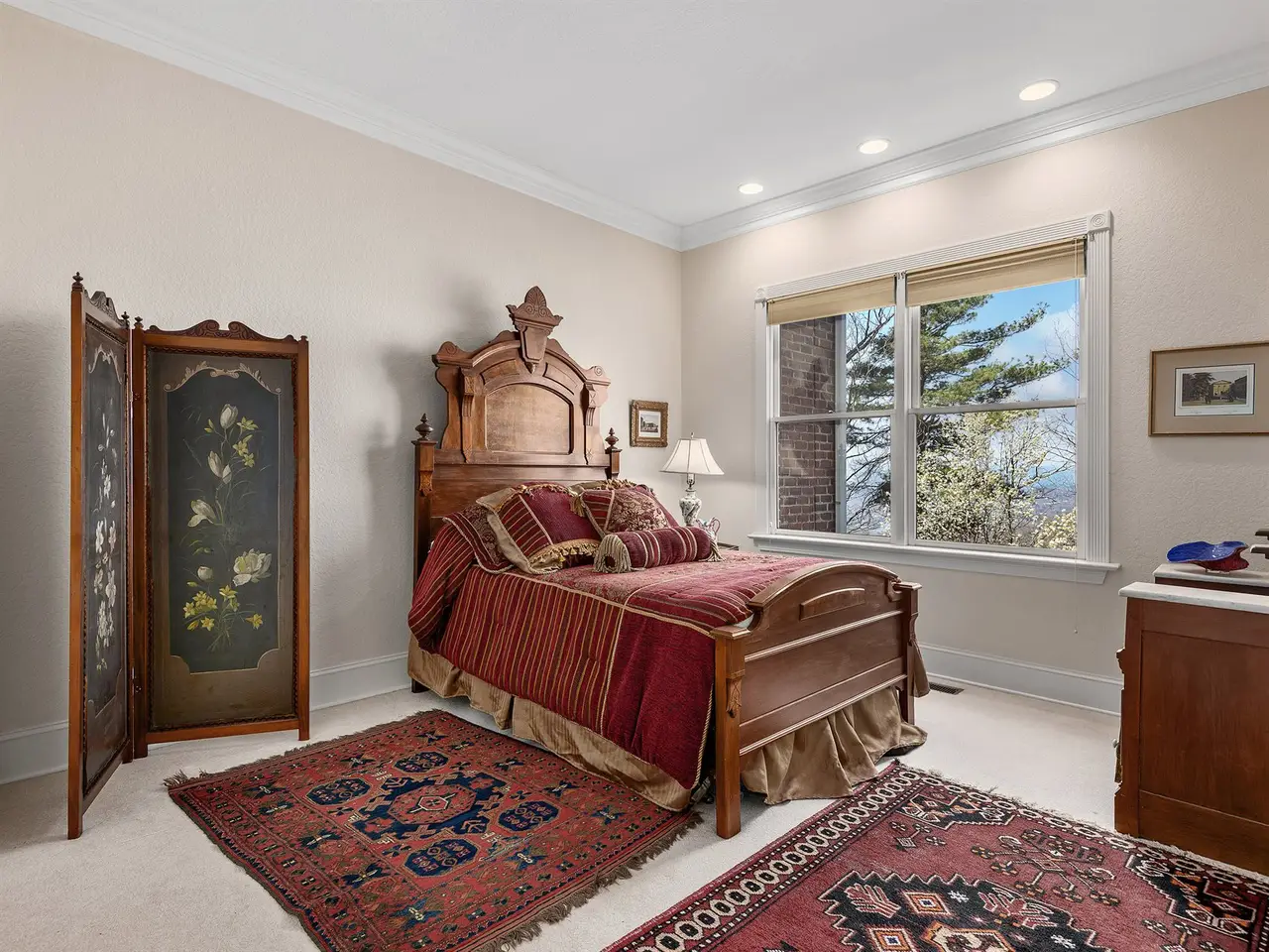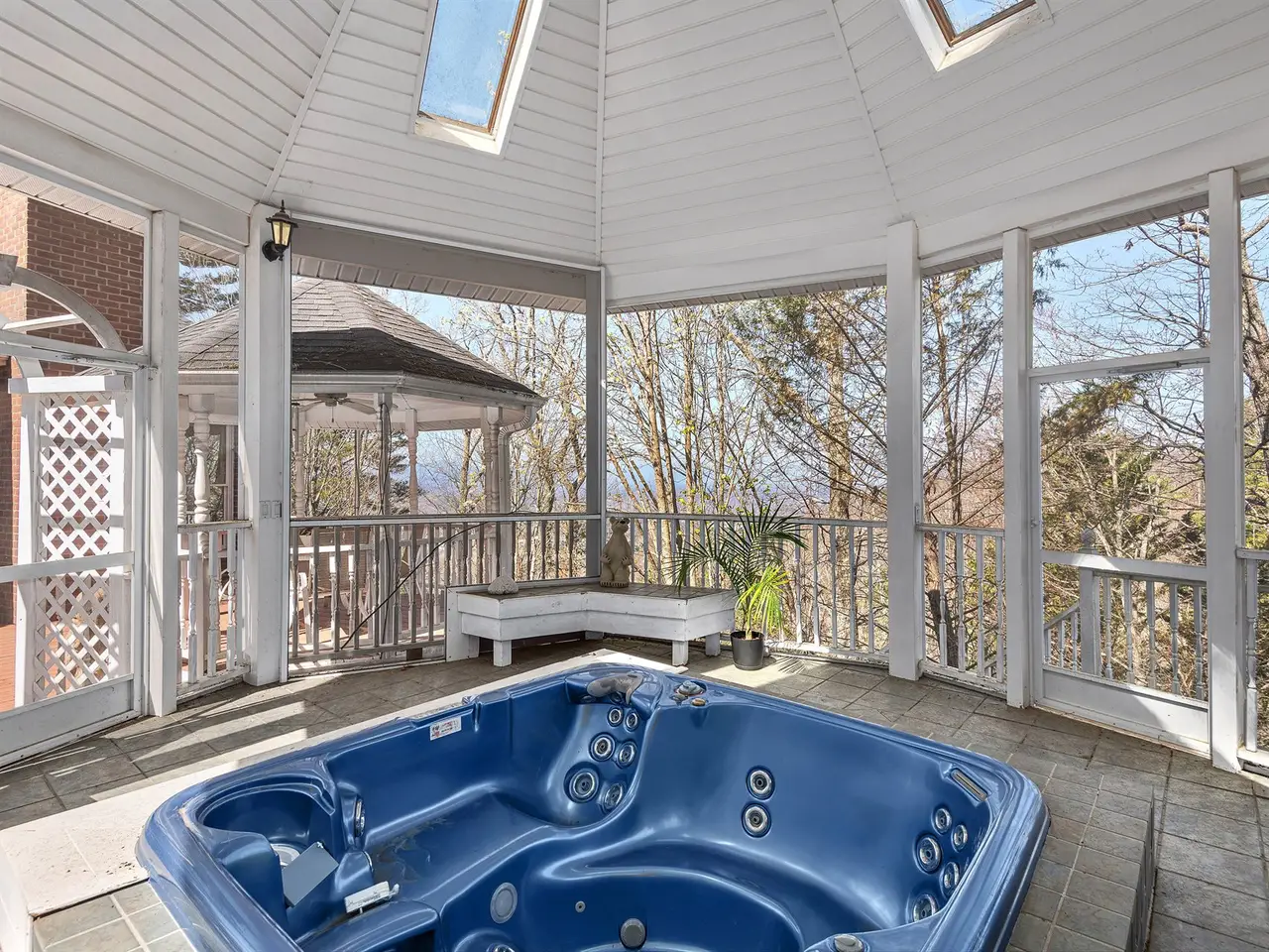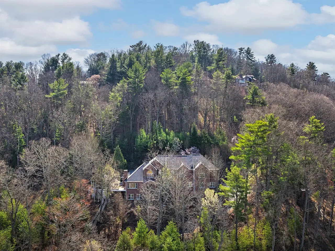 Grand estate on 7+ private acres with views of Beaver Lake and surrounding mountains. Towering high over Grove Park and Beaverdam Valley, this one-of-a-kind property gives the illusion of seclusion with its gates and pristine wooded setting while downtown Asheville is just down below. You are welcomed by a climbing driveway, brick terraced walls & walkways, and an elevated brick entryway. Inside, refined spaces & intimate nooks beckon entertaining & relaxation. Beyond the living room with sweeping views, you'll find a kitchen with cherry cabinetry, island, eat-in nook, keeping room & access to the open wraparound deck & gazebo w/ hot tub. The primary suite stretches across the upper floor & features a double sided fireplace, sitting room and bedroom w/ access to a covered porch & elevated footbridge to the rear. Two main level BRs & a finished walk-out basement add versatile space for play, work & overnight guests. Separate, self-contained apartment with long-range mountain views.