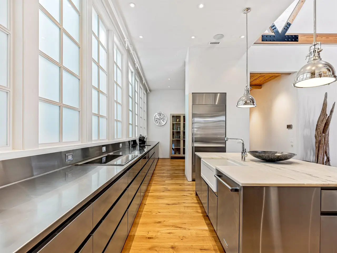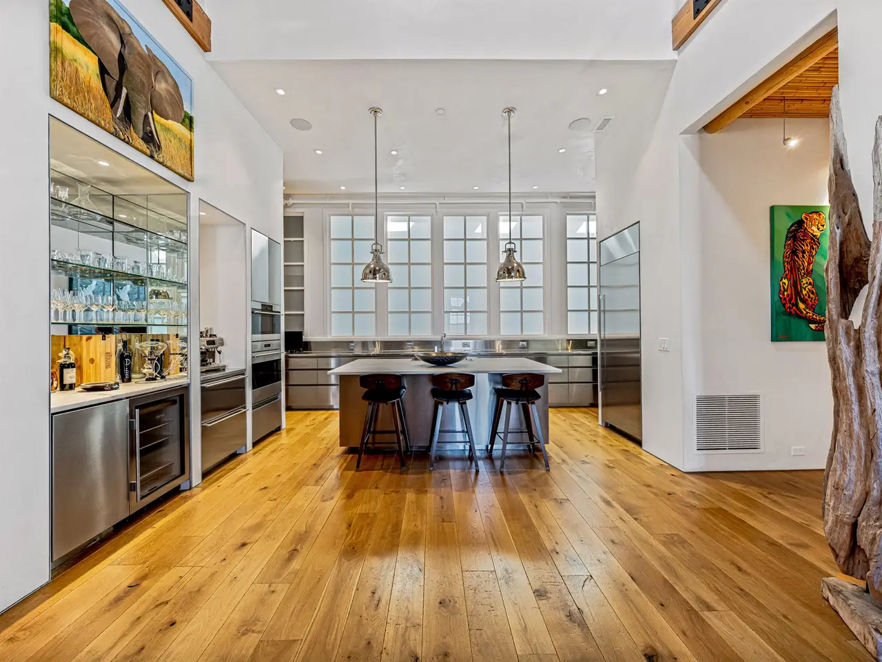 Timeless elegance and modern ease define this magnificent downtown Asheville home offering the highest level of luxury with design by George Studio, Inc, (NY) architecture. Custom details include wide plank flooring from France, marble baths by Ann Sacks, Venetian plaster walls, and Holly Hunt lighting. The soaring great room offers exposed beams and brick, highlighted by an expansive library wall. The large stainless kitchen and island compliment the open concept of this home. Enjoy two primary suites with stunning baths and a bright and sunny day room with views of downtown Asheville and the mountains beyond. This HGTV Award winning home includes a climate-controlled garage with four parking spaces and two large storage rooms. There is private direct elevator access to this reconstructed Richard Smith Building, (Architect of the Biltmore)condo with one-level living. Walk to Harris Teeter, Whole Foods, Trader Joe's. Outstanding luxury, striking from every angle!
