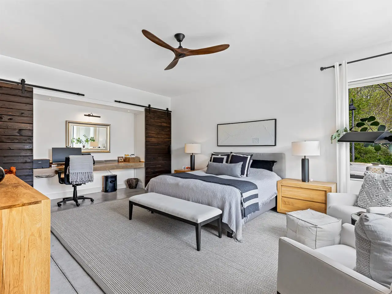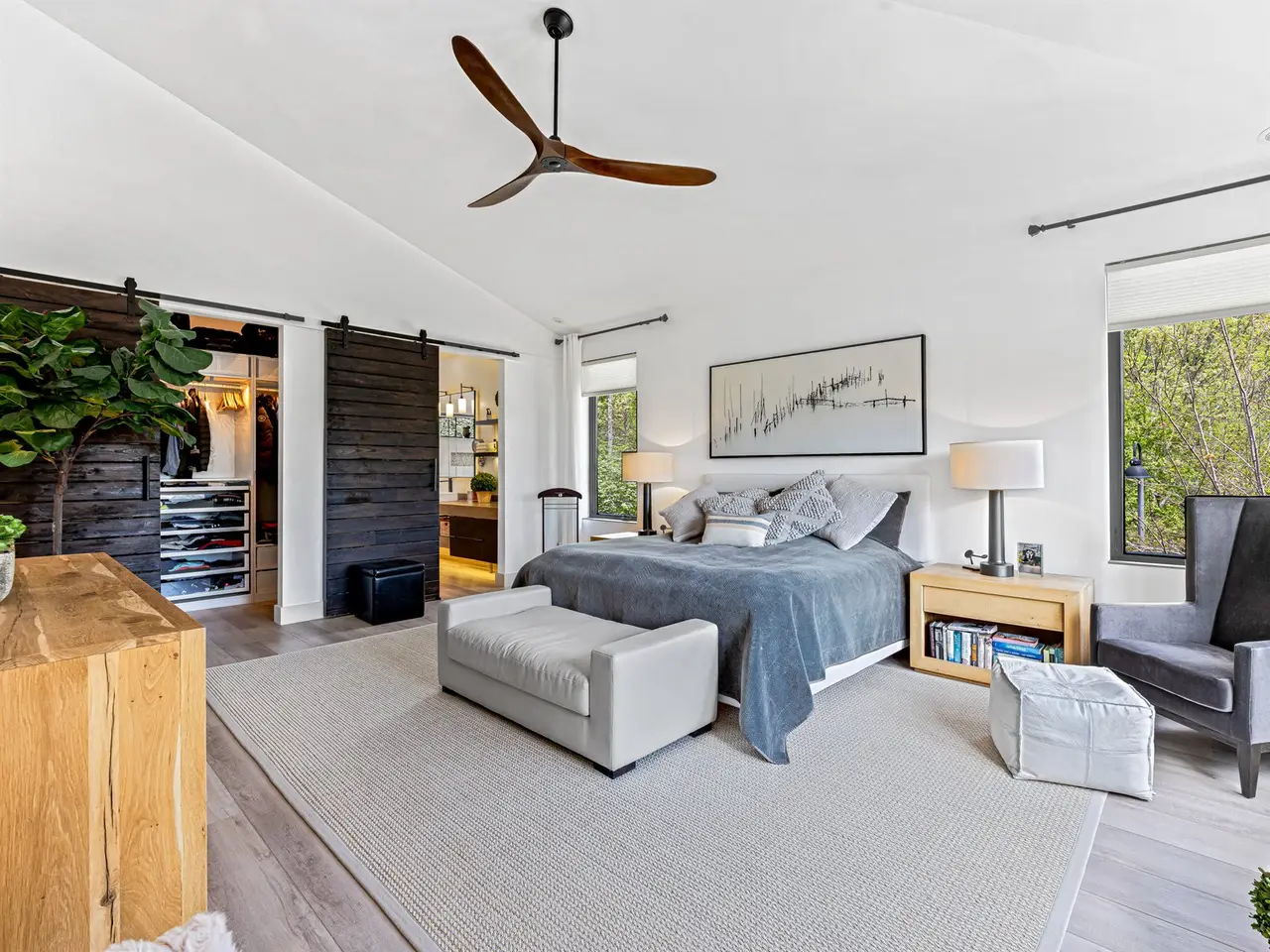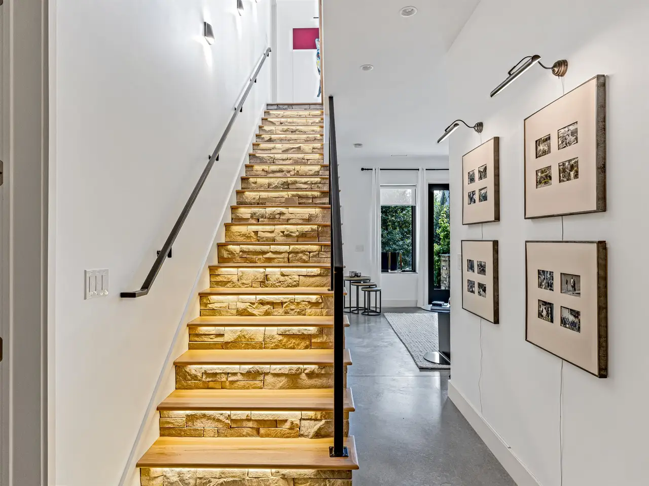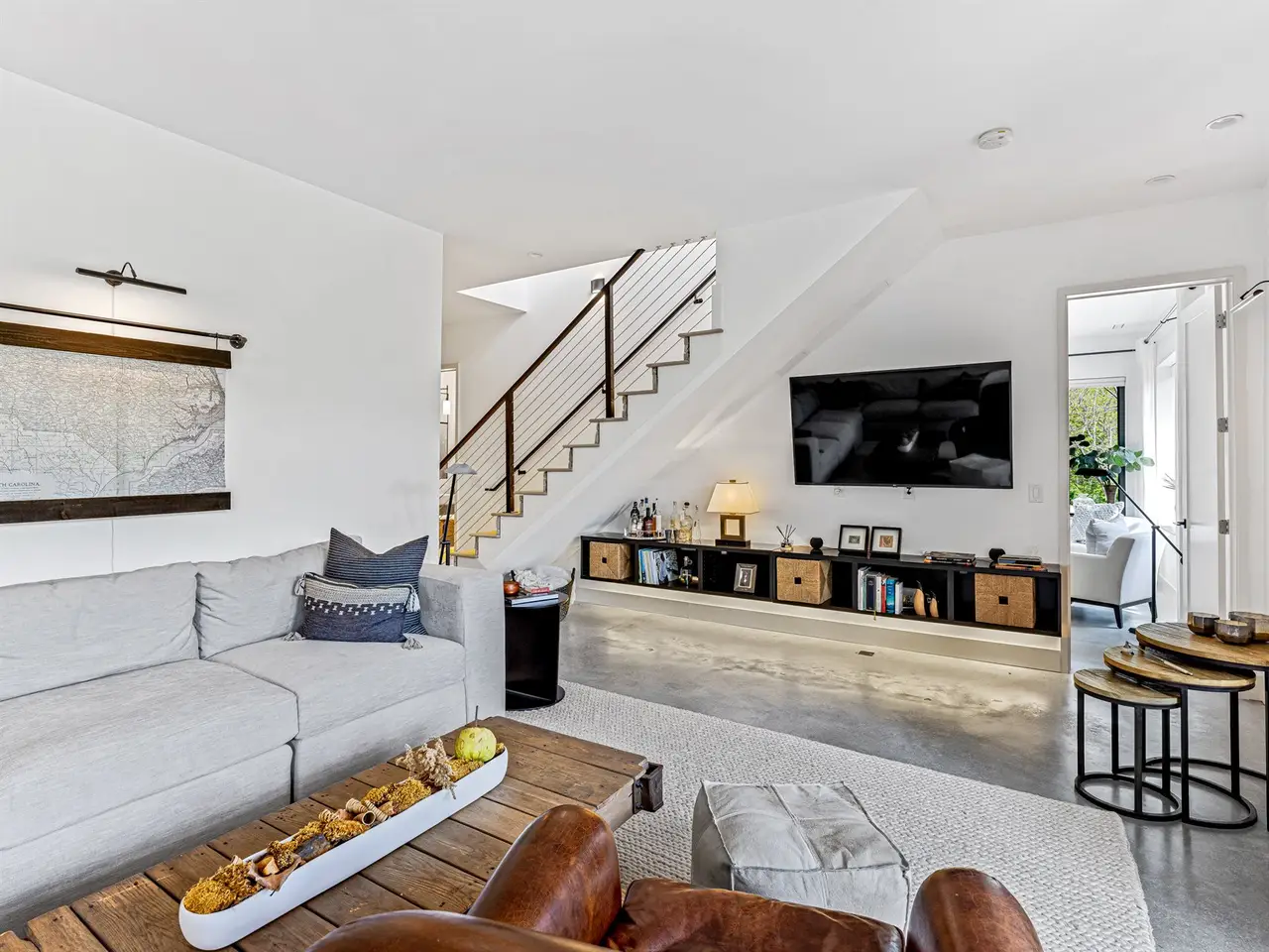 Timeless modern elegance combines seamlessly with the finest in lighting and technology in this custom mountain home located in gated Thoms Estate. Sleek metal surfaces, endless natural light, and earthy wood tones create a magical atmosphere curated by the movement of the sun. Relax in the living/great room with soaring ceilings or entertain on the covered and open decks surrounded by candle lanterns and raised fire boxes. Enjoy a spectacular Chef's kitchen with internally lit drawers, an LED lit Schott Ceran cooktop, and a column refrigerator and freezer. The main level primary suite entices with its privacy and delicious spa bath. The terrace level offers modern stained concrete floors, a wine gallery, fabulous home office/craft room, two guest bedrooms and a bright family room that opens to the terrace patio with concealed storage. Energy efficiency and sustainable living are maximized in this N.C. Green Built Certified home with HERS score of 57. Spectacular, luxury living awaits!