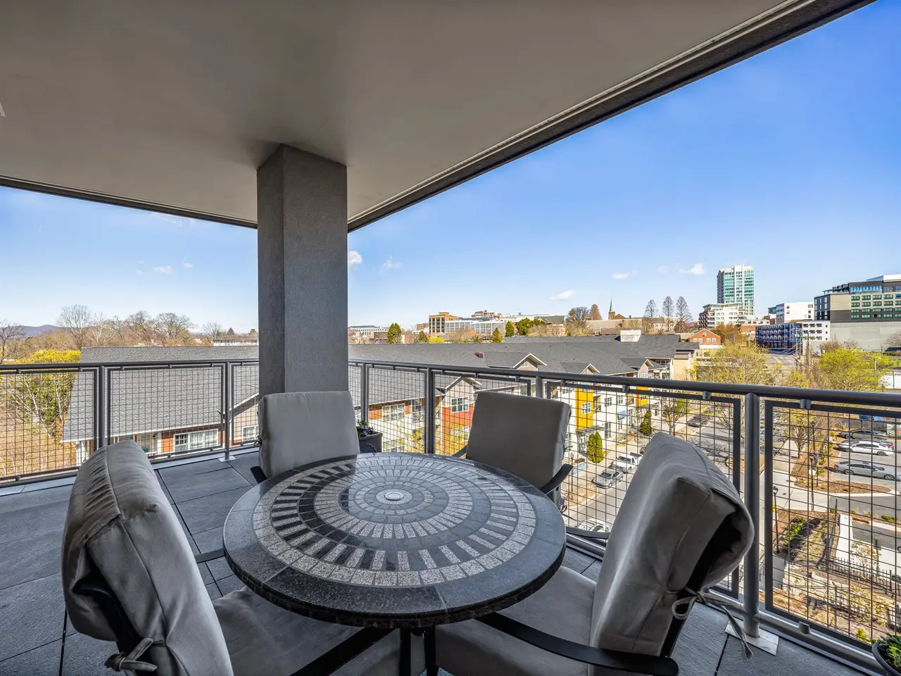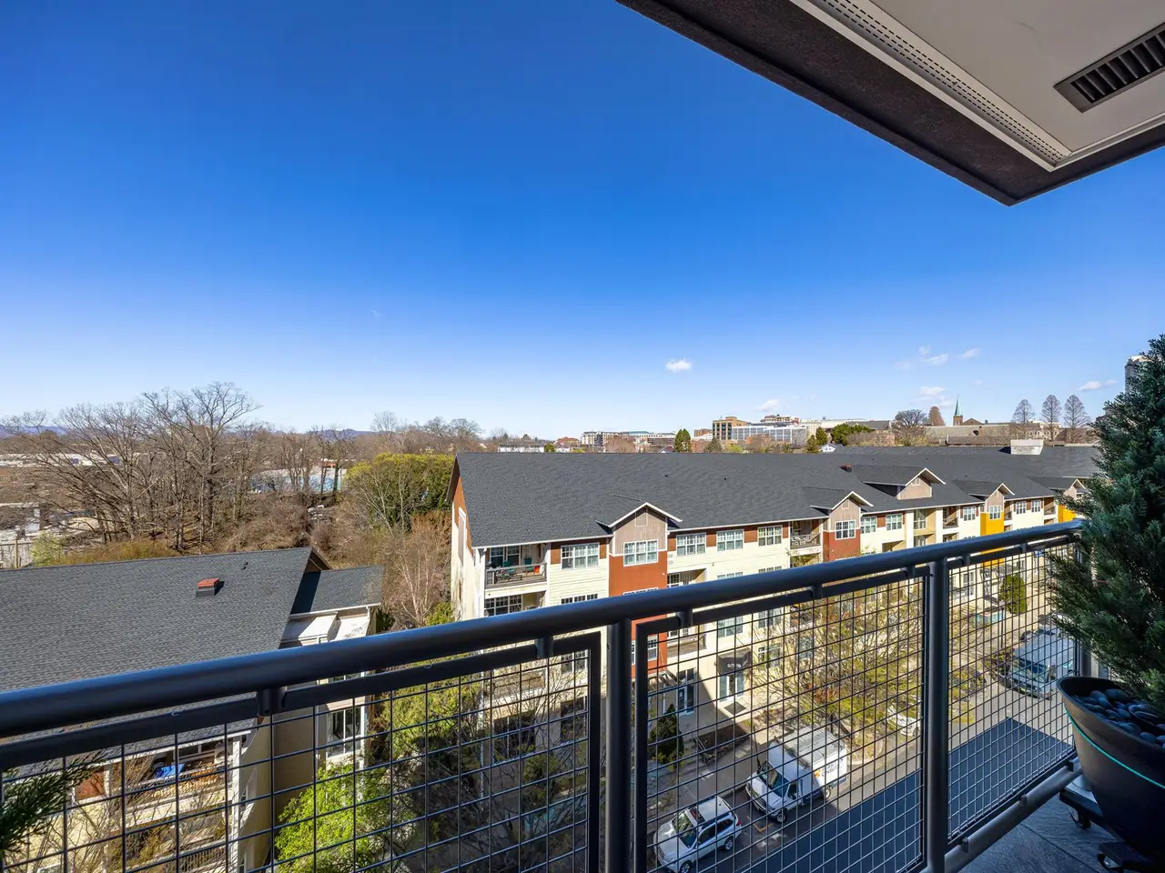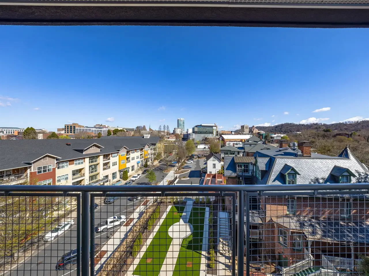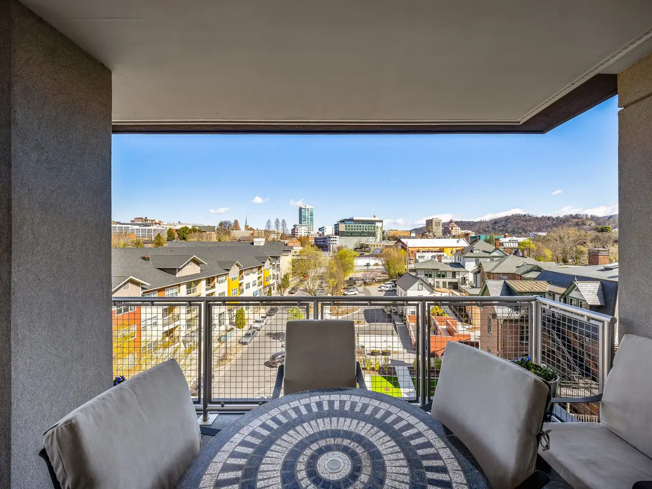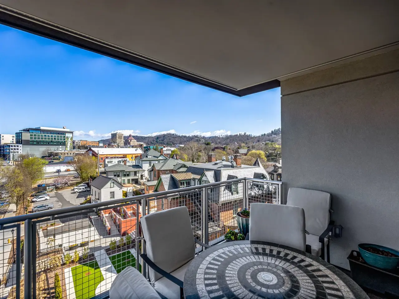 Experience modern mountain luxury in the heart of vibrant Downtown Asheville from this first time offered, North facing home with unobstructed views of Uptown Asheville. This two bedroom split plan/two full bath condominium at 145 Biltmore offers stunning uptown and mountain views from the 6th floor. Enjoy a spacious wraparound balcony/deck plus two Juliette balconies, perfect for soaking in the scenery, including Mt. Pisgah. Imagine the Downtown twinkle of lights, mountain views and overlooking some of Asheville's most historic homes. The well-designed open-concept layout features one-level living, a private primary suite, dining area, generous storage, and two gated garage parking spaces - rare in downtown. Step outside to Asheville's finest restaurants, breweries, shops, arts, and entertainment. Luxury, location, and lifestyle await!