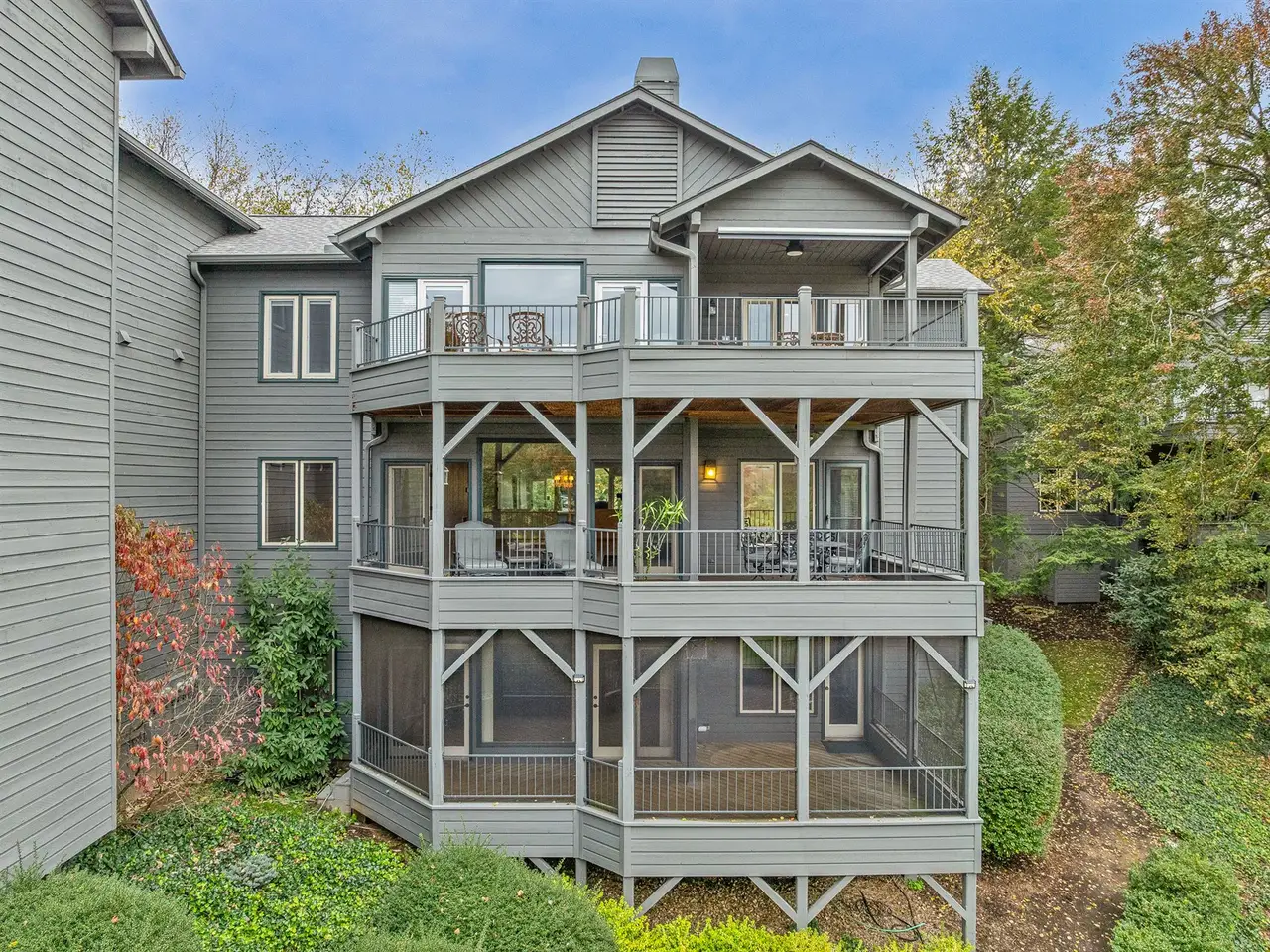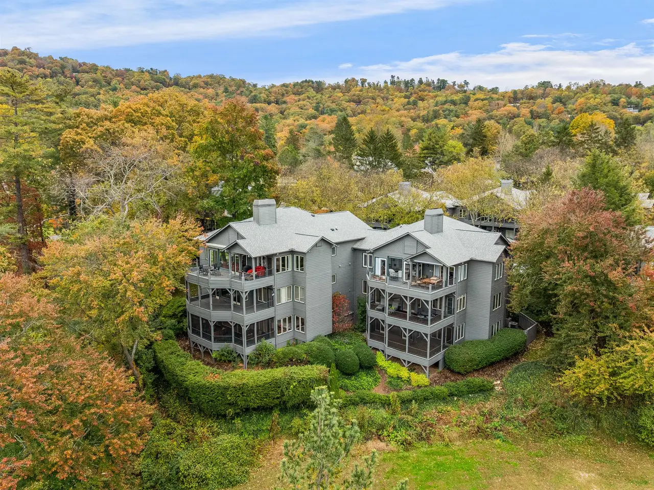 RARE Offering - Includes a Detached, Separately Deeded Garage! Discover the best of Asheville living in this rarely available condominium at 400 Charlotte Street, offering sweeping views of the Grove Park Inn golf course, its tranquil water feature, and the majestic southwestern mountains beyond. Perfectly positioned on the golf course side of a quiet, private 20-unit community - just one mile from downtown Asheville - this no-step, zero-grade entry home blends comfort, convenience, and potential in one of the city's most coveted locations. A RARE detached, separately deeded garage conveys with the property - providing exceptional value, extra storage, EV Drip Charger and the convenience of private parking, a true luxury in this desirable community. Step inside to a spacious, light-filled floor plan featuring 3 bedrooms and 3 full baths, including two generous primary suites. The first primary suite offers a cozy sitting area, two walk-in closets, and an elegant en suite bath with separate tub and shower. The open-concept living and dining areas center around a stunning stone, wood-burning fireplace and flow effortlessly onto a large covered porch - the perfect spot for morning coffee or evening sunsets overlooking the mountains and golf course. Freshly waiting for your personal touch or modern updates, this home offers incredible potential in a truly unbeatable location. Charlotte Street Condominiums is a pet-friendly community offering a peaceful, park-like setting just moments from Asheville's vibrant downtown shops, restaurants, and cultural attractions. (No short-term rentals permitted.) Opportunities like this are few and far between - don't miss your chance to make this mountain-view retreat your new home in Asheville!