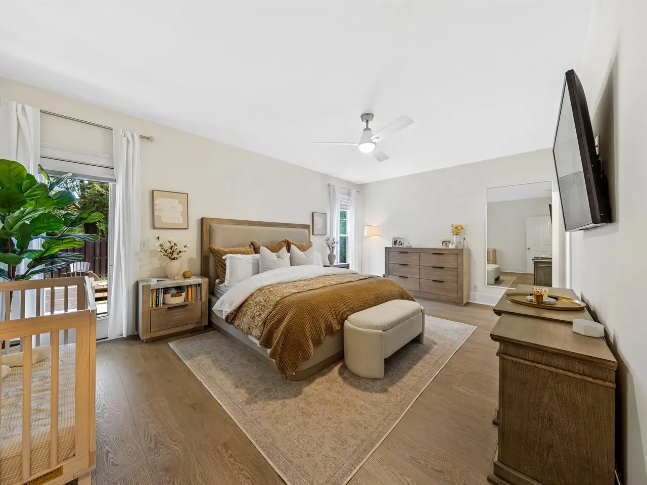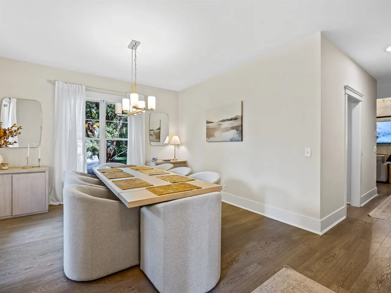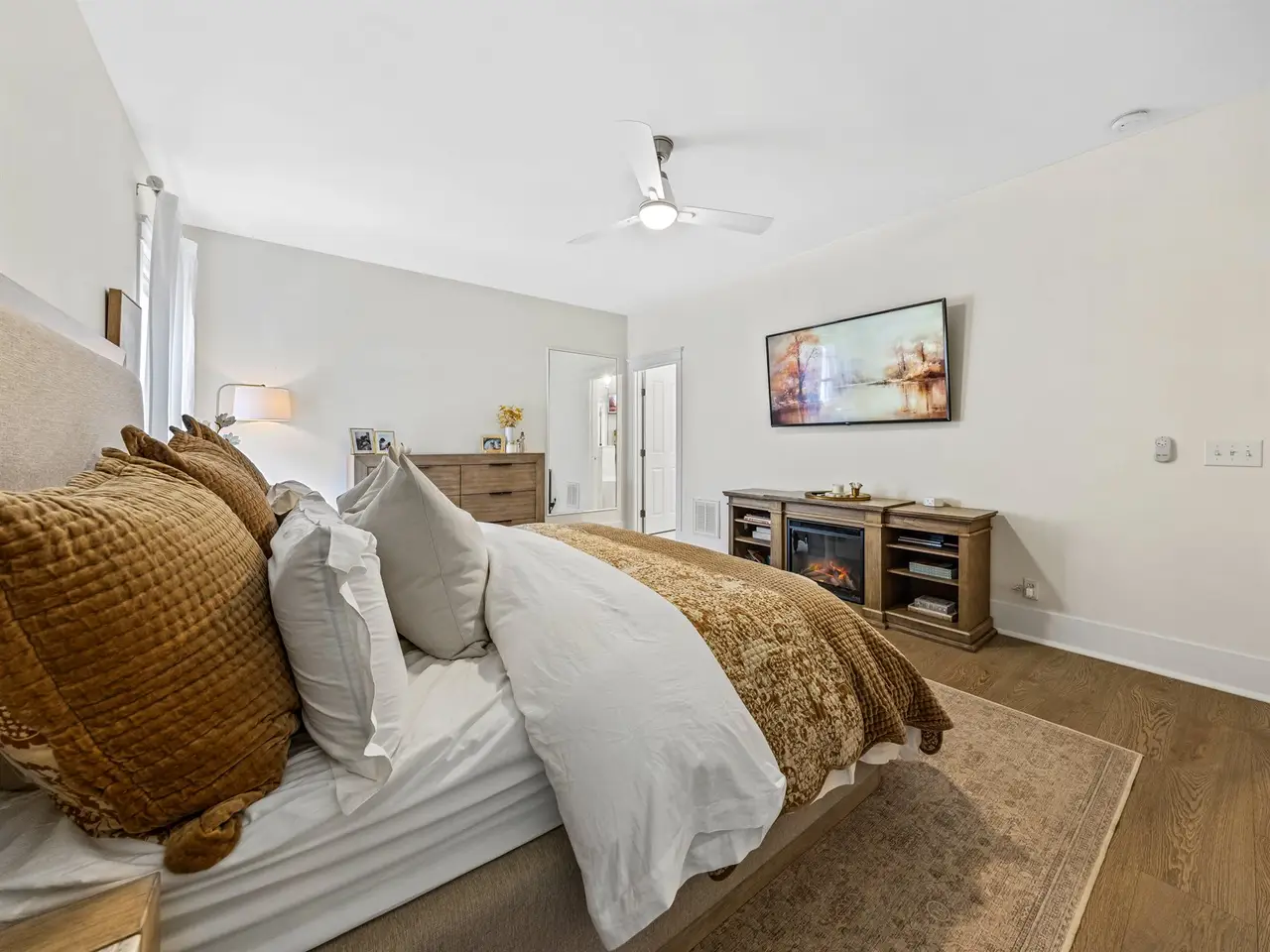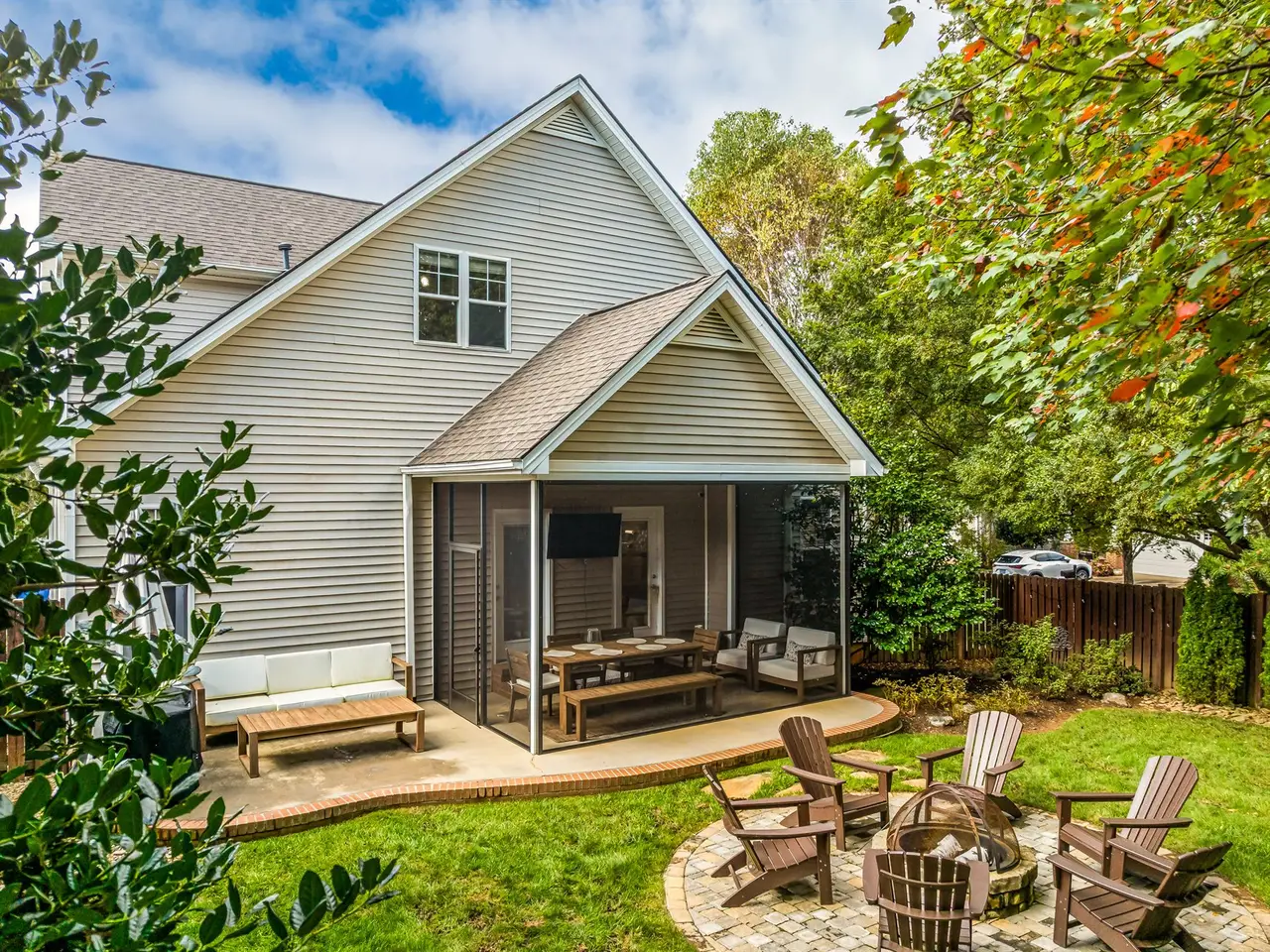 This stunning home was recently remodeled and is nestled in the desirable Heathbrook section of Biltmore Park. This beautifully updated residence boasts a modern yet warm design, featuring an open-concept living area with a cozy fireplace, plush sectional sofa, and elegant chandelier. The gourmet kitchen shines with white cabinetry, a stylish backsplash, stainless steel appliances, and a spacious island perfect for entertaining. The luxurious primary bathroom offers a freestanding soaking tub, dual vanities, and a sleek glass-enclosed shower with gold fixtures. Additional highlights include a well-appointed laundry room, a serene screened porch with outdoor dining, and a charming backyard with a fire pit area. Conveniently located near Biltmore Park's amenities, this home combines comfort, style, and accessibility in one perfect package.