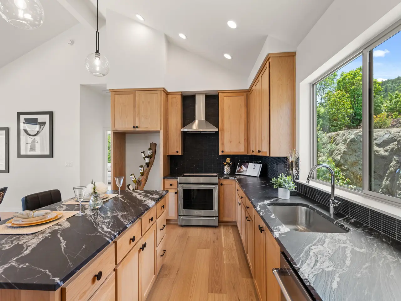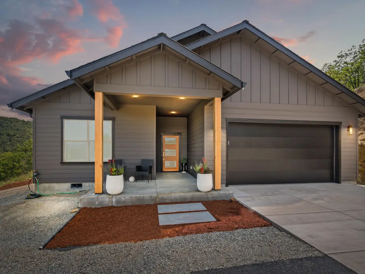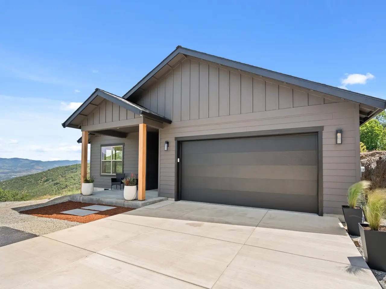 Luxury meets efficiency and privacy in this 2025 custom home by Suncrest Homes, a trusted builder of over 450 Rogue Valley homes. Earth Advantage certified for greater energy efficiency, this single-level 1,996-sqft home offers 3 bedrooms, 2 bathrooms, and a 2-car garage with workshop space. Set on a private 5-acre lot with ample parking for RVs and more, the home is designed to capture panoramic valley views through transom windows & sliding French doors in the vaulted great room, complete with a cozy electric fire feature. The kitchen is both stylish & functional, featuring a generous center island, walk-in pantry, sleek undermount sink, textured quartz countertops, and artisan tile backsplash. White oak LVP flooring flows throughout, with tile in the bathrooms. Private well with holding tank & whole-house filtration. Solar PV ready. Asphalt drive all the way to the house. Ready to be elevated with your vision for landscaping and outdoor living. Just 10 minutes from downtown Ashland.