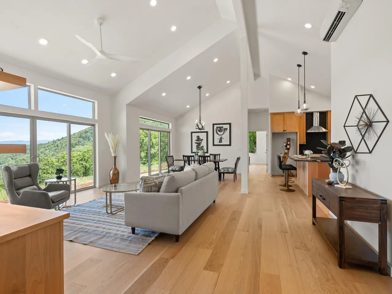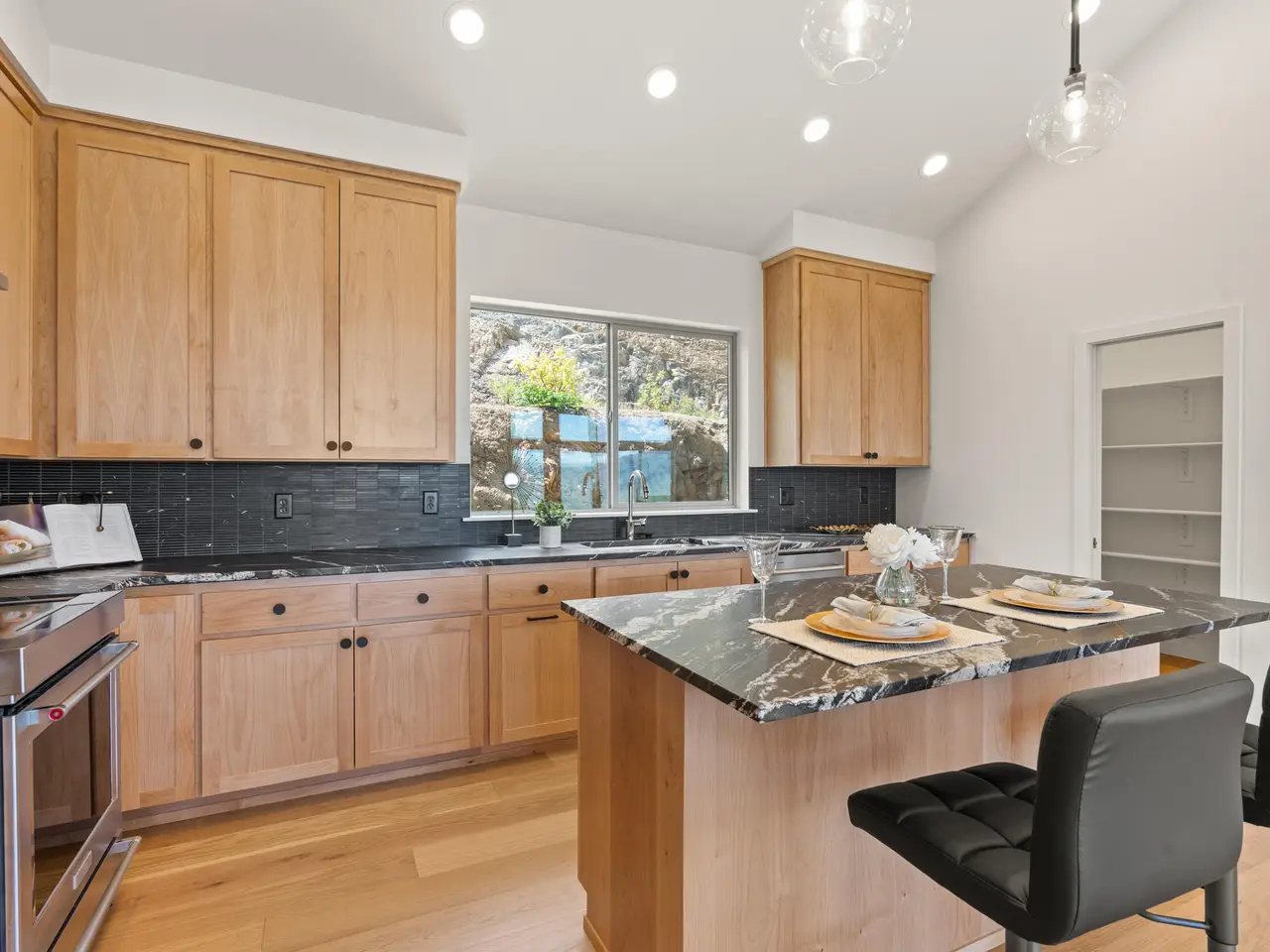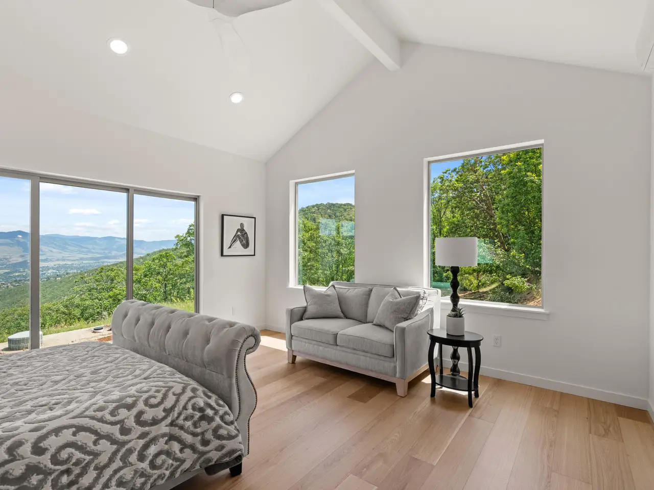 Luxury meets efficiency and privacy in this 2025 custom home by Suncrest Homes, a trusted builder of over 450 Rogue Valley homes. Earth Advantage certified for greater energy efficiency, this single-level 1,996-sqft home offers 3 bedrooms, 2 bathrooms, and a 2-car garage with workshop space. Set on a private 5-acre lot with ample parking for RVs and more, the home is designed to capture panoramic valley views through transom windows & sliding French doors in the vaulted great room, complete with a cozy electric fire feature. The kitchen is both stylish & functional, featuring a generous center island, walk-in pantry, sleek undermount sink, textured quartz countertops, and artisan tile backsplash. White oak LVP flooring flows throughout, with tile in the bathrooms. Private well with holding tank & whole-house filtration. Solar PV ready. Asphalt drive all the way to the house. Ready to be elevated with your vision for landscaping and outdoor living. Just 10 minutes from downtown Ashland.
