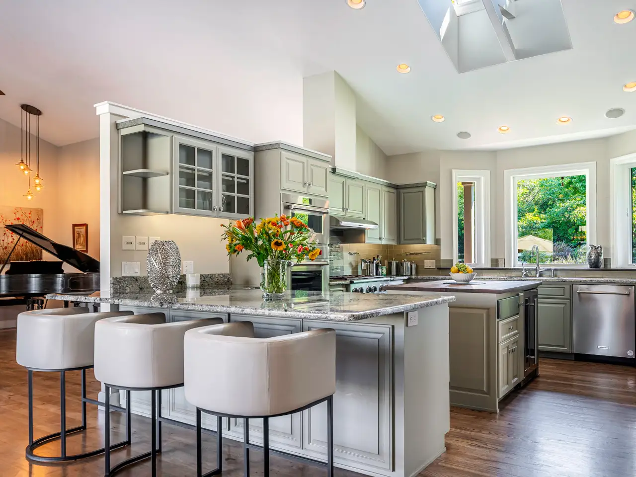 Rare single-level view home on private acreage in a desirable close-in neighborhood of high-end country estates. Abundant natural light and air flow with operable casement windows and NanaWall glass doors, exceptional outdoor living areas with custom lighting, remote-operated screens, heated in-ground saline pool, and cabana area with gas fireplace. Gourmet kitchen with walnut island and granite dining counter, stainless Wolf convection ovens, and six-burner Dakor gas cooktop. Temperature-controlled walk-in pantry and 600+ bottle wine cellar. Primary suite with spacious walk-in closet and full ensuite bath with double vanity, radiant-heated tile floor, and curbless shower. Media room or potential second primary with walk-in closet, full guest bath, guest bedroom with closets, office or third bedroom, laundry room, and attached two-car garage. Mature trees, ornamental plantings, water features, fenced organic raised beds, and barn with RV parking and half-bath. Inquire for details!
