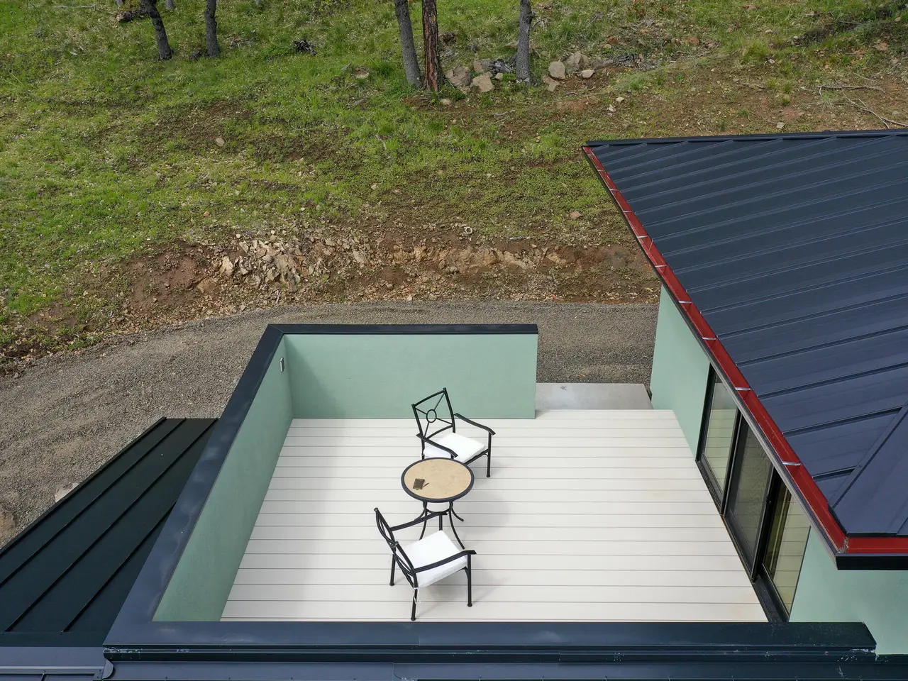 • Metal roof on main house and detached garage