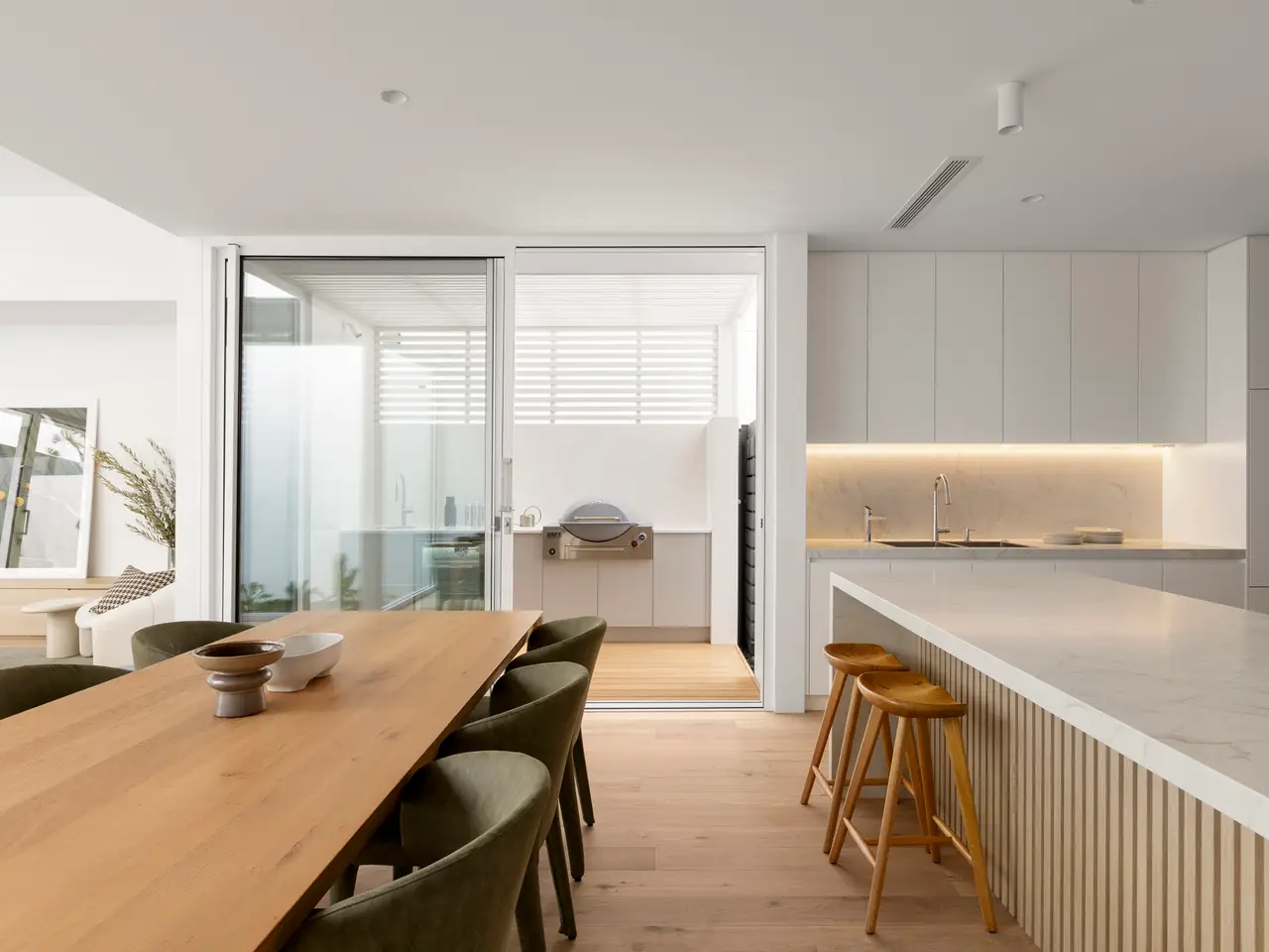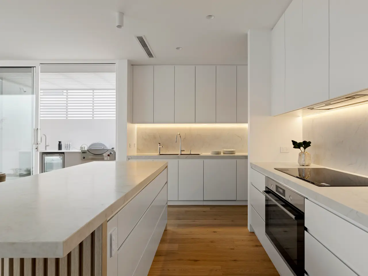 Tucked within Aspendale's most exclusive beachside enclave, this three-bedroom, three-bathroom, dual living zone residence by Lowe Design & Build sets a new benchmark in sustainability and timeless coastal luxury. Just steps from pristine stretches of sand and crystal-clear waters, this contemporary home offers an unrivalled lifestyle with fine dining, cafes and shopping all within strolling distance. Beyond its striking façade, a carefully crafted interior awaits with bedrooms, bathrooms and living zones on each level - all accessible via a lift. Stunning open-plan living and dining impress with elevated ceilings and clerestory windows, designed to take full advantage of the beautiful northern sunshine and accentuated by seamless connection to an entertaining oasis surrounded by landscaped gardens. An alfresco kitchen with a built-in Weber barbecue is the perfect addition for hosting. At the heart lies a showstopping kitchen, boasting a butler's pantry and suite of Bosch appliances, including an induction cooktop and integrated dishwasher, sleek porcelain benchtops and streamlined cabinetry. Providing flexibility is a ground-level ensuite guest bedroom and an upper-level master bedroom with a dressing room and underfloor heating in the luxurious ensuite, while the third bedroom sits adjacent to a lavish main bathroom. The upstairs retreat enjoys glistening water glimpses, equipped with a discreet kitchenette for relaxed entertaining on the balcony, the perfect spot to capture the sea breeze, sunsets and fireworks. Achieving an impressive 70% Build Environment Sustainability Scorecard (BESS), this 7-star energy-rated sanctuary is prestige appointed with an 8kW solar system with 5kW battery, double glazing, zoned heating and cooling, Hikvision keyless entry and video intercom, plus a double garage with EV charger. Positioned to enjoy a relaxed turnkey lifestyle in this highly desirable pocket, stroll to Mordialloc Creek, Peter Scullion Reserve, the iconic pier, popular eateries, shopping, the train and local schools.