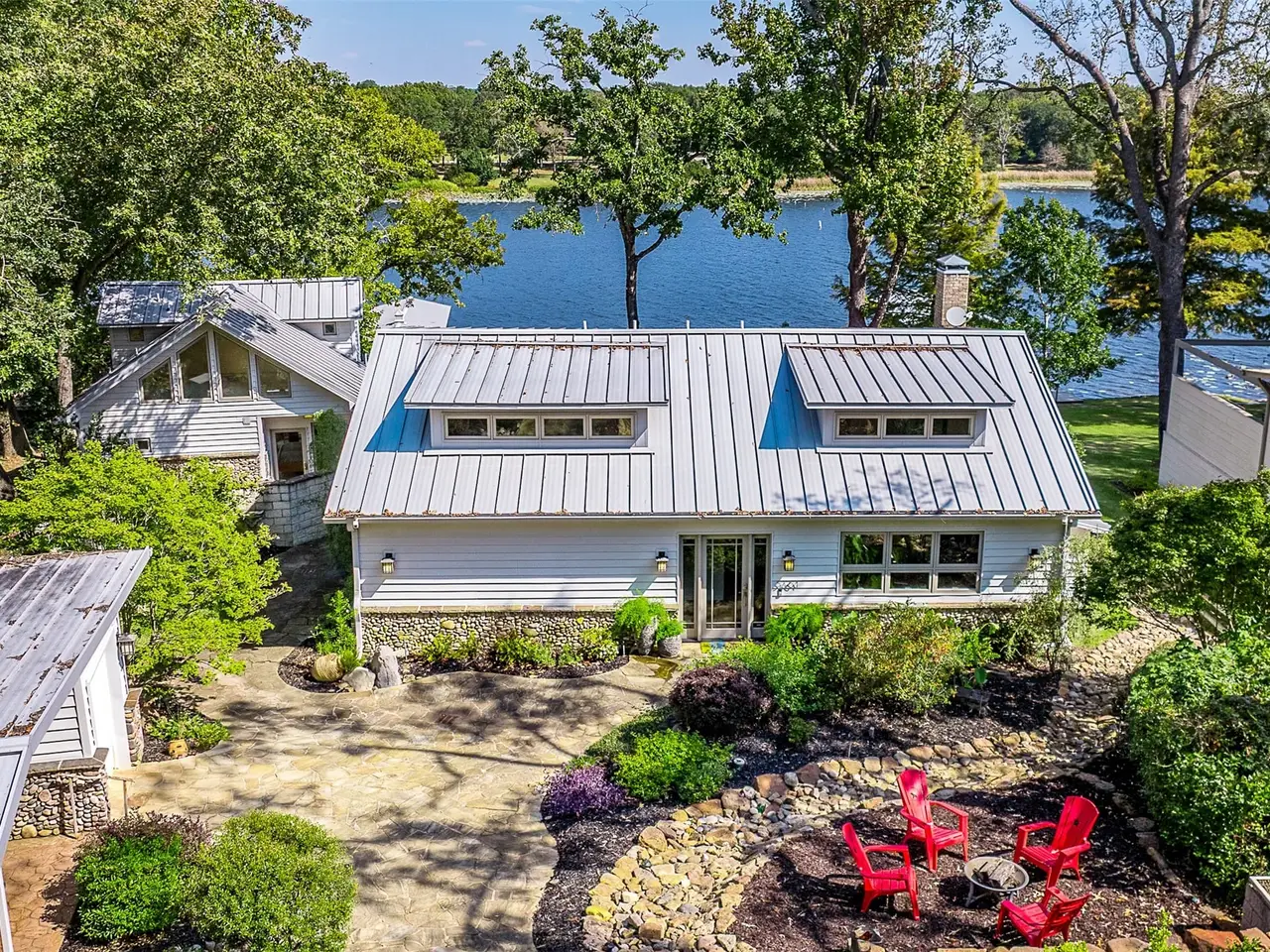 Nestled beneath a canopy of mature trees on one of Lake Athens most desirable streets, within Athens city limits, this waterfront residence offers breathtaking lake views from every bedroom and living space. Featuring two separate structures, the property blends privacy, luxury, and functionality. The main house showcases a gourmet kitchen with a five-burner gas cooktop, built-in refrigerator, granite counters and abundant storage. Spacious living and dining areas open to outdoor patios overlooking the lake perfect for entertaining. Interior highlights include vaulted ceilings, custom cabinetry, a wet bar and both propane and wood-burning fireplaces. A recently updated bathroom, carpet, paint and a converted attic bunk room add comfort and versatility. Across a stone walkway, the secondary dwelling includes a kitchenette, bar with dual mini-fridges, a spa-inspired shower, washer-dryer combo, and private patio overlooking a serene Zen garden. Outdoor living shines with beautifully landscaped yards featuring native Texas perennials. The property includes a boat dock with lift and jet ski platform, Trek decking, lake-sourced sprinkler system, buried propane tank and golf cart carport plus the added convenience of city utilities, a standout feature among lakefront properties. Smart features include a Sonos whole-house sound system, Ring security and cameras, keyless entry and an automatic water shut-off system. Located less than half a mile from the Boathouse Bar and Grill and approximately 4 miles from restaurants & shopping, this home offers luxury, convenience, in a deep-water setting ideal for year-round lake enjoyment. City water, sewer, trash pickup, police & fire services are a rare find on the lake. And an extra bonus are the front-row views of the annual fireworks over Lake Athens from the Texas Freshwater Fishery.