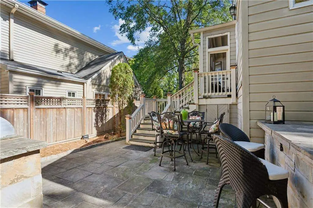 Truly a must-see home within walking distance to the Duck Pond, Garden Hills pool and playground and Peachtree Road Farmer's Market - just in time for Summer! This charming home on a rare, double corner lot in Peachtree Heights East offers delightful curb appeal, and a wonderful main level open floor plan. The welcoming entry courtyard flows from a level front yard, inviting you into the living room with a beautiful arched, stacked stone fireplace. The rear, two-story addition was designed for gathering and entertaining, with an oversized family room and kitchen with an abundance of natural light and 10 foot ceilings. The custom designed kitchen features arched windows, a custom-crafted mantel, double ovens, double dishwashers, gas cooktop, granite counters, large island & breakfast room, with a tucked away built-in desk and cubby area by the side entry. The ample family room and kitchen both open to a large screened-in porch with vaulted ceiling, beadboard & beam detailing, and sunset views. Separate dining room and cozy study, plus a sought-after primary suite on main with dual walk-in closets and custom-designed primary bathroom addition, featuring a built-in armoire, double vanity, separate soaking tub and double shower. There are two secondary bedrooms on the main level as well that share a bath, plus a separate powder room. Upper-level staircase leads to a sitting room/playroom/office and an sleeping room with large closets. The finished, daylight terrace level includes a bedroom and bath, as well as a bonus room that is currently being used as a gym. The private backyard has a double stone patio with built-in stainless grill, stone fire pit and outdoor bar counter with built in TV, a pea gravel play area and extra lower bonus yard. One car garage that can be easily converted back into two. Many upgrades have been made this year including brand new water heater, pressure reducing valve, upgraded bathroom plumbing and upgraded main AC unit!