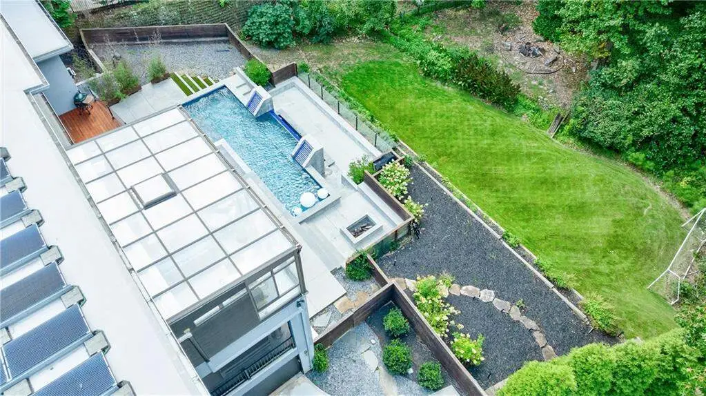 Tucked away on a quiet, tree-lined street in the heart of Buckhead, this exceptional modern residence sits on a private and expansive 0.83+/-acre lot-just minutes from top-rated schools, premier shopping, PATH 400, and all that Atlanta has to offer. From the moment you enter, the home captivates with its light-filled, open-concept main level, soaring ceilings, and clean, contemporary lines. The spacious great room seamlessly flows into a stunning chef's kitchen, featuring a dramatic quartz waterfall island, top-of-the-line Miele and Sub-Zero appliances, custom soft-close cabinetry, and double ovens, including a steam oven. The main level offers a formal dining room, a dedicated home office, and a private guest suite with a full bath. A spacious two-car garage with soaring 16-foot ceilings is also located on this level, the garage already has an indoor basketball hoop but could also be transformed into a car lift system, making it a perfect fit for automotive enthusiasts or collectors. The two car garage is complete with two electric car chargers. Another feature of the home is a total of seven electric shades throughout the house, the electric shades on the main living area doors can remain open while keeping out the sun, insects etc. The two electric shades on the covered outdoor deck on the main level can transform the space from an open-air setting to a fully enclosed screened porch - a truly impressive and versatile feature. A modern staircase leads to the upper level, where you'll find three generously sized en-suite bedrooms, plus a versatile bonus room ideal as a second office or a fourth upstairs bedroom. The primary suite is a true retreat with a spacious walk-in closet and a luxurious spa-inspired bathroom, complete with a steam shower and Japanese insulated soaking tub-perfect for hot/cold plunge therapy. The finished terrace level includes a guest bedroom, home gym, media room, and an oversized single garage-an ideal setup for an au pair or in-law suite with private exterior access. Each level of the home offers seamless indoor-outdoor living, with over 2, 000 square feet of deck and patio space. Step outside to your resort-style backyard oasis, where you'll find a breathtaking infinity-edge pool with waterfalls, integrated spa, fire pit, and a level lawn-perfect for play, entertaining, or simply relaxing in total privacy. Designed with sustainability and quality in mind, this home features a solar array with battery backup, spray foam insulation, and energy-efficient windows for optimal comfort and efficiency. Premium materials include a durable TPO roof, IPE wood cladding and decking, modern solid wood doors, architectural hard plank, and stucco exterior-blending cutting-edge design with timeless craftsmanship.