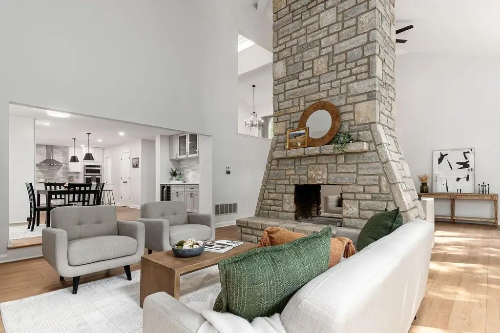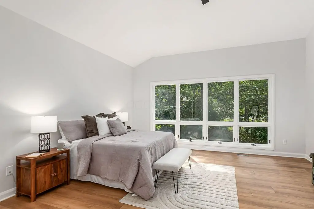 Experience refined living in this fully reimagined custom estate, tucked away on -2 private wooded acres in one of Westerville's most prestigious settings. Originally built in 1988, this home has been completely transformed inside and out with high-end modern finishes paired with timeless craftsmanship throughout its expansive sq ft of living space. The main floor features an open, light-filled layout with walls of windows that bring the outdoors in. The showpiece is a first-floor primary suite a true retreat offering a spa-like bathroom with a floor-to-ceiling tiled shower, dual rainfall showerheads, and a freestanding soaking tub. Step directly from your suite onto a deck overlooking the serene, wooded ravine. A first-floor laundry room and mudroom add seamless day-to-day convenience, while the custom chef's kitchen flows into the spacious living area perfect for entertaining. Waddington Oak flooring, soaring ceilings, and thoughtful architectural details elevate every space. The fully finished walk-out lower level is an entertainer's dream, complete with a custom bar, home gym, generous media area, a full bedroom with its own luxurious en-suite bath, and direct access to another outdoor deck ideal for gatherings or peaceful evenings surrounded by nature. With five total bedrooms, three full and two half baths, and multiple indoor/outdoor living areas, the home offers exceptional flexibility for multi-generational living or extended guest stays. This is more than a home it's a lifestyle. A world of privacy, sophistication, and connection to nature just minutes from top-rated schools, Hoover Reservoir, and the best of Westerville. Private showings begin soon contact Beth Williams directly to experience this extraordinary property.