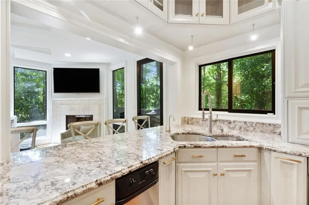 Renovated Contemporary Showpiece! Step inside to a dramatic two-story, two-sided fireplace that anchors the main living space, creating a stunning architectural centerpiece visible from the great room, music room and chic bar area. This completely move-in ready home offers the perfect blend of style, function, and is located in one of Atlanta's most coveted Inside-the-Perimeter neighborhoods-Glen Errol. This architectural gem blends sleek contemporary design with warm, inviting spaces, all framed by floor-to-ceiling windows that flood the home with natural light and showcase its wooded surroundings. The entertainer’s kitchen is a true showstopper, featuring a massive island, custom cabinetry, and a hidden walk-in pantry, all opening to a cozy sunroom with its own fireplace--the perfect spot for morning coffee or after-dinner conversation. A formal dining room offers elegant space for special occasions. The main floor also features a versatile office/guest suite with a Murphy bed and a full bath, perfect for visitors or working from home. Upstairs you’ll find a generously sized primary suite with huge walk-in closet and brand-new spa like bath as well as 3 more bedrooms and 2 fully renovated bathrooms, offering comfort and privacy for the entire family. A landing area overlooking the great room offers plenty of space for the entire family to hang out on the same level as the bedrooms. The terrace level offers a large living area, a sixth bedroom with half bath, and a vast amount of unfinished space, presenting endless possibilities for customization - think gym, media room, workshop, or additional storage. The backyard has not been developed yet but there is space to create your own oasis. Additional highlights include a 2-car garage with ample extra parking, updated lighting and finishes throughout. This home is a rare blend of modern sophistication and timeless comfort, all nestled in a quiet, tree-lined community just minutes from Buckhead, Sandy Springs, and major highways.