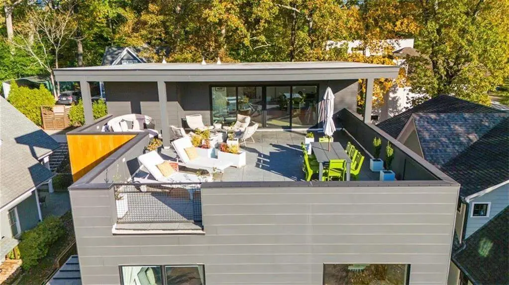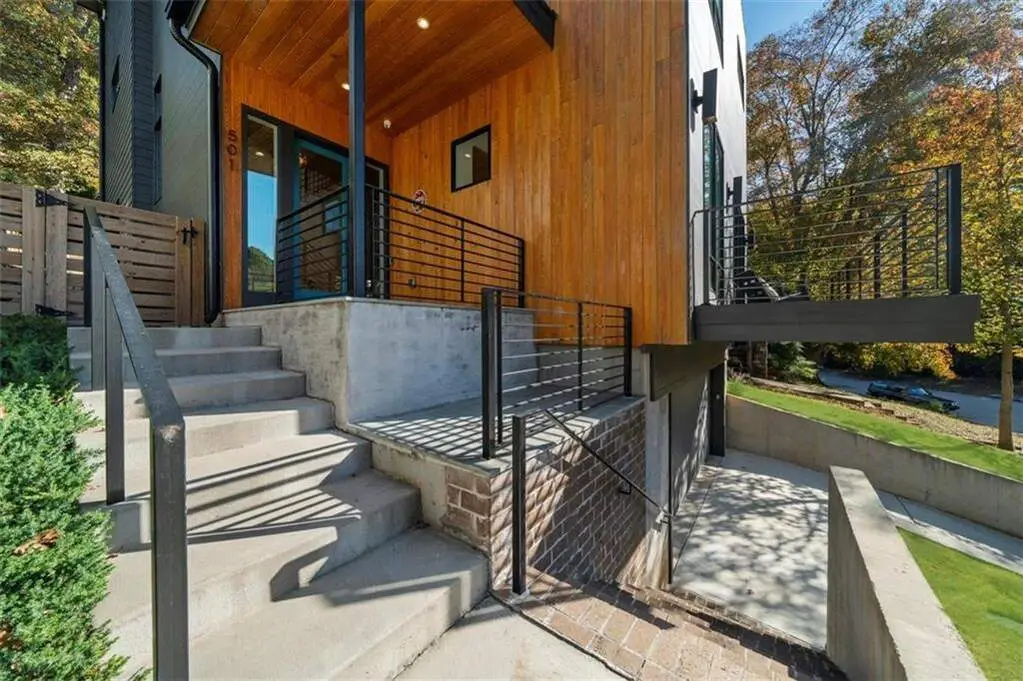 Architectural Masterpiece Overlooking Candler Park Golf Course A rare opportunity in Atlanta's most coveted neighborhood, this unparalleled modern residence at 501 Terrace Ave NE is truly a work of art. Completed in 2022, this four-level home is positioned on one of Candler Park's most desired streets, directly across from the lush greenery of the Candler Park Golf Course and adjacent to the neighborhood playground and tennis courts. This property offers a sophisticated, contemporary lifestyle defined by stunning design and premium amenities. Design & Entertainment Step inside an open-concept sanctuary featuring seamless white oak wood flooring and soaring 10-foot ceilings throughout. The main level is designed for both grand entertaining and intimate living, highlighted by a dramatic floor-to-ceiling concrete-stamped fireplace and custom accordion glass sliding doors that open to a covered patio and private backyard oasis. The chef's kitchen is a culinary enthusiast's dream, featuring sleek custom cabinetry, an oversized walk-in pantry, a spacious Island, a dedicated bar area, and a suite of professional-grade Wolf appliances, including double ovens, an 8-burner gas cooktop, and a microwave. A custom-paneled refrigerator and handmade tiled backsplash complete this exquisite space. The adjacent dining room, with seating for 12 and a wall of floor-to-ceiling windows, opens onto a front balcony with serene views of the golf course. A discreet half bath is tucked away for convenience. The second-floor hosts four of the five bedrooms. The primary suite is a light-filled haven, featuring a floor-to-ceiling window and a custom walk-in closet. The spa-like primary bathroom is a vision in design, with a floating double vanity, a freestanding soaking tub, and a floor-to-ceiling navy-tiled walk-in shower with elegant gold finishes. Two additional bedrooms offer generous closet space and share a Jack-and-Jill bathroom, while a fourth bedroom boasts a private ensuite. A dedicated laundry room with a utility sink and built-in cabinets adds convenience to this level. (Two of the four Bedrooms are active Offices for Owners) Ascend to the "magic" third floor, a flexible space designed for wellness and leisure. This area includes a mini coffee and beverage station, a library/exercise space, and abundant natural light that spills in from the expansive rooftop terrace. This incredible outdoor space offers a private sanctuary for morning yoga, sunbathing, or evening soirees, complete with integrated Sonos speakers for the perfect ambiance. A half bathroom and ample storage areas complete this Roof Top Oasis. An Elevator Shaft was built into the house for an easy addition on each level. This home is a testament to modern luxury, blending sophisticated design with an unbeatable location and lifestyle benefits. Don't miss this rare opportunity to own an architectural masterpiece in Candler Park.