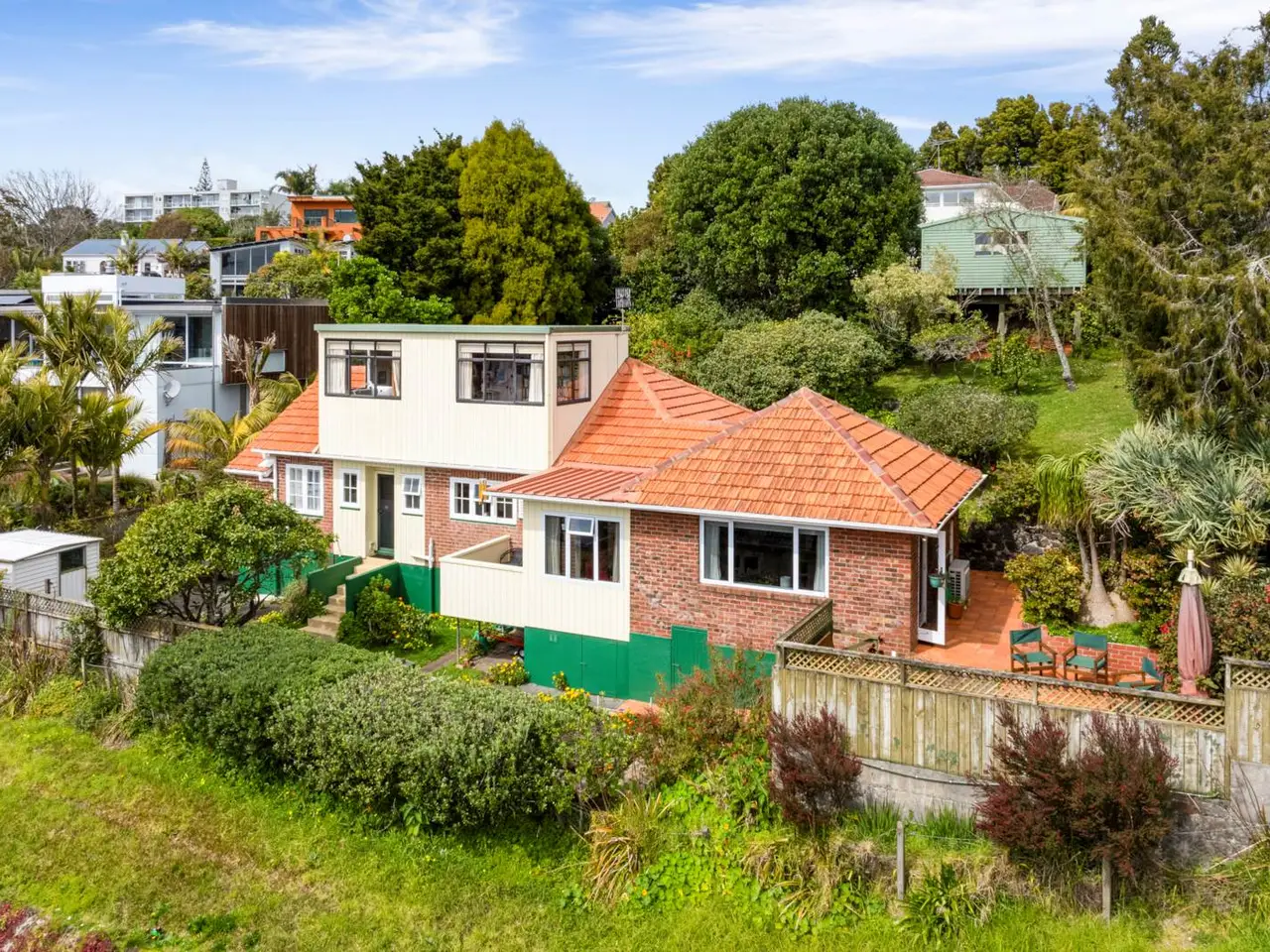Located in a highly desirable neighbourhood just minutes from the Okahu Bay shoreline, this property presents an exceptional opportunity. Whether you choose to fully update the existing home for a practical coastal lifestyle or develop the site for significant growth, the options are promising. The property is optimally zoned as Residential Mixed Housing Urban, and the section features an attractive 1950s solid brick and tile residence situated at an elevation that provides stunning harbour and Rangitoto views. Increasing the height of the current dwelling could enhance these vistas even further. Spanning approximately 180 sqm across two levels, the floor plan includes a study added in 1985 by the current owners. A Skyline garage was constructed at street level, alongside a rock retaining wall, which borders the restored cobblestone pathway leading to the house. The spacious downstairs area comprises four bedrooms, with original polished native timber floors and rimu stairs, complemented by mid-century features and neutral modern decor. Its north-facing orientation maximises sunlight — especially in the living spaces. The separate lounge features a heat pump, timber double-glazed picture windows, and French doors opening to the front terrace. The adjacent dining room also accesses the same outdoor space. The mid-century galley kitchen, with classic overhead cupboards and an updated cooker, harmonises vintage charm with modern updates. The three double bedrooms—main with an ensuite, Velux window, and built-in wardrobes—are well-insulated and comfortable. A sizeable main bathroom and a large separate laundry, accessible from both the hallway and rear foyer, add to the convenience, with steps leading down to the ground floor and outside. The freehold 888 sqm (approx.) section is mostly fenced, featuring established trees and manicured lawns. There is ample parking available on the roadway. Conveniently situated within walking distance to Coates Avenue shops, and a short drive to St. Kentigern School, Baradene College, and zoned for Selwyn College, this exceptional property is prized for its proximity to the beach, boutique shopping, village amenities, and public transport options. Auction: 34 Shortland Street, City on Wednesday 22 October 2025 at 10:00AM (unless sold prior)