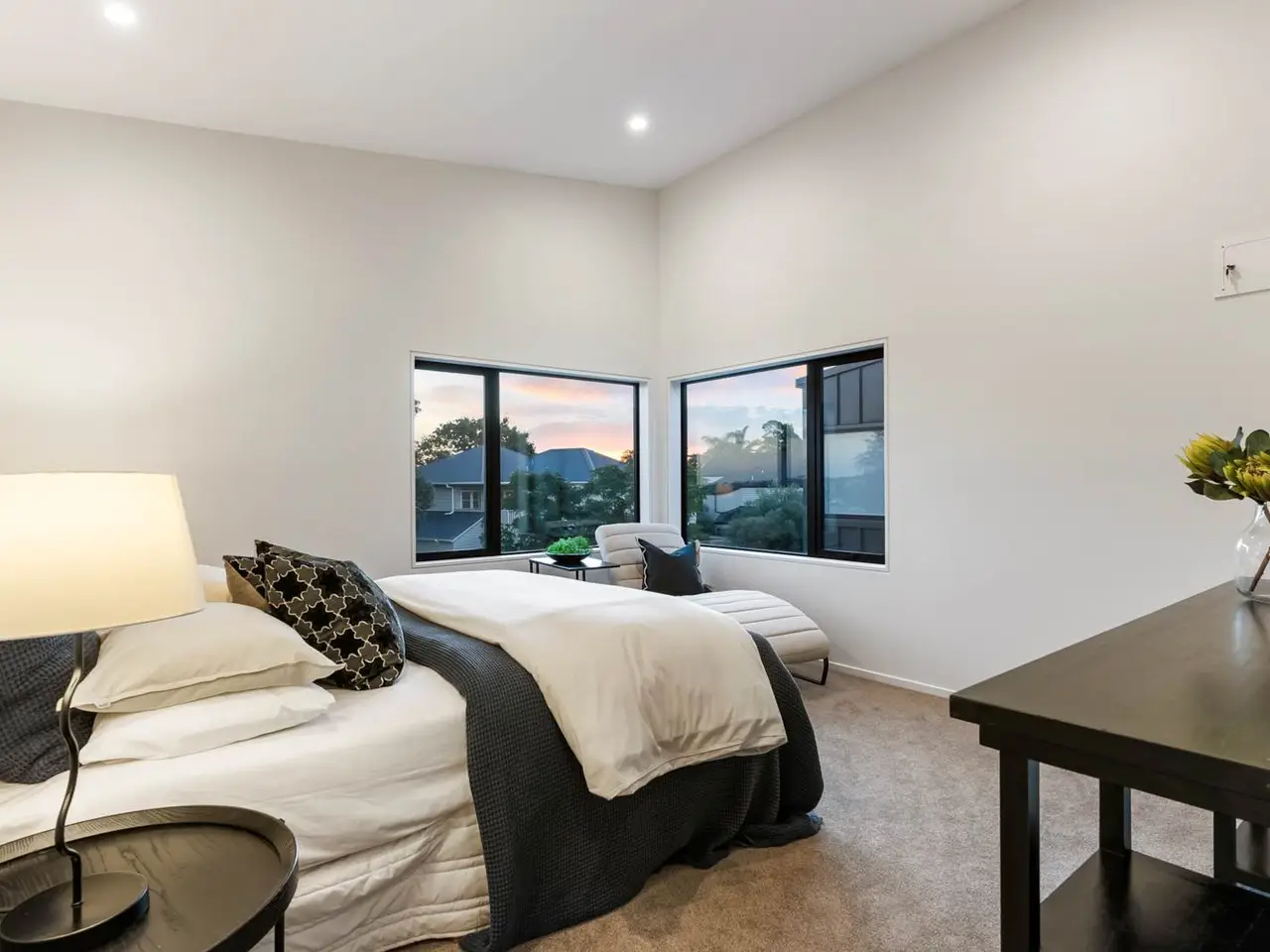 Three sold, ONE LEFT - serious vendor, offers invited. Title & CCC issued (which means it's ready to move in). Set in a quiet street in Orakei, designed by John Ingham, this architectural townhouse is ideal for downsizers seeking comfort, low-maintenance living, and space for visiting family and grandchildren. With easy access to Orakei Train Station, bus routes, and the CBD, it is also close to Eastridge Shopping Centre, Mission Bay, and Orakei Basin. Zoned for Orakei School, Baradene College, and Selwyn College, with additional private schools nearby.Spanning 234 m², the home offers multiple living zones, perfect for relaxing, entertaining, or working from home. Seamless indoor-outdoor flow connects the open-plan living and dining area to a semi-enclosed deck, ideal for family gatherings. Heat pumps and heaters throughout ensure year-round comfort.Four generous bedrooms include a master suite with walk-in wardrobe and ensuite, with space for visiting family. Three modern bathrooms provide convenience, and an internal lift makes moving between levels effortless.West-facing for afternoon sun, the low-maintenance exterior combines concrete and metal panel cladding, requiring no future painting. A double garage provides secure parking, with the possibility of adding one more parking space at the rear. Internal lift, designer kitchen with butler’s pantry, and modern low-maintenance finishes make this freehold townhouse ready to move in, combining comfort, convenience, and a grandchild-ready lifestyle in Orakei and the Eastern Bays. Contact Kristen today to arrange a viewing.