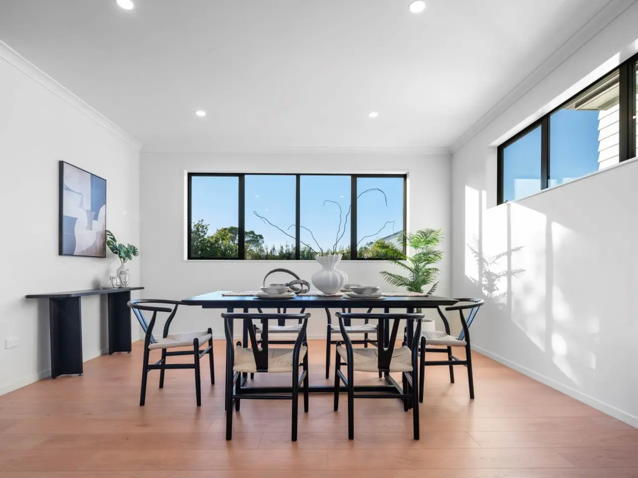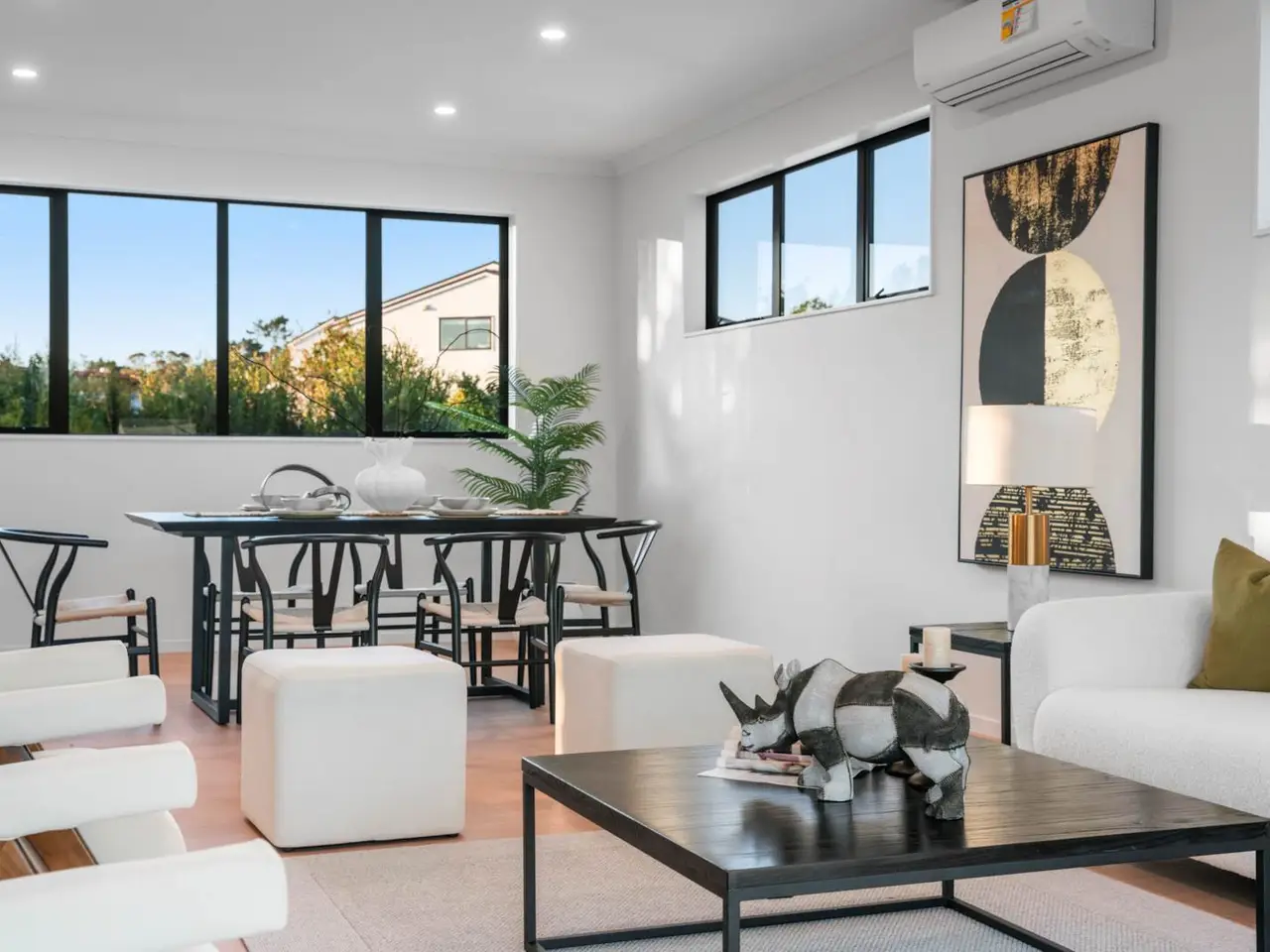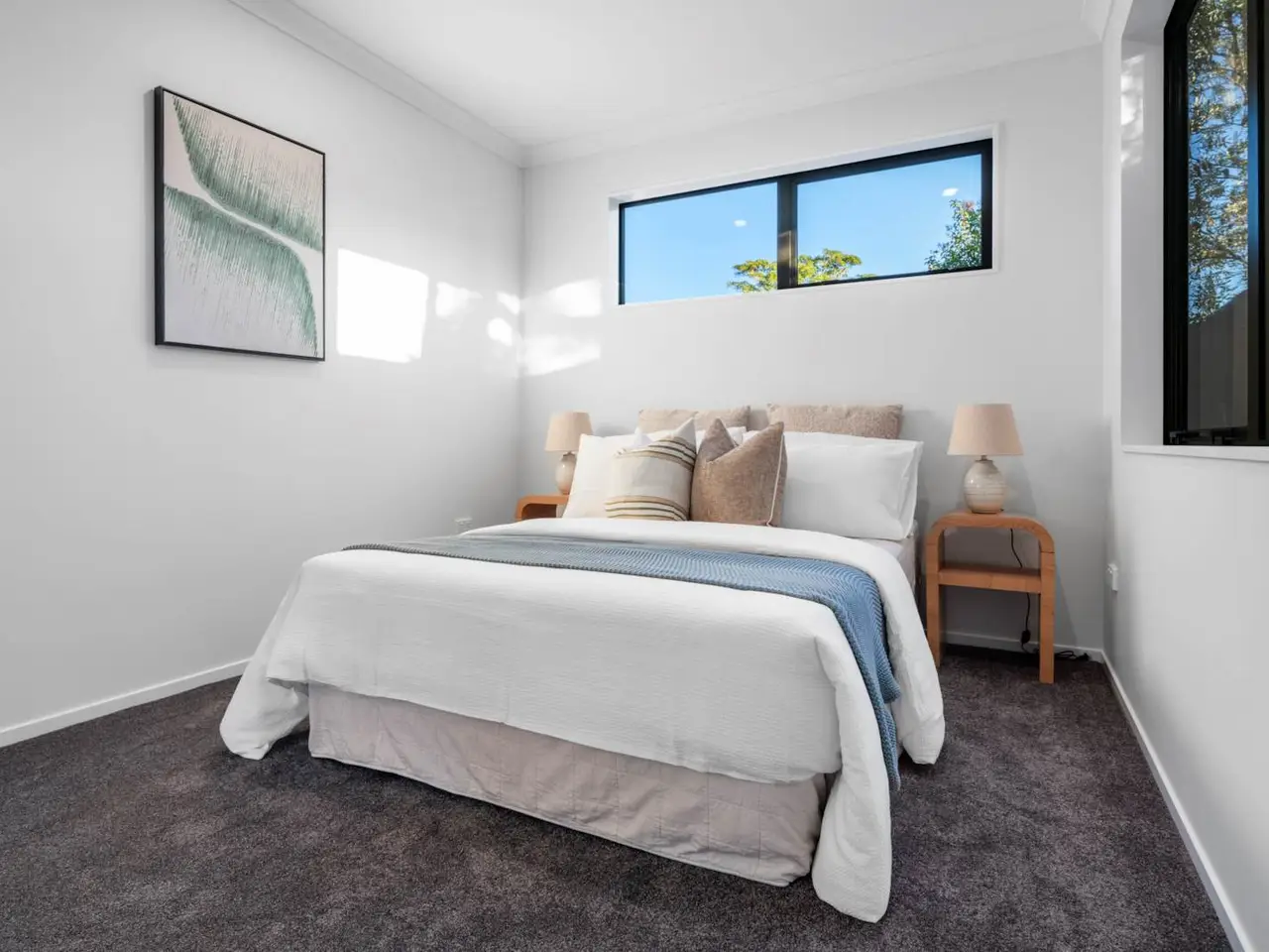 This brand-new, architecturally crafted residence spans approx. 273m² across three levels, combining style, flexibility, and comfort to suit modern family lifestyles. With 5 bedrooms plus a study. 4 bathrooms (three ensuites), and multiple living areas, it offers space for everyone—ideal for large households or extended family with independent access, providing flexibility for multi-generational living, a teenager’s retreat, or a private guest wing.Ground Floor :• Two generous double bedrooms includes a self-contained style layout with a living room, complete with its own entrance for privacy and convenience.• Versatile lounge/media room flowing effortlessly to the private outdoor deck• Double internal-access garage with hidden laundry and extra storageFirst Floor:• Expansive open-plan living, dining, and kitchen area designed for easy entertaining• Chef’s kitchen with excellent storage and modern finishes• Wide balcony extending the living space outdoors• One master bedroom with ensuite• Guest powder room for convenienceSecond Floor:• Two quiet ensuite bedrooms, including a master retreat with walk-in wardrobe• Dedicated study or potential extra bedroomLifestyle & Comfort Highlights:• Multiple air-conditioning units for year-round climate control• High-stud ceilings creating a light, airy feel• Carpeted garage with concealed laundry and storage solutions• Fully fenced garden with electric gate for privacy and securityPerfectly positioned in a peaceful Sunnynook enclave, this home enjoys elevated views and excellent privacy while remaining just minutes from local shops and Pupuke Golf Club. Zoned for both Westlake Boys’ and Girls’ High Schools, it delivers a rare opportunity for families seeking quality, location, and a true “lock-up-and-leave” lifestyle.
