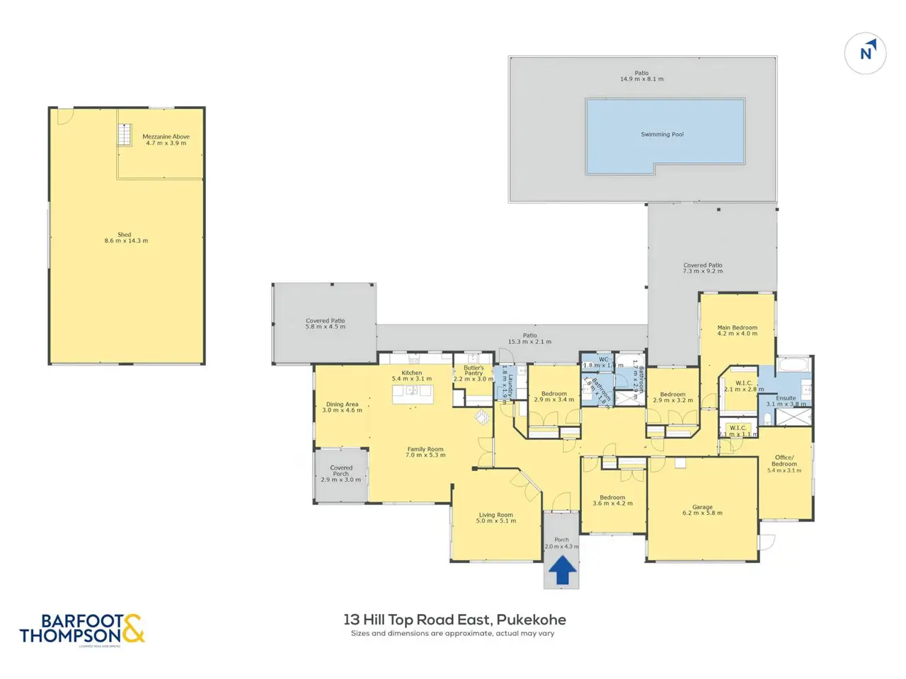 A long concrete driveway leads past the loading ramp and 130 square metre (approx) shed to expansive parking for myriad extra vehicles and entry to this 309 square metre (approx) brick with metal tile roof home located on 7975 square metres (1.9706 acres) of land with distant views to Port Waikato. Double doors off the entry foyer access a stylish lounge room which flows into sun-drenched open plan family living with both heat pump and wood-burning fire, entered also from a second set of double doors in the foyer. Sliding stacker doors spill out to scenic leisure and entertaining on two north-facing covered patios, one luxuriously equipped with café blinds and a large bubbling spa adjoining fully fenced fibreglass salt water pool with solar heating, pool robot and roller cover. There’s yet another covered al fresco area to enjoy off the dining and family rooms. Carpet morphs to large easy-care tiles in the streamlined dream kitchen with impressive cabinetry, engineered stone benchtops, quality appliances, island breakfast bar with pendant lighting and butler’s pantry with a second sink and dishwasher. Plantation shutters dress windows here while drapes adorn the spacious living areas. Off the hallway there are numerous storage cupboards and a laundry, also with built-in storage and outdoor access. Bedrooms are plentiful here – five in all, including the master with both fan and heat pump, walk in wardrobe, ensuite with bath and fully tiled shower and a sliding door out to the poolside patio and bubbling bliss in the spa. Three of the remaining four bedrooms have built-in robes, one has a heat pump and another, doubling as a large home office, boasts a walk-in robe. Placed between the bedrooms, a family bathroom is cleverly divided into three separate zones - vanity, toilet and bath and shower, conveniently facilitating individual use. The hallway also offers access to the double lock up garage with marine carpet and storage. Outdoors the fabulous 130 square metre (approx) Aztec high stud concrete floored shed features two 4m roller doors plus small door, a mezzanine floor, work benches and 3 phase power. There are 2 paddocks, yards and a loading ramp water tanks and plentiful hard stand parking for all manner of vehicles. Location is excellent, within 5kms to Pukekohe Township and community facilities and close proximity to numerous reputable schools. This brilliantly equipped super-spacious indoor/outdoor entertainer has it all! Our vendors have plans in motion and are keen to sell so bring the family and inspect soon. Excellently presented ultra-spacious 309m2 (approx) brick residence Concrete driveway & expansive parking/hardstand parking Tranquil countryside views & distant Port Waikato glimpses HRV system. Alarm system. 3 heat pumps Sunlit lounge & open plan family living both off foyer entry Family living/wood-burning fire & heat pump. Stylish dining Superb large excellently equipped kitchen + butler’s pantry Sliding & stacker doors out to scenic al fresco entertaining Several covered north-facing patios/café blinds & large spa Fenced solar heated salt water pool. Roller cover Abundant hallway storage. Laundry with outdoor access Cleverly designed 3 zone family bathroom/bath & shower 4 light spacious bedrooms, 3 + built-in robes, 1 + walk in robe Master + fan, heat pump, walk-in robe, chic ensuite & patio Hallway access to double lock-up garage with marine carpet & storage Equipped 130 sqm (approx) Aztec high stud concrete floored shed Pool shed. Wood shed. Grassy children/pets play space Fully fenced property. 2 paddocks. Yards & loading ramp 2 x 30,000lts water tanks & filtration system. Garden shed Less than 5km to Pukekohe Township Township and community 12kms to Bombay Motorway. 42kms to Auckland Airport Zoned for Buckland school, Pukekohe High & Intermediate Auction: 177 King Street, Pukekohe (Branch Office) on Thursday 18 September 2025 at 2:00PM (unless sold prior)