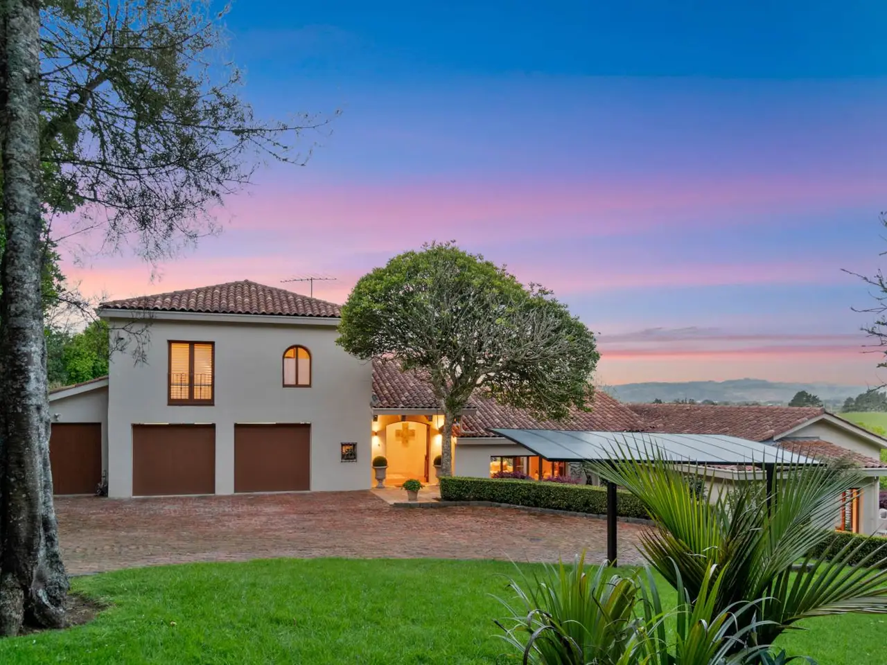 Privately tucked away at the end of a tree-lined brick driveway, this Italian-style Mediterranean villa feels like a secluded countryside retreat. Elevated with sweeping rural views, it offers the perfect balance of privacy, peacefulness and convenience just minutes from the Drury off-ramp. North facing and surrounded by a beautiful stand of native bush, landscaped gardens, and a large fenced paddock on 2.3 hectares, this light-filled home offers timeless architectural character and exceptional year-round comfort. Thoughtful details from hand-carved front doors and wooden shutters to recycled native timbers and handmade Spanish floor tiles - add rich layers of story and style. The open-plan living and dining area features an open fireplace and soaring sarked ceilings. Oversized bifolds and French doors open to an all-season entertaining area complete with outdoor fireplace, fountain, and a heated pool. The morning sun floods the country-style kitchen, which blends rustic charm with modern convenience. French doors open to a peaceful patio, while a sunny window seat invites you to linger indoors and soak in the view — the perfect spot for an afternoon of reading. The master suite is a peaceful retreat with wonderful views, a walk-in wardrobe, and an ensuite that includes a bathtub positioned to overlook the landscape. Upstairs, two generous bedrooms sit privately at the far end of the home, sharing a landing and large bathroom. One bedroom opens to a Juliet balcony, and both enjoy rural outlooks. There’s excellent flexibility too - a fourth room on the entry level serves well as a home office or media room. Key features include: • A very private & peaceful property on 2.3 ha (5.7 acres) • A recycled brick driveway leads you to the home through a magnificent stand Puriri & Totara trees • North facing 320 sqm Italian inspired villa • Exceptional craftsmanship throughout the home • Italian tiled floors and exposed timber beams characterise many parts of the home • Country style kitchen with open plan dining, bay windows with seating and great views • A substantial separate lounge with open fireplace and dining • Three bedrooms, 2 bathrooms, separate WC • Flexible fourth room - perfect as a home office, media room or 4th bedroom • Three car garaging, gated entrance • Heated pool and outdoor Tuscan-style entertaining area with fireplace • Surrounded by beautiful native bush, and bird song • Mediterranean influences with a wonderfully laid-back ambience Beautifully maintained and refreshed throughout, this is an authentic lifestyle property where space, design, and setting come together. It’s a timeless escape with all the charm of a European retreat. Just minutes from Pukekohe township, and similar distance to the Drury motorway interchange and the developing satellite city of Drury. Come and view, you won't want to leave!