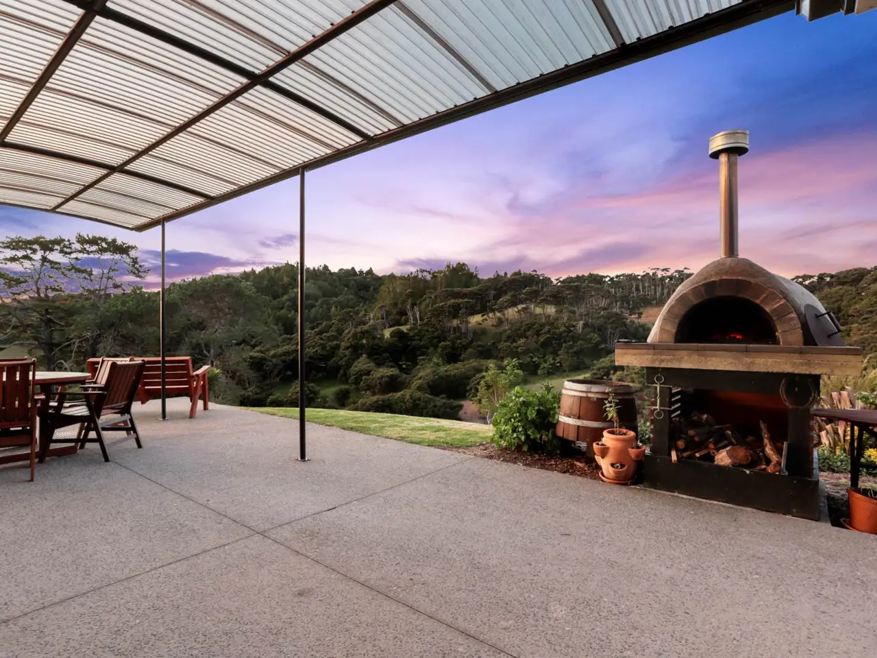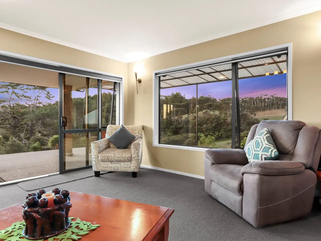 Seeking extended family living in an idyllic natural setting that chimes to the daily birdsong of Tuis & native birdlife? This contemporary 354m2 residence provides the benefit of two separate homes, offering independence & space. The main dwelling suitable for a large family is complimented with asecond (attached) minor dwelling. Perfect as a home & rental also.Enjoy modern living conveniences & sustainable living off the land, growing organic fruit & vegetables with fresh eggs for breakfast & reduce your monthly power bills, thanks to solarpower. Set on a serenely private one hectare – fully fenced, 2.5 acre wonderland, you’ll enjoy stunningly scenic panoramic views. The pad’s in place awaiting your spa pool & the outdoor pizza oven is ready for gourmet pizza! A hidden dog fence provides pet security peace of mind also.The seamless floorplan successfully merges single level living across the two homes.Primary residence:Four bedrooms including master bedroom suite, en-suite bathroom, walk in robe plus three double bedrooms & family bathroom. The open plan kitchen, living & dining room is anentertainer’s joy with plentiful space, showcased by panoramic views from all angles. An adjoining second living room is the perfect place for kicking back & relaxing in the evening. Access to the Archgola covered patio off the living is seamless for supreme outdoor living & alfresco dining.Secondary residence:One bedroom plus study: Includes master & study suitable as home office, open plan dining, kitchen & living with main bathroom. An Archgola covered patio accesses off the masterfor easy outdoor living.Located only 20 minutes from Silverdale and Westgate. Inspect today!