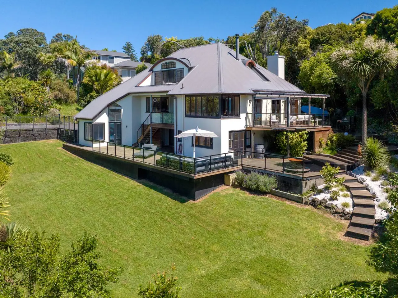 Boasting mesmerising Gulf vistas and access to Karaka Bay beach below, this parklike property is an awesome harbourside retreat in a peaceful world of its own. The 4-bedroom home designed by Michael Thomson of Architectus - one of New Zealand's foremost, award-winning architectural practices - was built in a traditional crafted style in the 1980s. Although embraced by native bush, sunshine pours inside across large north-east and north-west-facing decks and terraces that spill onto an expansive lawn.With several staircases, the character-filled home is configured for separation between 4 bedrooms, 2 large offices and 3 living areas (plus 3 bathrooms). In summer, enjoy the fantastic indoor-outdoor flow. In winter, a spacious sitting room invites you to cosy up to the warmth of an open fire and a log burner keeps the large dining room snug.A fitted wine cellar on the lower-level links 2 substantial bedrooms and a bathroom. From the adjacent sunroom, you can sit and soak up the sounds of birdsong and water lapping on the shore below. The primary suite is a generous sanctuary on high complete with dressing room and en suite plus a huge home office and ample storage. Practicalities include double internal garaging, a full laundry and internal wood storage.Providing scope to improve or develop, this is an enticing rare opportunity. Escape the hubbub to embrace the relaxed coastal lifestyle with all city amenities handy including top schools - zoned for Churchill Park School and Glendowie College.