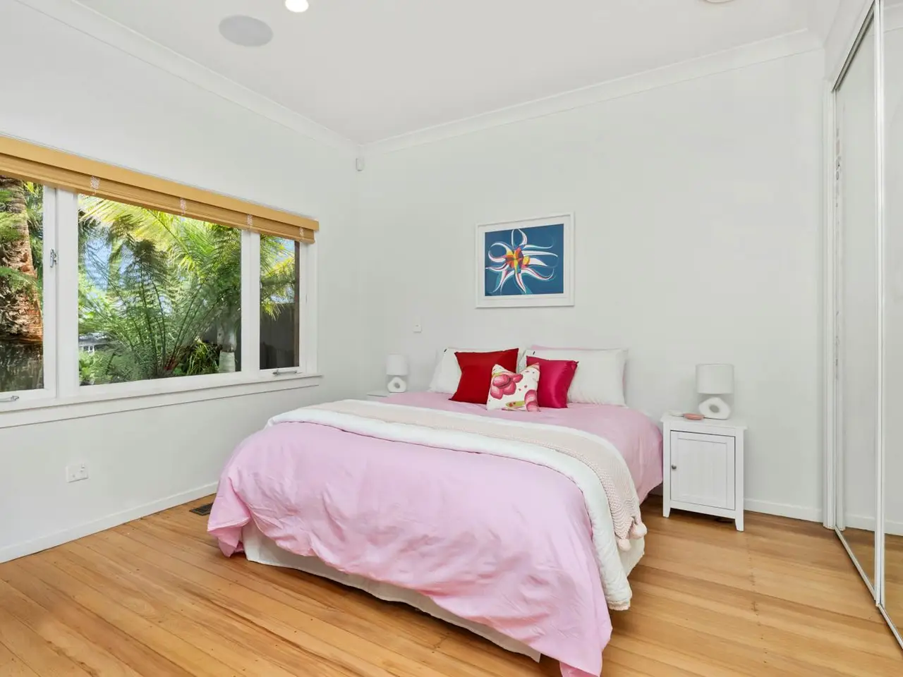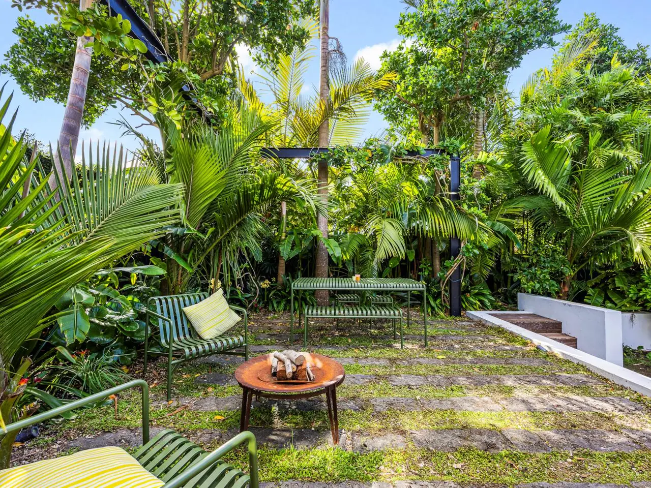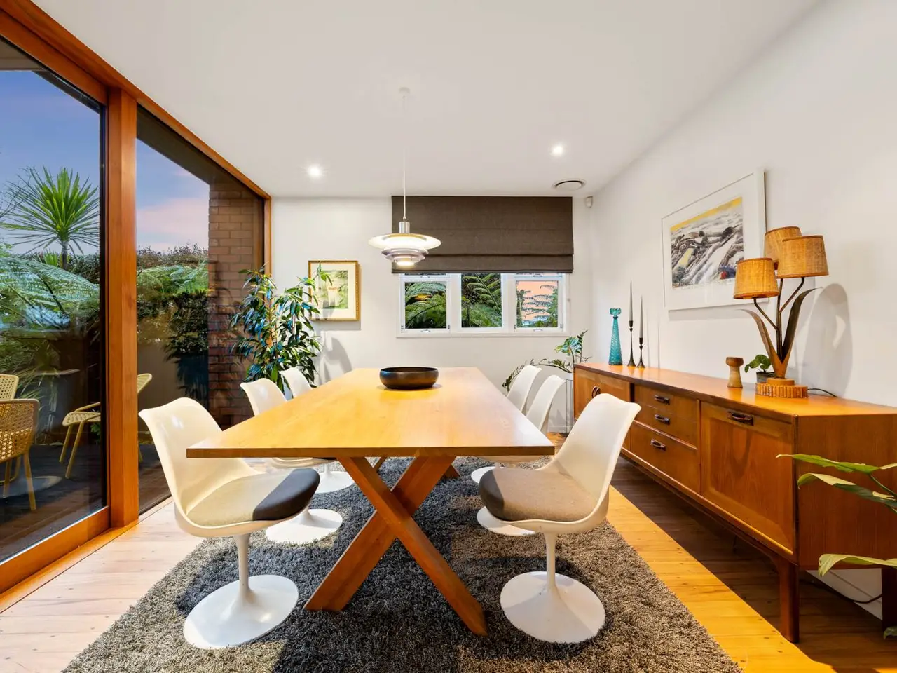 Sunlit deck overlooking private landscaped garden