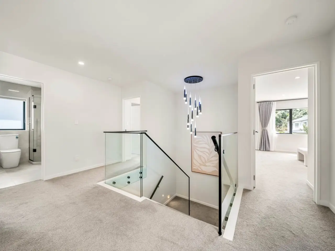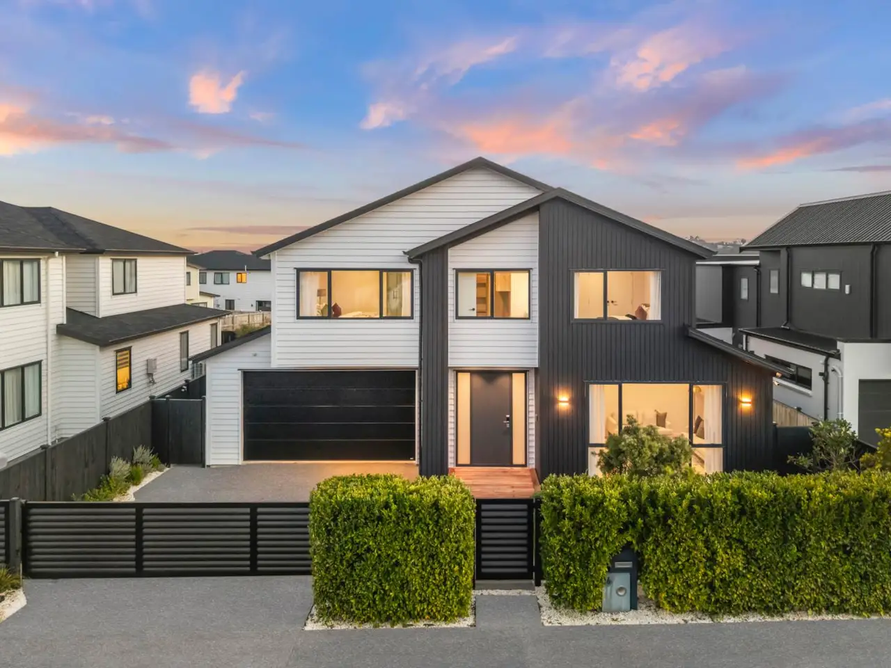 Set on a generous 474m² (approx.) freehold section with an impressive 320m² (approx.) floor area, this contemporary masterpiece is positioned in one of Long Bay’s most desirable streets. Just minutes from the beach, top-rated schools, and vibrant local amenities, it offers the perfect balance of convenience, privacy, and lifestyle. Highlights: • Five bedrooms plus a study room, five bathrooms plus a separate guest toilet – Each bedroom is designed as a private retreat, complemented by spa-inspired bathrooms with premium fittings and elegant detail. • Seamless indoor-outdoor Living – Expansive open-plan living flows effortlessly to a fully enclosed all-weather outdoor entertaining area, creating the ideal space for gatherings, dining, or simply unwinding year-round. • Gourmet kitchen + butler’s kitchen – A true chef’s haven with top-of-the-line appliances, sleek finishes, and a thoughtfully designed layout for effortless entertaining. • Double garage & private courtyard – Secure internal-access garaging, paired with a fully fenced, independent courtyard that offers both privacy and peace of mind. Every corner of this residence reflects meticulous craftsmanship and modern elegance. Whether entertaining on a grand scale or enjoying quiet family evenings, this home provides a lifestyle defined by comfort and sophistication. Here, every day feels like a luxurious retreat, offering exclusivity and serenity in a thriving community. This is more than a home — it’s your private coastal haven. Contact us today to arrange your exclusive viewing. Auction: 8-12 The Promenade, Takapuna on Thursday 16 October 2025 at 10:00AM (unless sold prior)