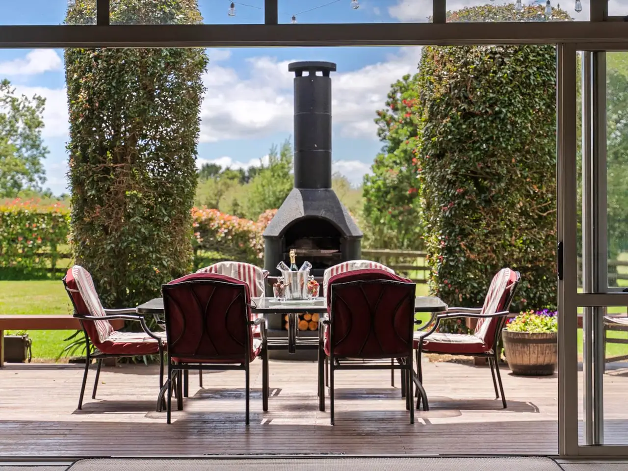 Expansive timber decks with outdoor fire
