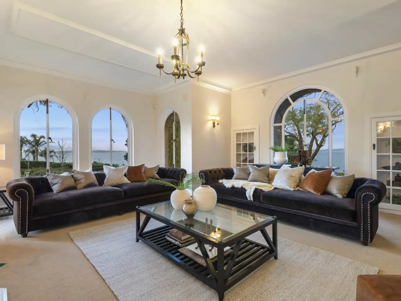 Set across an impressive 11,831 sqm (nearly 3 acres) of mostly level land, this unique holding enjoys direct water access and riparian rights, nestled just a short three-minute stroll from the beach.At its heart stands a distinguished Neo-Georgian residence, originally built in 1937 using solid double-brick and concrete tile. Thoughtfully designed for elegant living, the home features grand living spaces that open seamlessly to expansive lawns, mature gardens, and what was once a private tennis court.The striking curved steel windows and doors flood the interior with natural light and evoke timeless European charm. The main home offers four upstairs bedrooms—each enjoying sea views—along with two bathrooms, a formal lounge, and a separate butler’s kitchen. A former garage has been thoughtfully repurposed into a work-from-home space and additional accommodation.Two separate dwellings offer further living flexibility:• On the eastern boundary, a spacious auxiliary building accommodatesmultiple living zones, kitchens, bedrooms, and bathrooms — ideal forextended family or guests.• To the west, a multi-room dormitory wing is currently configured as a six-bedroom lodge with a large communal hall.A gently winding path at the edge of the garden leads to a quiet, hidden cove below — a rare coastal retreat offering complete seclusion. Whether you’re looking to create a generational family sanctuary, explore future development or subdivision potential (subject to council approval), or simply secure one of Mellons Bay’s most iconic parcels, this property presents endless opportunity. Zoned for Macleans College, Bucklands Beach Intermediate, Mellons Bay School.The privilege of ownership is now yours to pursue. Private viewings available by appointment.