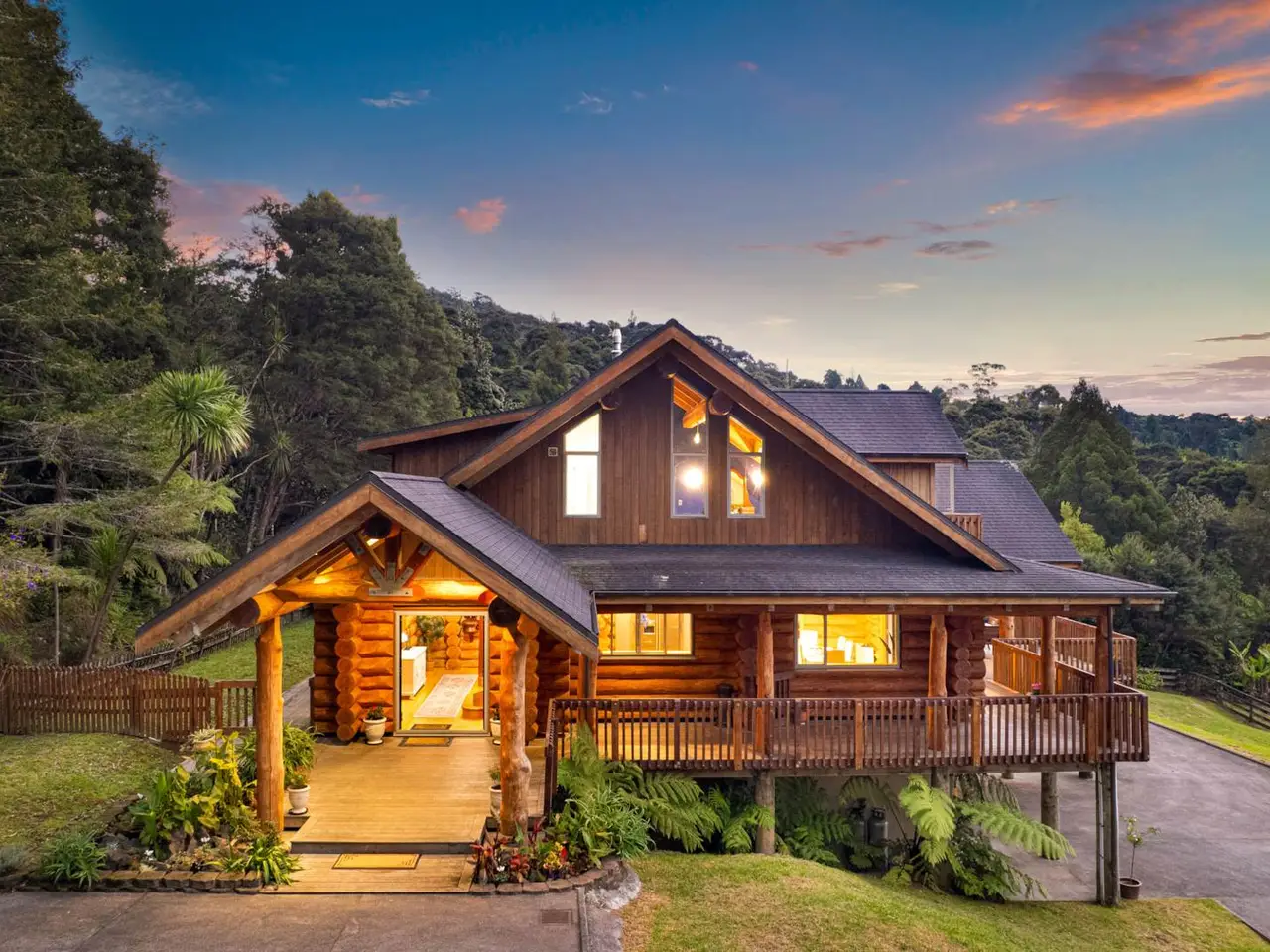 Everyday resort style living! Hand built by Master Craftsmen, this supremely appointed Grand Mountain Chalet residence exudes charm, delighting all with its luxurious comfort, undeniable warmth, stately presence & timeless iconic character. Serenely located in Oratia’s foothills on 11 acres of forest & pasture, exquisite privacy complimented by blissfully peaceful birdsong is a daily pleasure.Massive in scale, this home suits extended/multi-generational family living. Stylish entertaining is on a lavish scale. A masterclass of artisanal crafted log home architecture, the Chalet showcases the finest quality NZ grown Douglas Fir log timber & construction methods, inspired by the luxury alpine lodges of Europe’s famous ski resorts. Facing true north, the Chalet’s aspect captures spectacular rural views & enjoys all day sunshine.The Land: 11 acres includes 4 x fully fenced Grazing Paddocks, large Fruit Tree Orchard, Native Forest & Outbuildings including Hen Houses, Stable & Wood Shed.The Chalet: Nearly 500 sqm2 of living space over 3 x levels, plus 100+ sqm2 of outdoor decking. Included is a 60 sqm2 two Bedroom Sleepout, for accommodating family/friends (requires Council CCC consent & some TLC).Ground Floor: Apartment living suitable for Air B&B income or teenagers/parents. Includes 1 x Double Bedroom/Living with underfloor heating, Bathroom with UFH, Toilet & (potential) Kitchenette/Dining room option, separate Laundry/Storage, large Games/Living room/5th Bedroom & internal access single car Garage.Mid Floor: Open plan Kitchen/Dining accessing outdoors, solid timber flooring, Family Living showcasing Architectural 6m+ high Cathedral Ceiling, exposed Log Truss & triple Skylight Windows, work from home Office, 1 x Double Bedroom, Bathroom with UFH & Toilet.Upper Floor: Newly carpeted Mezzanine Lounge, 2 x Master Bedroom Suites with Decks & 2 x En-suite Bathrooms with UFH, including Luxury Spa Bath & 1 x Walk in Robe. Location is minutes away from local trains/public transport, nearby Glen Eden retail shopping & Piha surf beach. Sold by Auction if not sold prior!