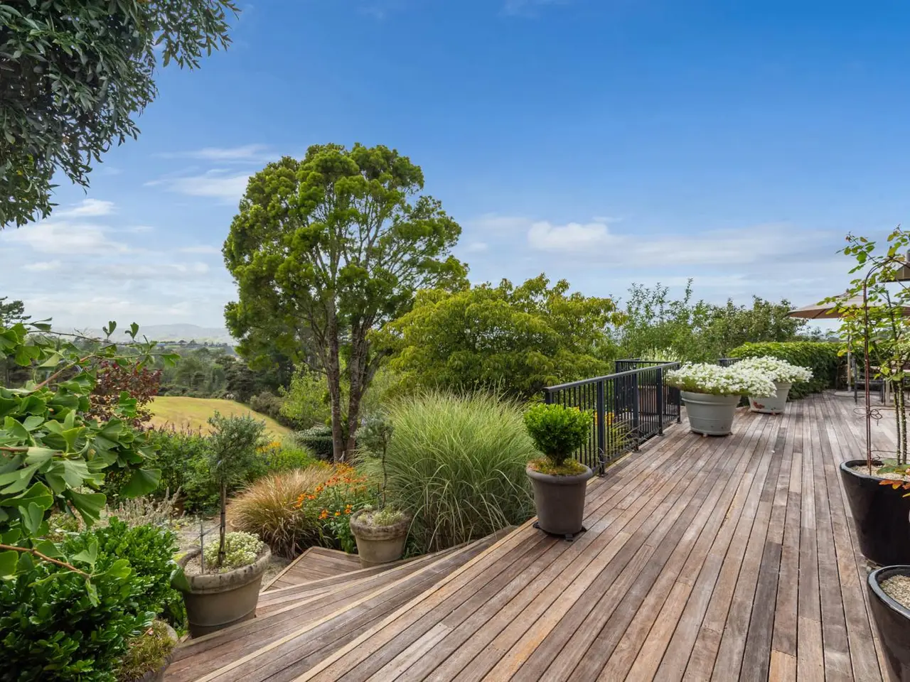 This stunning residence is a masterpiece created by its owners, both skilled landscapers and designers. Just 30 minutes from the CBD, this private sanctuary showcases meticulously landscaped gardens with a charming potting shed and lush vegetable patches. The orchard is a true treasure trove, yielding olives, avocados, pears, persimmons, figs, stone fruit, citrus and more.A large shed with access from a separate driveway and an impressive walk-in storage area beneath the house provides ample room for passion projects, wine collections, or creative pursuits.Inspired by European elegance as if lifted from the pages of English House and Garden, the residence has three bedrooms, an office and multiple living and dining spaces, each brimming with timeless charm.Designed with seamless indoor-outdoor flow, the home’s decks are equipped with electric awnings, offering breathtaking panoramic views of green fields and valleys stretching to the Auckland skyline. The entertainer’s kitchen is a dream, with a granite-covered island, bi-fold windows that open to an outdoor breakfast bar, and a large terrace adorned with topiary plants, lush greenery, and ambient lighting—a perfect setting for gatherings with family and friends.Whether you’re cosy by the wood fire in winter or enjoying the expansive outdoor spaces in summer, this property captivates at every turn. Be quick to view—this exceptional home won’t be on the market for long.
