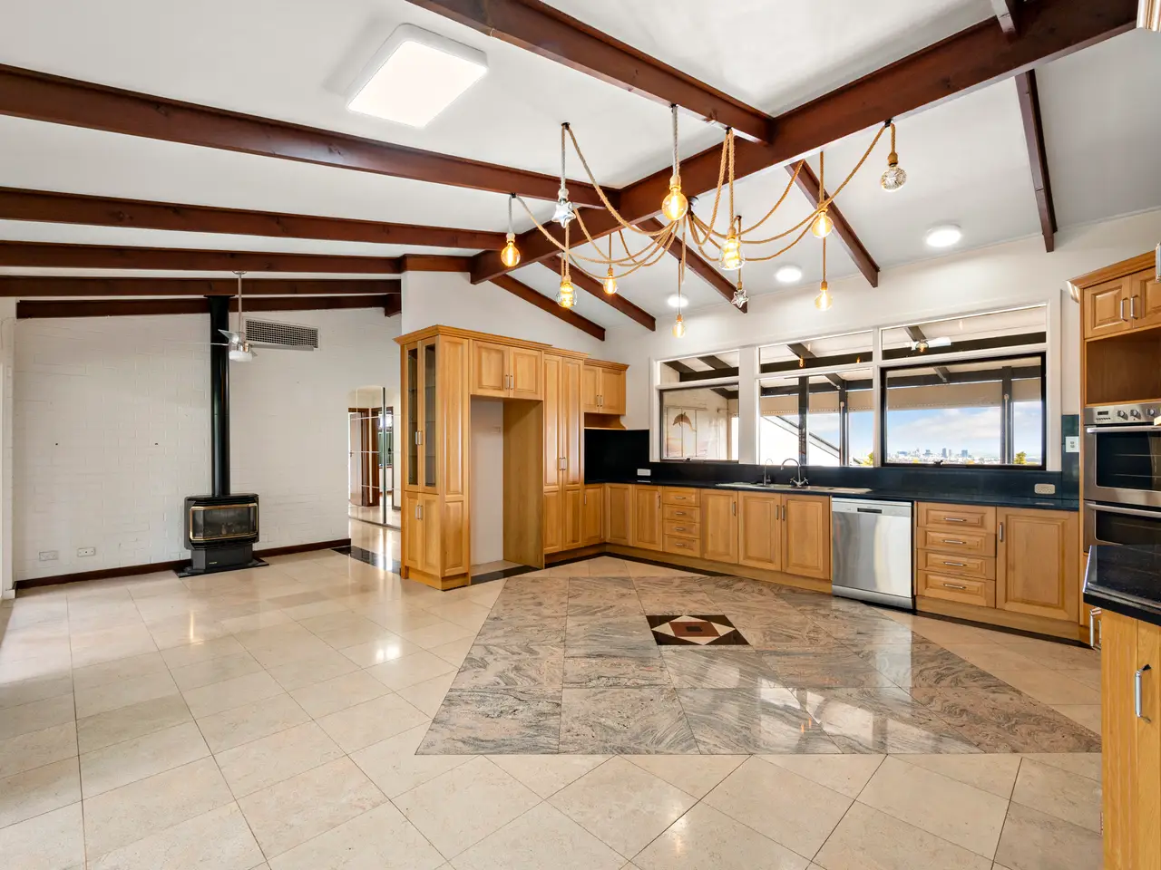 This four-to-five-bedroom C.1973 property takes everyday family life and makes it infinitely more special as it captures simply sensational views from the pinnacle of The Parade. Designed to bask in the beauty of those spectacular outlooks from as many as five balconies, a versatile floorplan spans 416sqm and three levels… a solid home of significant stature that will win the attention of upsizers, large families and eagle-eyed renovators. Tributes to timeless mid-seventies luxury are depicted by gleaming parquetry floors, fully tiled bathrooms with stone tops, and a solid timber kitchen also featuring stone benchtops but mastering modern functionality through stainless appliances. The first floor is a dedicated master-bed sanctuary with a full width private balcony introducing golden sunset views across the treetops, while character elements include exposed timber beams and a luxe ensuite along with a spacious walk-in robe. The uppermost level is for living your best family life: a supersized kitchen and dining room blessed with more of those breathtaking views while seamlessly connected to the spacious living room with balcony access. Directly below is a similarly-styled rumpus room or another bedroom if you need, while more notable components include a home cinema, a spa room and a sparkling inground swimming pool beautifully nestled amidst the landscaped rockery garden. - 1500sqm hillside allotment (approximately) with exceptional views - Huge 4-5 bedroom solid seventies home with renovation prospects - Double garage with storage space and internal home access - Abundant driveway parking - Formal entry hallway at ground level - Ground floor rumpus room, home cinema, fourth bedroom, laundry and w/c - Spacious first floor master bed sanctuary: balcony, ensuite, walk-in robe - 2nd floor open plan kitchen, living and dining with balcony access to stunning views - Big timber kitchen: feature floor tiling, beautiful views, stainless appliances - Fully tiled bathroom and two bedrooms on the 2nd floor - Air conditioning and two ceiling fans - Exposed timber beams and cosy combustion heater adding character and warmth - West-facing main balcony includes roller shutters - Wide alfresco at the rear with access to the spa bathroom - Landscaped gardens, outdoor living, inground pool - Short drive down The Parade to the dining & shopping precinct - Nearby local shopping at Wattle Park, Erindale, Magill - Zoned Magill Primary School and Norwood International High School - Close to Pembroke School, Rostrevor College, St Peters Girls School RLA 285309