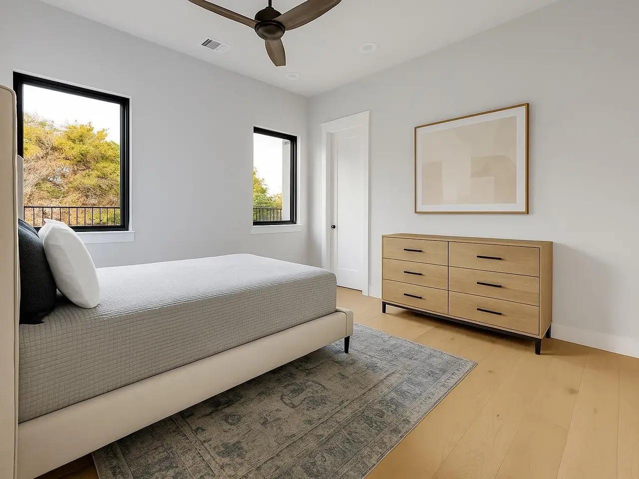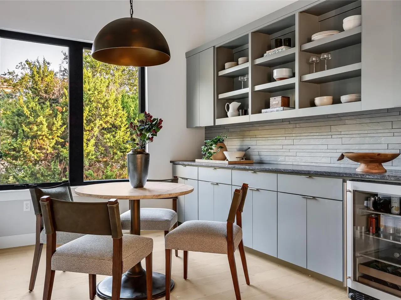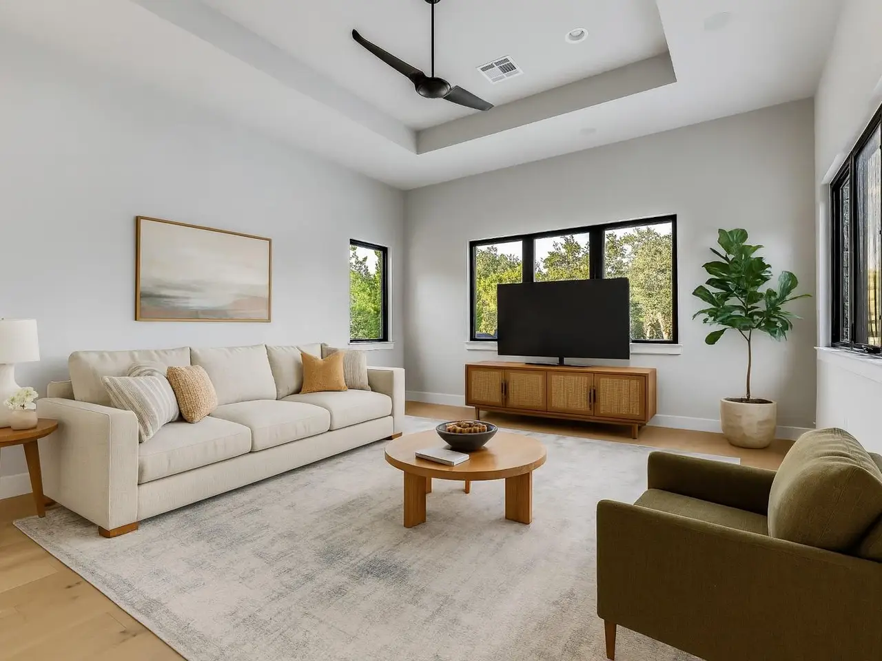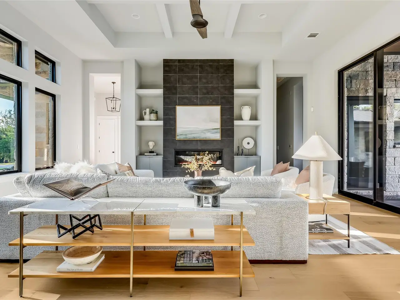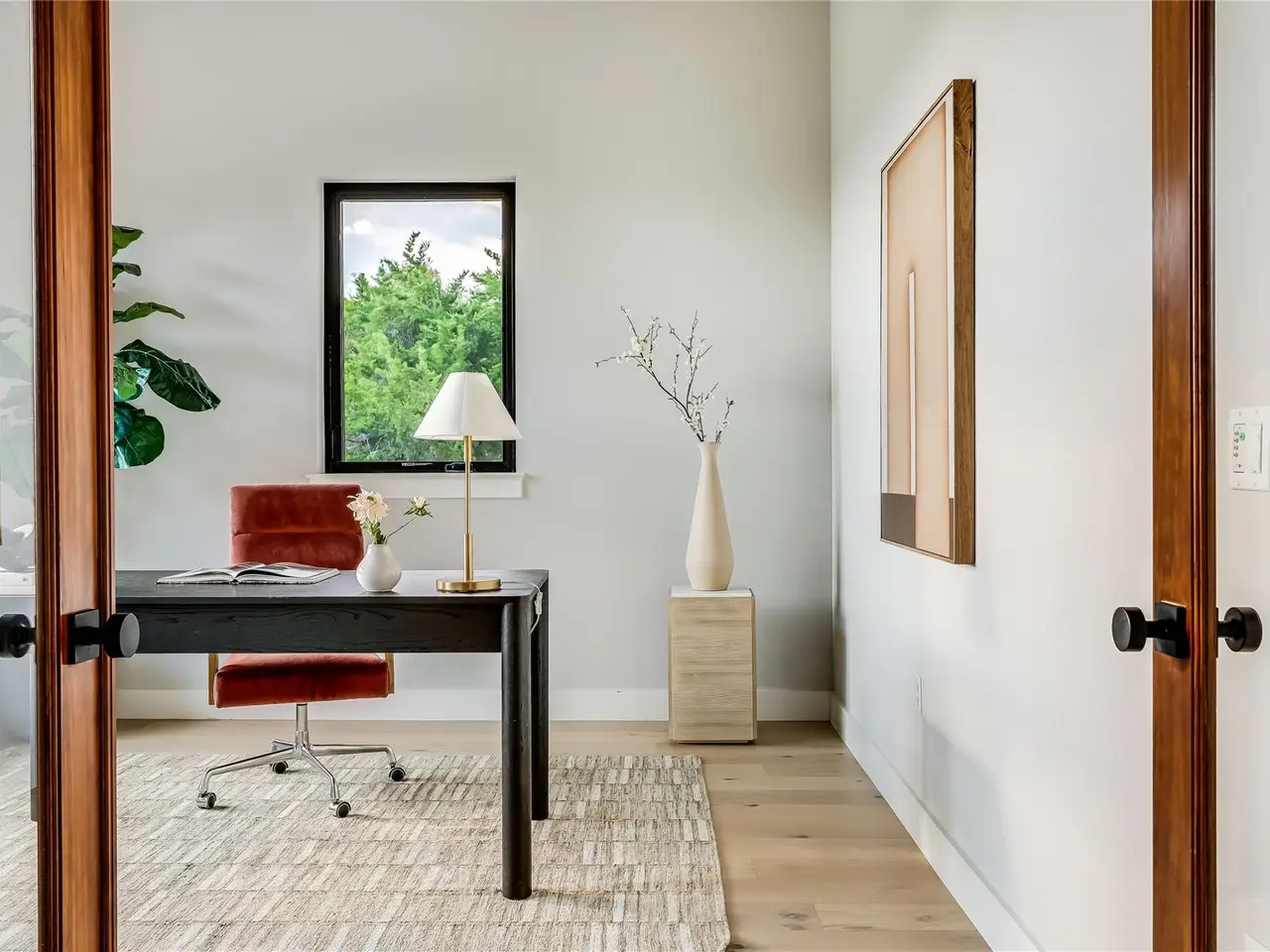 Beautifully Refreshed - With new wood floors, updated bathroom tile, fresh paint, and more! This modern single-story residence in the coveted Meridian community by Nalle Homes combines thoughtful architecture with refined craftsmanship for elevated indoor-outdoor living. A rare lot spanning both Hays and Travis counties provides families with unique flexibility and options for schools--an incredible advantage in addition to custom luxury and lifestyle. The distinctive U-shaped floor plan creates two private wings housing 4 spacious bedrooms, ensuring tranquility for both owners and guests. Expansive sliding glass doors frame views of the resort-style backyard oasis, featuring an oversized heated pool and spa designed by Athena Pools--perfect for both sun-drenched days and starlit evenings. Inside, versatile living spaces flow seamlessly from the study with stained French doors to the airy great room designed for gathering. The chef's kitchen stands as the heart of the home, showcasing Thermador appliances, granite counters, and a sculptural honed marble island that invites both conversation and culinary creativity. Sophisticated enhancements include tinted Andersen 100 windows, a whole-house water softener and filtration system, a central vacuum, and a soundproofed media room that doubles as an additional office or bedroom for evolving needs. The oversized three-car garage features epoxy flooring and built-in storage by Garage Experts, while a fully finished private studio--climate-controlled and fully wired--offers space for creativity or work. The outdoor experience continues with a built-in grilling station featuring a Napoleon grill, a mini-fridge, and a Big Green Egg smoker, all set against lush landscaping with greenbelt views. Located just 15 minutes from downtown Austin within the Meridian master-planned community, residents also enjoy access to a private 10-acre lake, community pool, and walking trails.