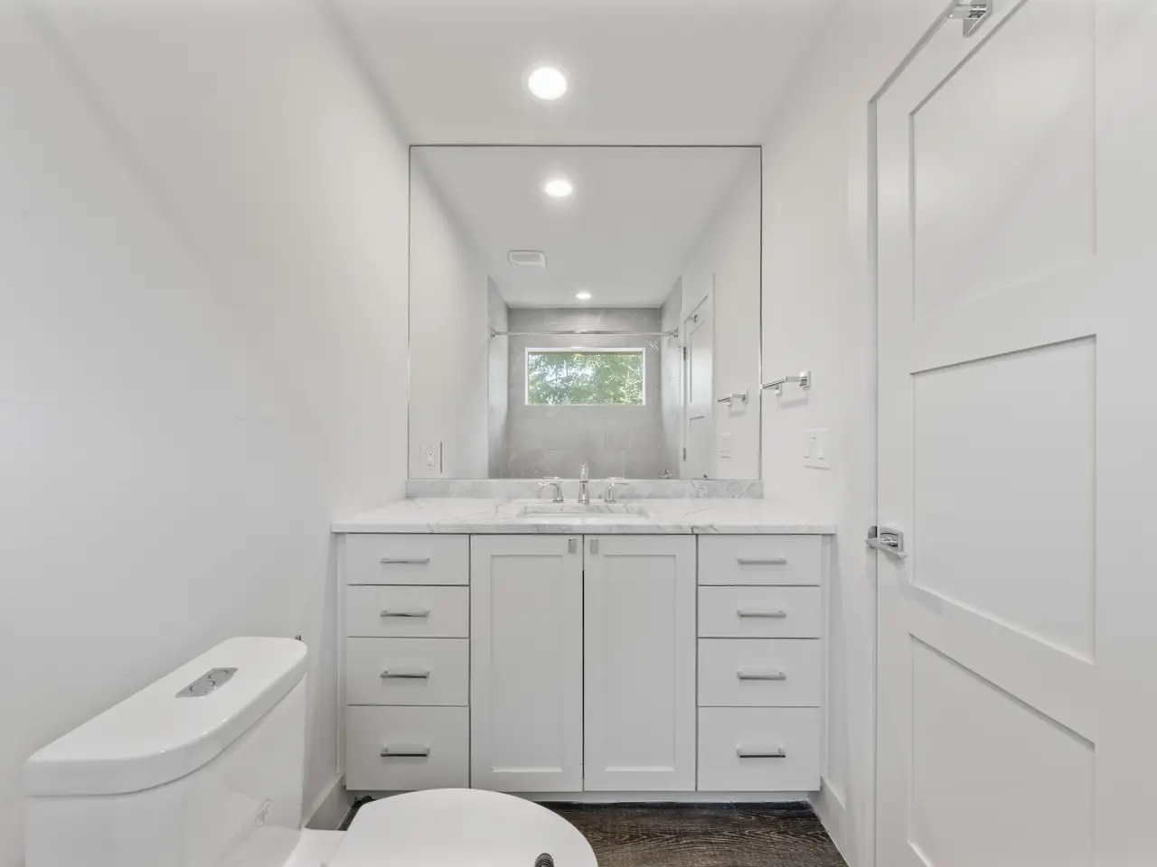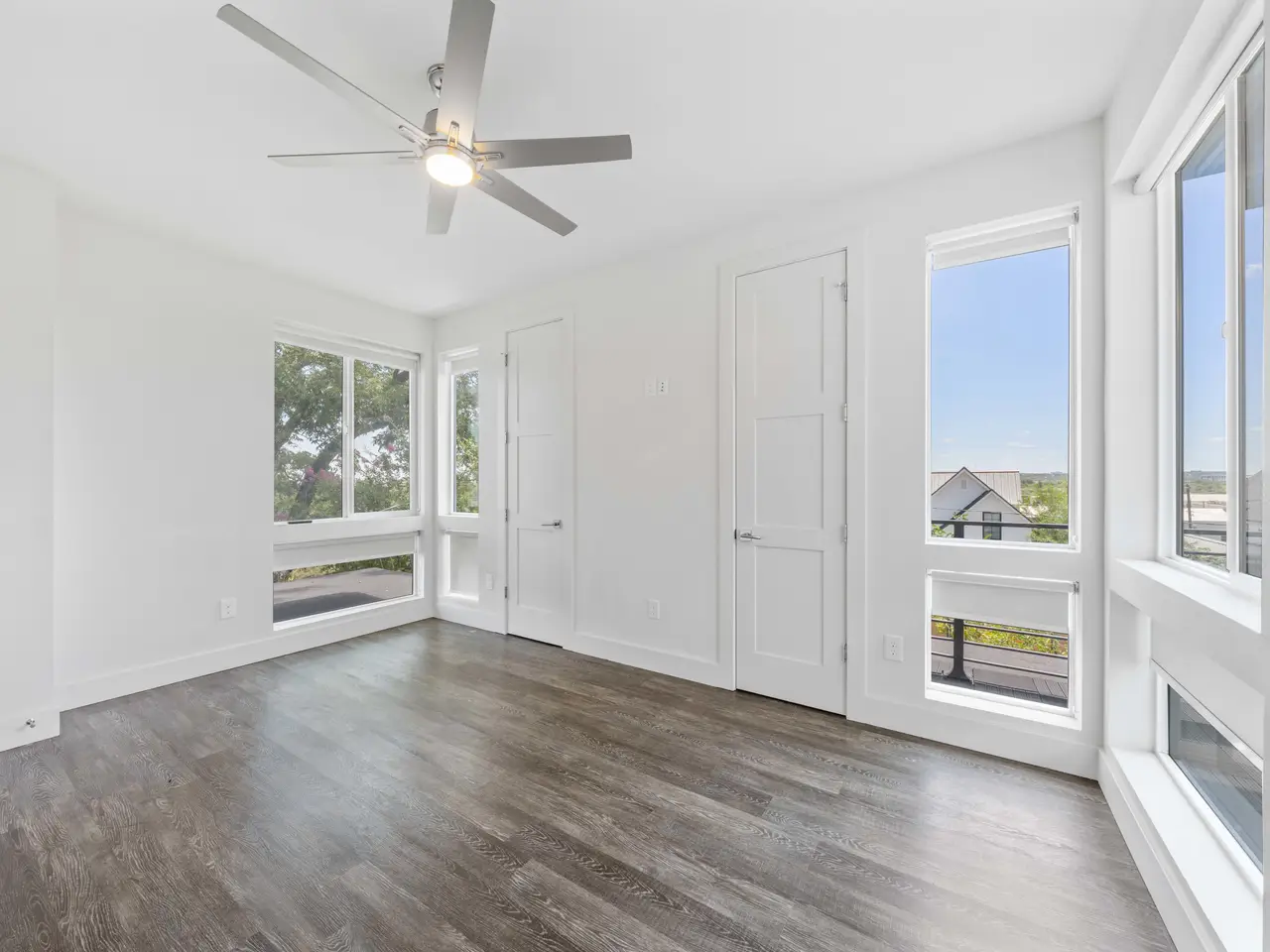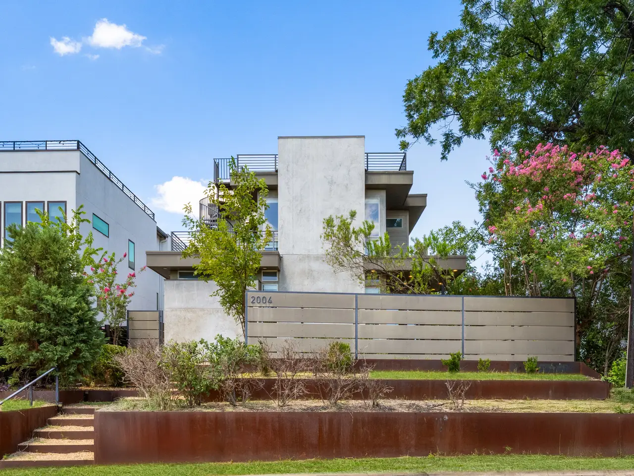 Modern luxury in the heart of East Austin! This 3 bed, 2.5 bath architectural gem offers 2,096 square feet of stylish living space, high ceilings, floor to ceiling windows, and an open-concept design. The gourmet kitchen features a waterfall island, custom cabinetry and premium appliances. A designer glass tile backsplash and sophisticated lighting solutions create an atmosphere of refined modernity, while the adjoining dining area, crowned with a crystal pendant chandelier, offers the perfect setting for elegant entertaining. The primary suite stuns with a spa-style wet room, marble double vanity, and oversized walk-in closet. Upstairs there are 2 bedrooms with views of downtown, a full bathroom, plus additional flex area that can be used as office space or additional living area. This home has multiple outdoor living spaces where you can unwind privately in the lush courtyard, under the covered patios, or take the spiral staircase up to the third story terrace for the beautiful panoramic views of the Austin skyline. The detached climate-controlled garage includes a full guest suite above (an additional 711 sqft) that is perfect for rental income, multigenerational living, or a private home office. This vibrant East Austin address sits in an educational hub, just moments away from the historical Houston-Tilloston University and minutes from the University of Texas at Austin campus. Walkable to highly rated shops, restaurants, coffee, and parks. A rare blend of elegance, flexibility, and location - don't miss this one! Property sold “As-is.” Buyer and/or buyer’s agent responsible for verifying all pertinent information deemed relevant by the prospective buyer, including but not limited to square footage, acreage, utilities, taxes, zoning, permitting, condition, school zones, HOAs, etc.