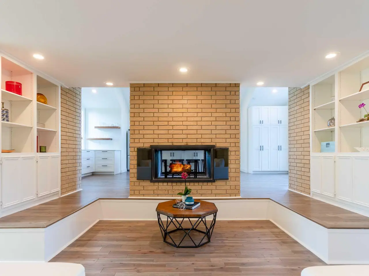 Two-story double-sided fireplace