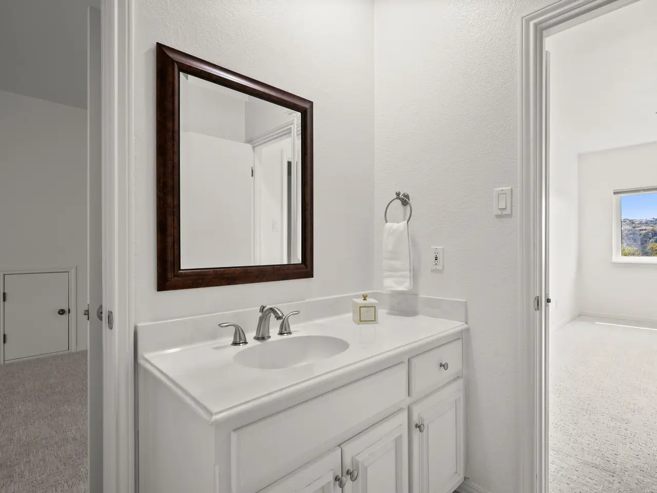 Tucked away in the hills of Cat Mountain, this spacious lock-and-leave residence offers easy living for the person on the move. Freshly painted throughout along with new carpet, guests are greeted with vaulted ceilings, hardwood floors, stone fireplace and a host bar ... making entertaining effortless. The updated kitchen is a culinary delight, equipped with stainless steel appliances and Silestone countertops, offering treetop views and easy access to the patio. The first floor features a private living quarters with a separate outdoor entrance, creating a versatile space perfect for a home office, studio, gym, guest suite, or private apartment, complete with a living area, bedroom and full bath - ideal as a potential ADU. This tranquil retreat showcases a new roof and is energy efficient with solar panels that will lower utility costs. Located in the desirable Northwest Hills and zoned for Doss Elementary, Murchison Middle, and Anderson High School, this home also provides convenient access to downtown Austin, The Domain, and top-rated shopping and dining. This property offers a community pool and an unbeatable combination of location, comfort and low-maintenance living while enjoying the beauty of the Texas Hill Country.