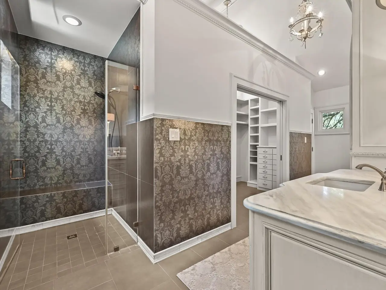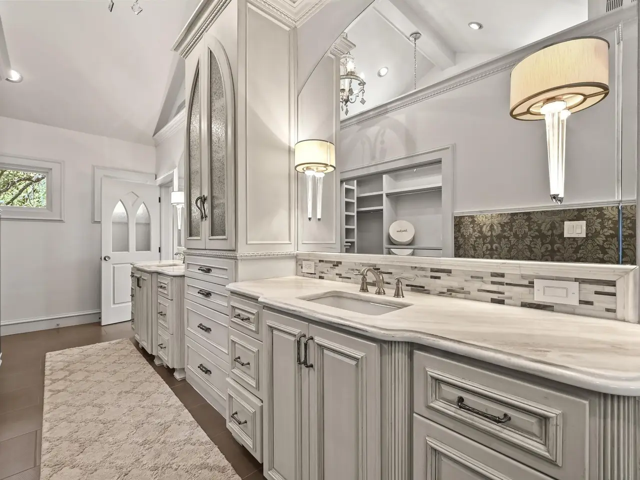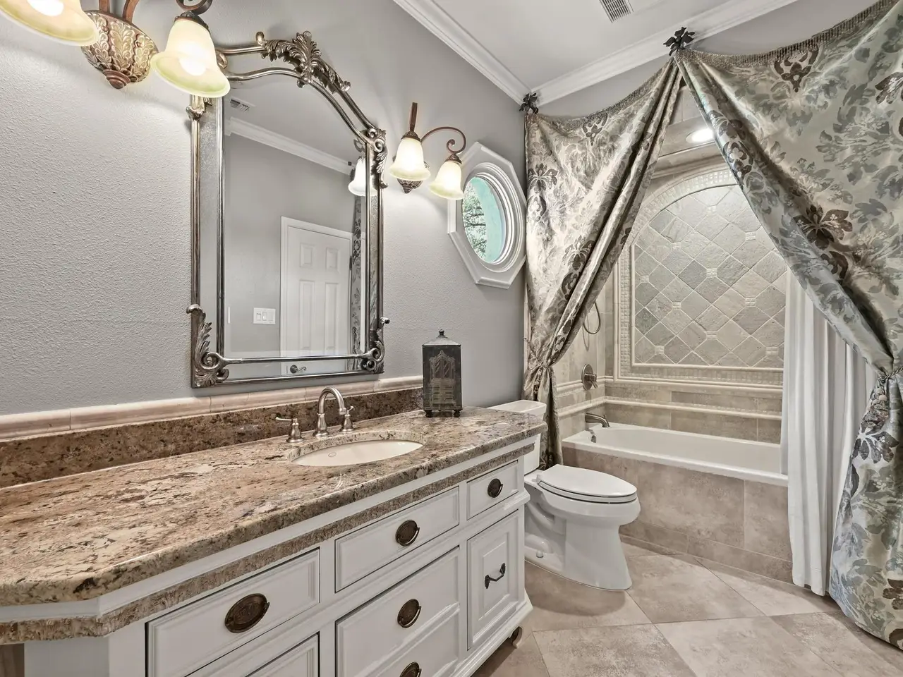 Built in 1982, this beautiful Traditional home has been thoughtfully updated. The slurred stone exterior radiates charm on the fully manicured .67 acre lot. Wood beams encase the front entrance porch and double glass doors. The entrance foyer opens to both the formal and informal living areas, providing easy flow through the downstairs. The formal dining room is adjacent to the formal living room. The newly remodeled kitchen has stainless appliances, a center island and plenty of counter space on the breakfast bar. The kitchen overlooks the covered back patio, pool and backyard. Enjoy an extra dining area off the kitchen. The informal living room has a wet bar with storage, overlooks the front yard, and is open to the kitchen and breakfast area. A delightful mud room adjoins the garage, providing 4 "cubbies", an extra refrigerator, ice maker, extra storage and exterior door to the pool. There is one secondary bedroom on the main level with a full bathroom. A primary suite was added over the garage several years ago with stunning windows overlooking a majestic treaty oak tree. The primary bathroom is a cozy retreat with double vanities, oversized shower and gorgeous walk in closet with built in cabinets. 3 additional bedrooms are located upstairs with one full bathroom. A large game room is also upstairs. The laundry room was added upstairs and is a dream come true! Tons on storage and plenty of counter space make this an ideal craft room as well. The backyard has a newly resurfaced and tiled pool and spa. The lot backs to a hillside, providing privacy and beautiful landscaping. West Rim HOA owns a park on Lake Austin within walking distance of the property. Homeowners enjoy a playscape, tennis court, basketball court, gazebo with grill, picnic area, day dock, kayak & paddle board storage and a 20 boat slip marina.