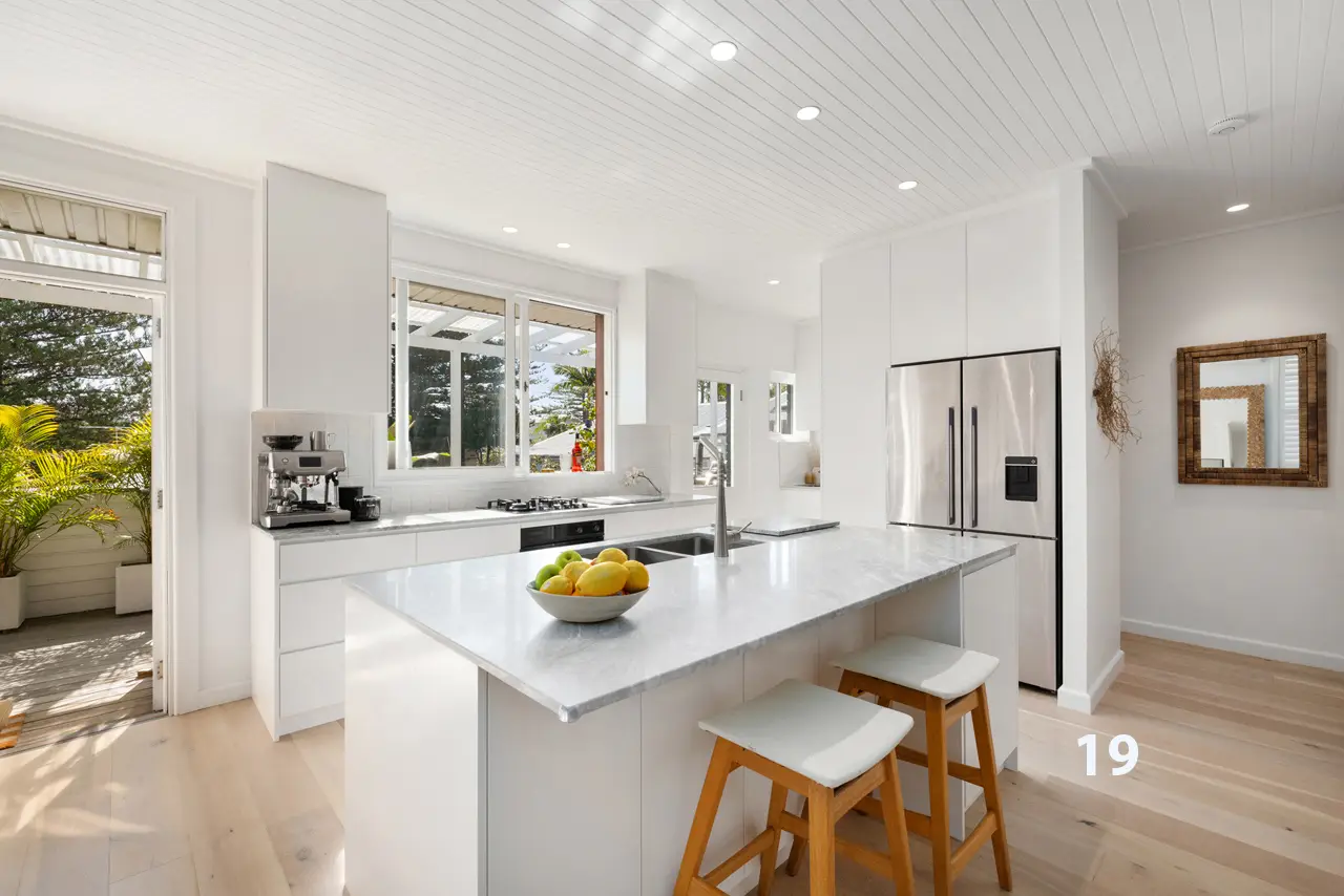 Completed just this year, the transformation of this property is simply astonishing; the creativity the design has created a wow-factor that's right off the charts. Now zoned for dual occupancy, there are two stunning homes on a single title, each one embracing a cool, beachside aesthetic to dazzling effect. Adding further appeal is the absolute privacy between the dwellings – it's been cleverly sited to provide each cottage with entirely separate entrances, lawns and gardens with views over the Norfolk Pines. Both homes are drenched with natural light; the interiors are impeccably curated, with the fresh neutral tones joined by a richly-textured material palette. There's an exceptional opportunity here for multi-generational living or shared ownership; the dual-occupancy also allows new owners to rent out one dwelling while living in the other, all in a prime North Avalon pocket. - Two chic beachside cottages, one title; perfect for shared ownership - Each feature private gardens with sheltered decks and level lawns - Both completed in 2024; open plan layouts and premium appointments - Ideal for extended families or as a passive income stream for buyers - Property is beautifully landscaped, affording privacy and greenery - Wide-plank oak floors, plantation shutters, R/C air conditioning - Dwelling 1 features a marble-topped kitchen with servery and French doors to the deck, three bedrooms, BIRs, luxe bathroom - Dwelling 2 includes a stone/induction kitchen, bifolds to the deck, two bedrooms, bathroom and a large, finished studio that can easily connect via a breezeway to the home, for additional living space, home office or detached 3rd bedroom - Clearly, its North Avalon's most versatile and stylish new offering Disclaimer: Whilst all care has been taken to ensure accuracy in the preparation of the particulars herein, no warranty can be given, and interested parties must rely on their own enquiries.