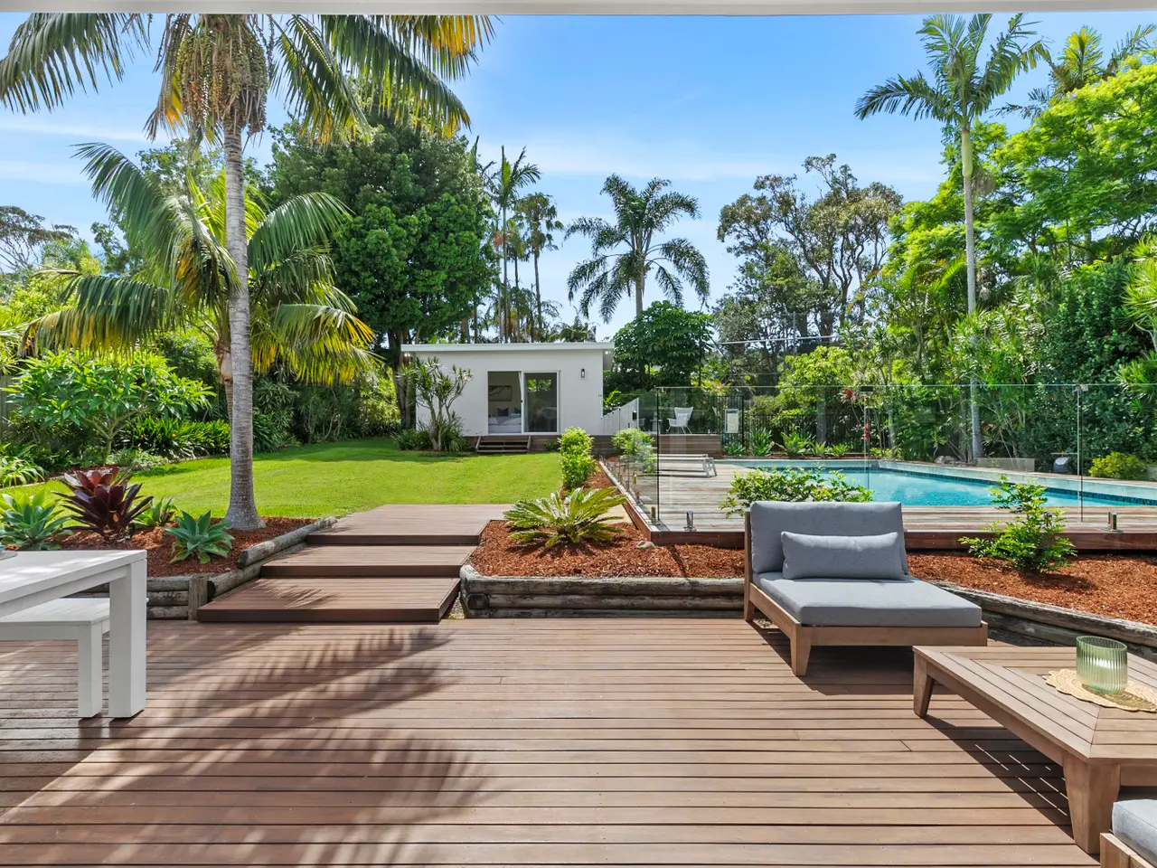 Expansive entertaining decks with saltwater pool