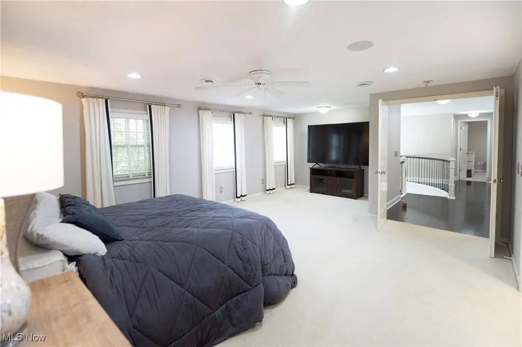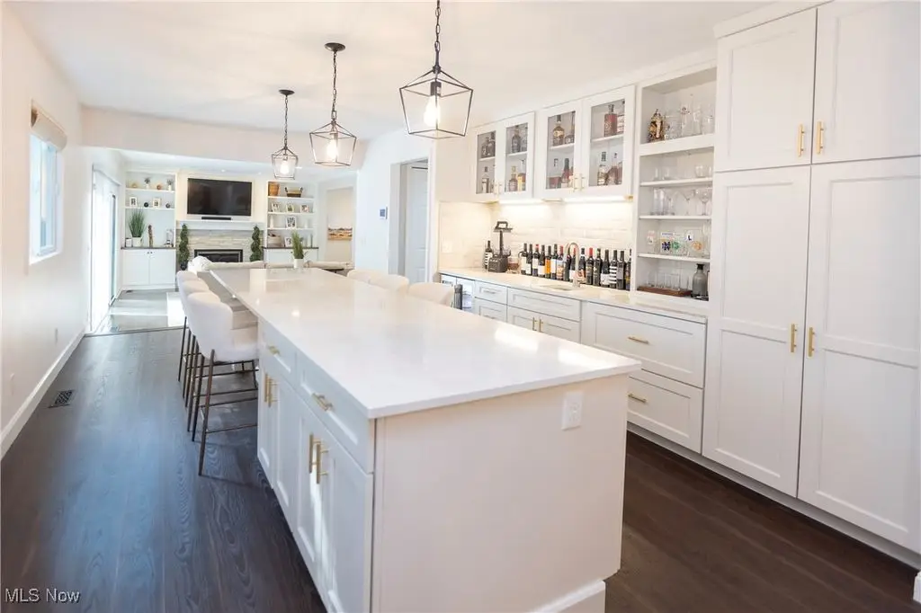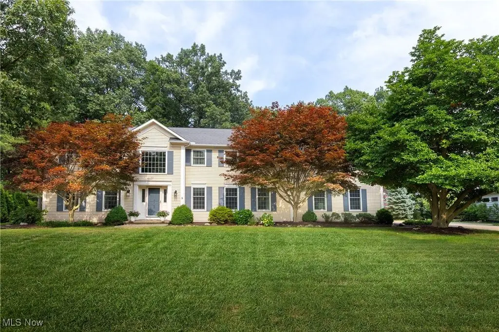 Perfectly situated in a park-like setting, this phenomenal Westwinds Colonial offers modern renovations including a dream kitchen, and unparalleled master wing addition! The two-story foyer greets you with a soaring entryway and focal circular staircase, and is flanked by the first of three home offices, and cozy formal dining room. The chef in your life will love the gourmet kitchen featuring new white cabinetry, quartz counters, two islands, stainless steel appliances including a Forno six burner gas range, and hardwood floors that flow throughout most of the first floor. There's also an expanded pantry, coffee bar, and stylish wet bar with custom cabinets. This opens beautifully to the remodeled family room. You'll love the gas fireplace with modern stone surround flanked by bright white built-ins, and four panel slider that lets the sunshine in and offers views of the stunning backyard! Also find a 1/2 bath and first floor laundry for convenience. Upstairs discover a master wing addition that is truly one of kind. The oversized bedroom and sitting room area open to a stylish bathroom with tiled shower, dual sinks, storage bench, and expansive walk-in closet! Next discover the executive office with vaulted ceilings, wood floors, rich built-ins and windows galore! An absolutely charming third office/craft/bonus room is found across the hall. Three additional large bedrooms share an updated hall bath with double sinks. The lower level features a Rec Room with durable NatureStone flooring, storage, and bath. Outside enjoy this expansive acre lot filled with serene landscaping that boasts a decorative stone paver patio, firepit area, and darling shed. Three car garage! Updates galore incl. newer windows, HVAC, indoor/outdoor speaker system, and so much more. Westwinds is Avon Lake's beloved pool/tennis/pickleball community, adjacent to Lake Erie, and 25 mins to downtown CLE. Welcome to the Westwinds lifestyle!